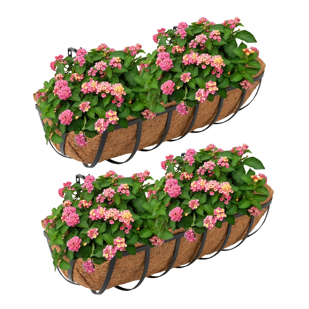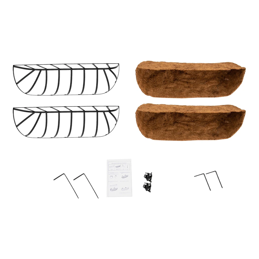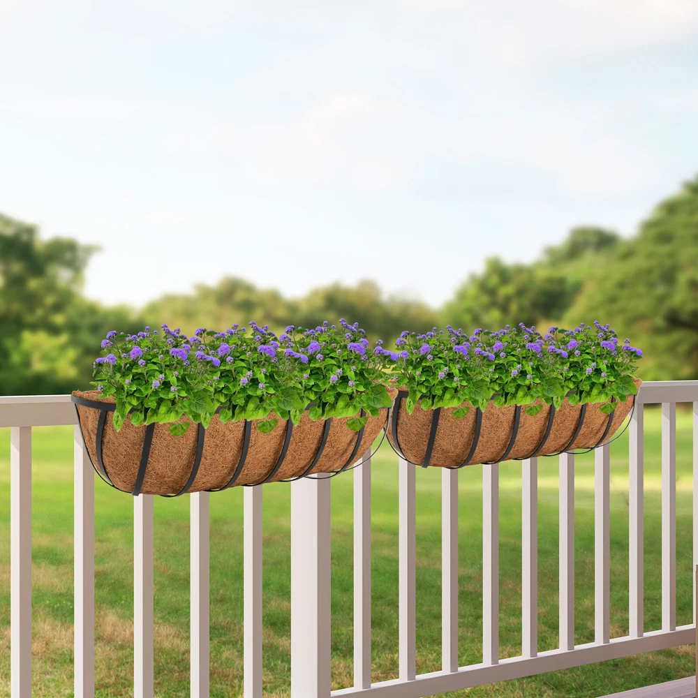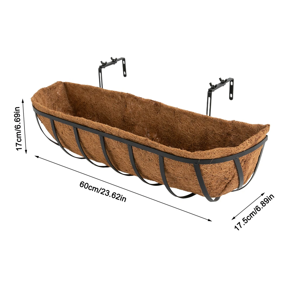 Specifications Material: Iron, Coconut Fiber Process: Paint Spraying Color: Black, Brown Style: Modern Pattern: Vertical Stripe Shape: Oval Mount Type: Hanging, Window Mount Assembly Required: Yes Number of Items: 2 Hook Adjustable Width: 10-19cm/4-7.5in Each Product Size: 60*17.5*17cm/23.62*6.89*6.69in Gross Weight: 3.2kg/7.05lbs Package Size: 62*25*19cm/24.4*9.8*7.5in Package Included 2* Frames 2* Liners 1* English Installation Diagram All Accessories for Assembly Enjoy discounts on bulk purchases at our store, please contact customer service for details. Description Are you looking for hanging planters that will add instant natural charm to your walls, windowsills, or garden? Our hanging window planter is the ideal decorations for you. With its large size, stylish appearance, and excellent air permeability and drainage performance, it allows a variety of flowers and plants to grow freely, providing them with a favorable growing environment while filling your space with a natural atmosphere. Key Features Build to Last: Mainly made of iron with the paint spraying process, the product is corrosion- resistant and anti-rust and can withstand a variety of weather conditions, providing secure support throughout the year. Set of 2 & Large Size: The package includes two planters measuring 23.62*6.89*6.69in, allowing you to grow different sizes and types of plants and flowers in thick soil to create beautiful and stunning floral arrangements, as well as providing them with a wide space to grow without any restrictions. Thoughtful Design: The coconut fiber liner helps keep moisture to hydrate plants while providing sufficient drainage . When you do not use the liner, it also degrades and composts itself, making it environmentally friendly. Adjustable Design: The width of the hook can be adjusted from 4 to 7.5in, allowing it to flexibly fit almost any width of the railing, providing good support. Eye-catching Appearance: The simple and elegant finish makes it adapt to various styles, making your space decoration more delicate and elegant. What's more, planting beautiful, vibrant flowers and plants (not included) makes it a beautiful natural landscape, bringing you a cozy and real-life experience. Assembly in a Breeze: Complete installation accessories, a simple structure, pre-drilled holes, and a clear installation diagram allow you to install it in a short time. Space-saving: It can improve the utilization of vertical space and create additional garden space without taking up too much of your living space. Ideal Gift: With a stylish appearance and high practicality, it is an excellent gift for a housewarming or other festivals for friends, neighbors, and family. Details Rounded Corners: Round edges and corners provide a comfortable touch to better care for your skin. Wing Nuts: They are convenient for you to adjust the hanging hooks by hand. Application This product can be used for home decoration, home gardening, balcony gardening, wedding decoration, and greening projects. It is suitable for balconies, gardens, terraces, walls, doors and windows, wedding sites, cafes, and libraries. It can be used to plant vines or flowers. How to Install Assemble the frame. Fix the hooks with screws. Plan plants (not included) in the liner with soil (not included). Place the liner in the frame. Specifications Material: Iron, Coconut Fiber Process: Paint Spraying Color: Black, Brown Style: Modern Pattern: Vertical Stripe Shape: Oval Mount Type: Hanging, Window Mount Assembly Required: Yes Number of Items: 2 Hook Adjustable Width : 10-19cm/4-7.5in Each Product Size: 60*17.5*17cm/23.62*6.89*6.69in Gross Weight: 3.2kg/7.05lbs Package Size: 62*25*19cm/24.4*9.8*7.5in Package Included 2* Frames 2* Liners 1* English Installation Diagram All Accessories for Assembly Notes It is not recommended to soak the liners in water before use. Please fix this product stably. Please note that this product does not include any flowers or plants. Please allow the slight color difference caused by the shooting light and 1-3cm error due to manual measurement, and make sure you do not mind before you order. Payment Delivery details Terms of sales About us Contact us Payment We accept ebay payment 。 Fees such as import duties, taxes are not included in the item price or shipping costs. These charges are the buyer's responsibility. Delivery details Shipping: 2-9 working days to: USA Terms of sales We maintain high standards of excellence and strive for hundred percent customer satisfaction. Feedback is very important to us. We hope that you contact us immediately before you give neutral or negative feedback, so that we can address your concerns. It is impossible to address issues if we do not know about them! About us Your satis faction is our ultimate goal. We work hard to earn your trust and future business. Our certified technicians have tested each item before shipping. The unit comes with 1 year limited warranty on all manufacturing defects. a) If you receive a defective item, you may return it or ask for a discount. Please contact us within 14 days after you receive the package. b) What you returned must be intact and in its original packaging as re? u. Customer is responsible for shipping costs of the returned item. c) We will cover the cost of shipping back t with the shipping rate indicated in the registration page. We will send you a new unit or refund the full payment you paid. Thank you. Contact us Business Hour Business Hour: Monday To Friday: 8:30 AM to 5:00 PM (Beijing China time) Due to time zones, our reply to your questions may not be immediately. But within above working time, we will reply your email within 24 hours. If it's non-workdays, please kindly be patient and wait till Monday. Please contact us with ebay message. Please feel free to contact us if you have any questions. Monday To Friday: 8:30 AM to 5:00 PM (Beijing China time) Due to time zones, our reply to your questions may not be immediately. But within