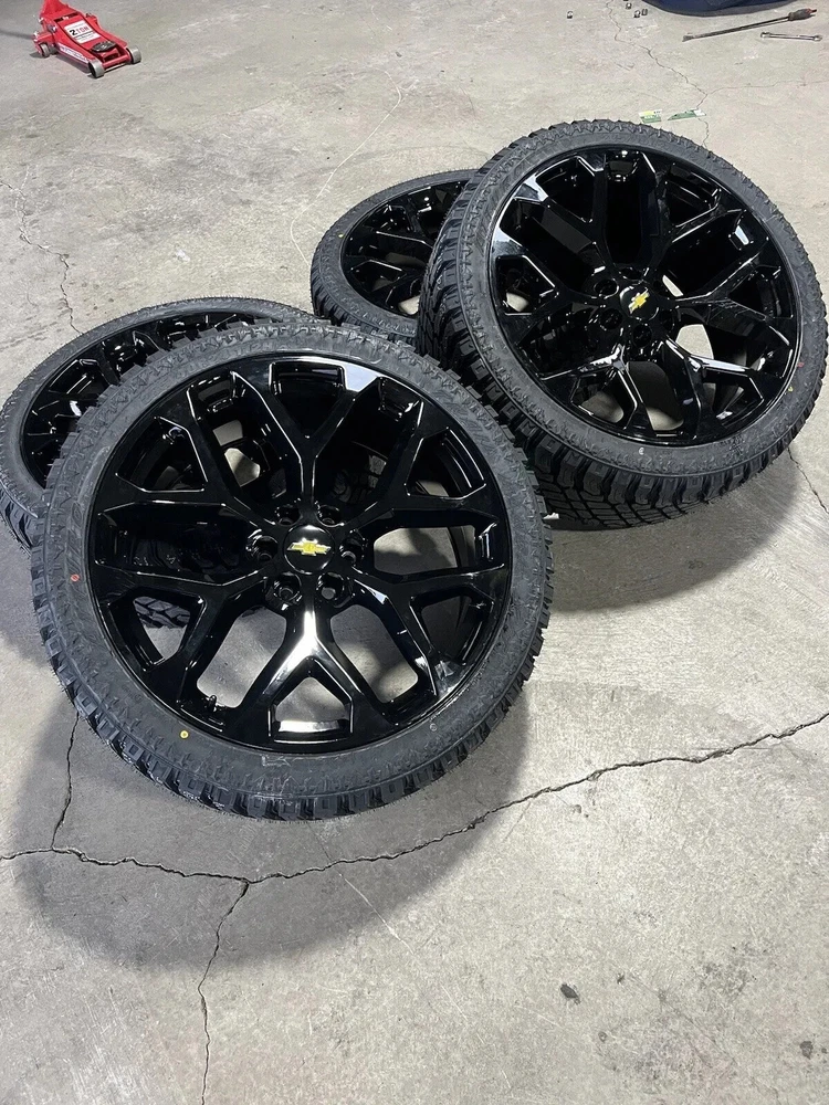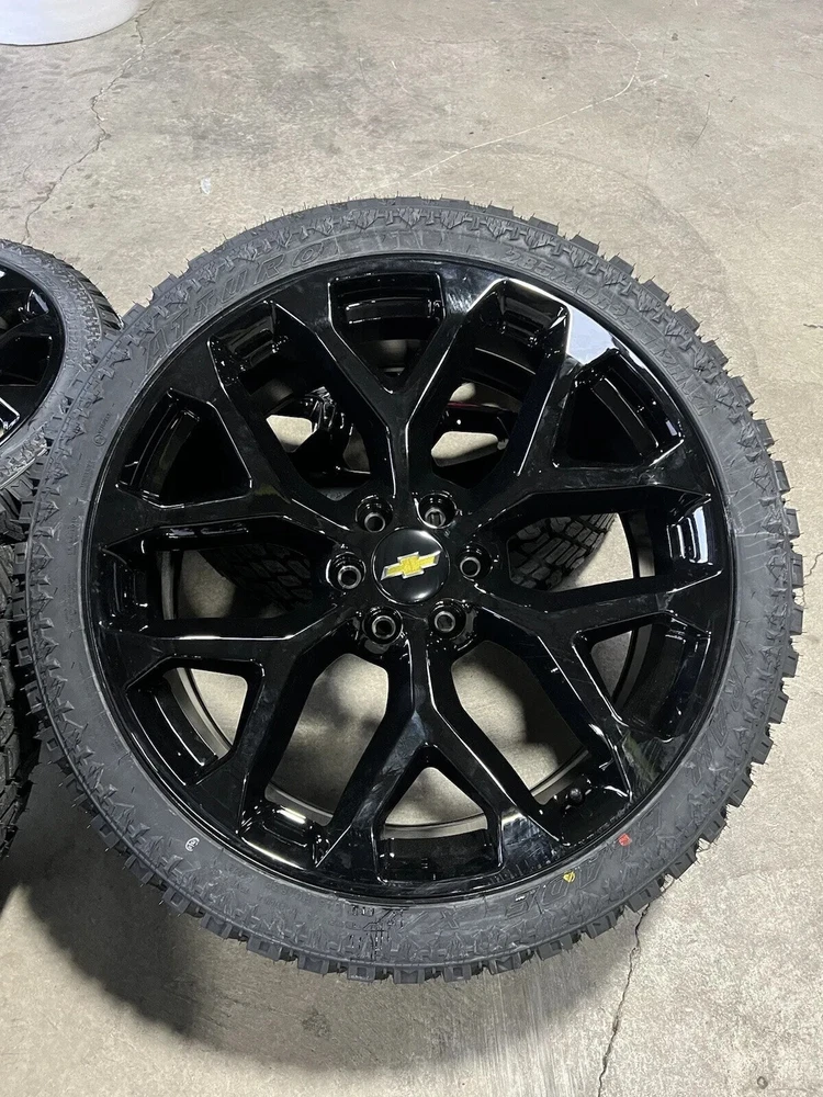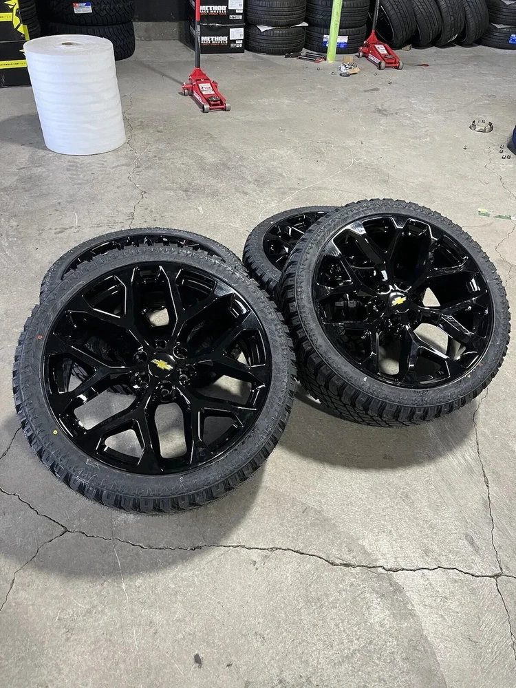 24” SNOWFLAKE BLACK WHEELS RIMS XT TIRES CHEVY SILVERADO TAHOE GMC YUKON SIERRA