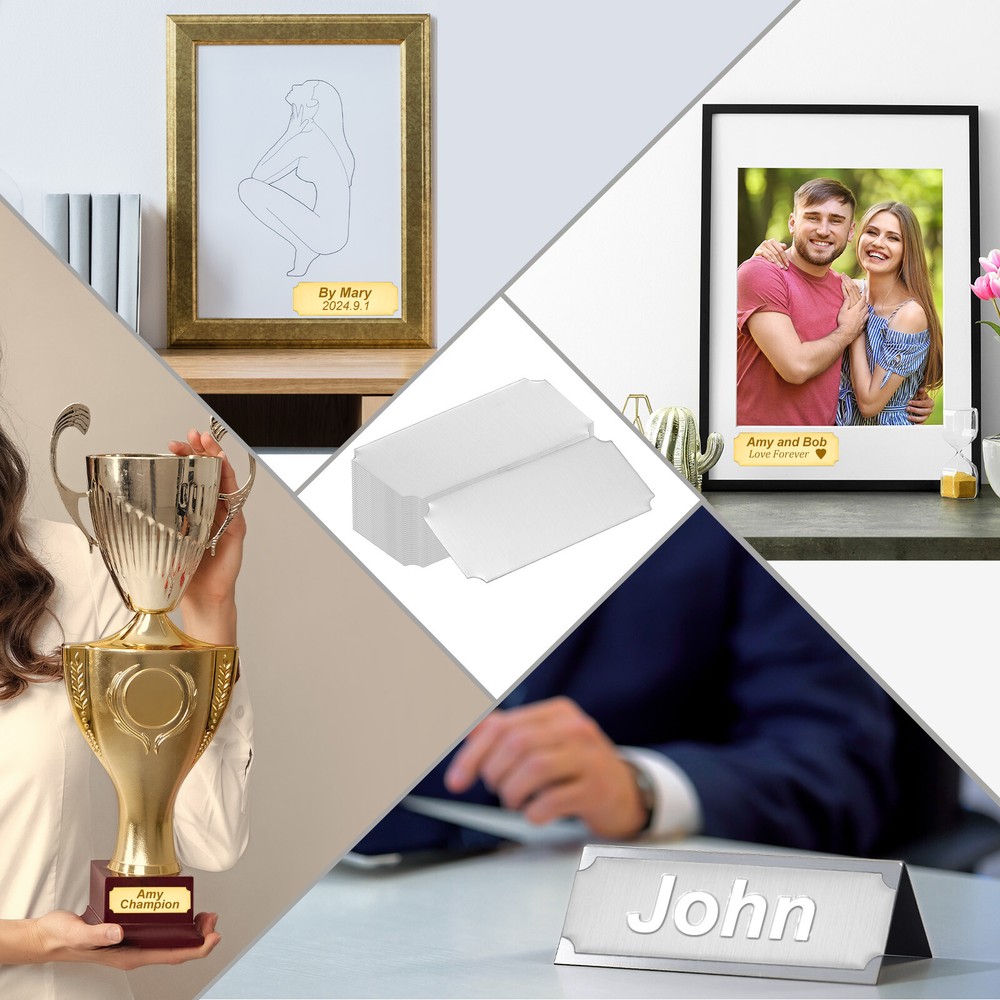 $ 11.0312 Pcs 3" x 1" Engraved Name Plate Picture Frame Label Art Tag,Silver/Gold/Black