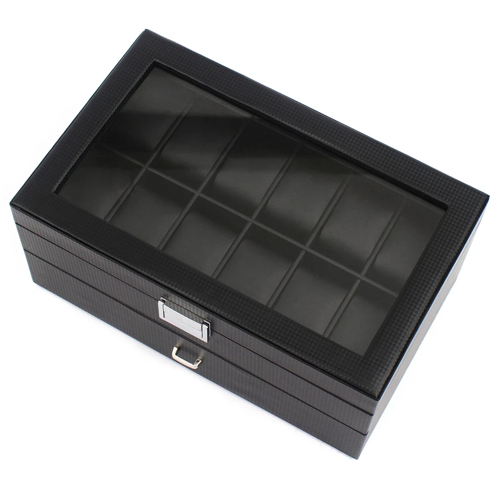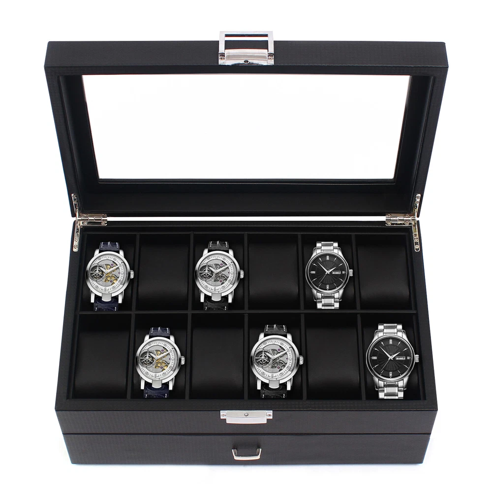 24 Slots Mens Watch Box Case Organizer Watches Jewelry Storage With Valet Drawer Watch Box 24 Mens Case Glass Top Black and Display Organizer Lockable Description The watch box is made of high-quality wood, carbon fiber, glass, plastic, and zinc alloy, which is strong, durable, and not easy to deform. It has two layers with a total of 24 compartments and a lot of storage space, which can meet your daily storage needs. Specification Color: Black Material: Wood, Carbon Fiber, Glass, Zinc Alloy Pillow Inner Material: Plastic Number of Compartments: 24 Shape: Rectangular Mounting Type: Freestanding Closure Type: Electroplated Latch Number of Drawers: 1 Net Weight: 3.4kg/7.5lbs Package Weight: 3.7kg/8.1lbs Product Size: 34*21*14.8cm/13.4*8.3*5.8inch Package Size: 34.5*23.5*17.5cm/13.5*9.2*6.8inch Package Included 1* Watch Box Details Exquisite Workmanship: This is a carefully crafted watch box. The premium carbon fiber grain and fine workmanship give it a luxurious texture. Dust-proof Design: The top lid and drawer can prevent dust from entering, which can keep the interior clean to save you a lot of cleaning time. High Light-transmitting Glass: The high light-transmitting glass at the top of the watch box provides a clear view of the watch's storage position and also allows for a better display of your watches. So you can easily find the watch you want. Good Materials: The watch box is made of high-quality wood, carbon fiber, glass, plastic, and zinc alloy, which is strong, durable, and not easy to deform. Good materials can extend its service life. Delicate Designed Pillow: The surface of the pillow is made of soft carbon fiber, which is anti-slipe and comfortable to touch so that the watch is better cared for. Compartment Design: This watch box has 2 layers of compartments for classified storage. This can make the space neater. You can easily find the watch, bracelet, necklace, earring, ring, and brooch you want. Large Storage Space: This product has two layers with a total of 24 compartments and a lot of storage space, which can meet your daily storage needs. Versatile: This product can be used to store not only watches in the first layer but also other items inside the second one. It is versatile and can meet your daily needs. Beautiful Appearance: The luxurious black casing with silver locking clasp gives the box a stylish, classic look. The black lining shows off the luster of your watch even better. A Good Gift: This watch box is an ideal gift for your mom, wife, husband, daughter, or girlfriend. It will be a practical and memorable gift. Key Features A Handle: There is a handle on the outside of the drawer for easier opening and closing. Electroplated Latch: The electroplated latch can prevent corrosion and rust, so it's durable. You can use it for a longer time. Guaranteed Customer Service: We aim to provide quality products and services. If you have problems, please feel free to contact us. We will reply and solve the problem for you as soon as possible. Application: It can be used to store watches, bracelets, necklaces, earrings, rings, brooches, and other accessories . It is also a great gift for your mom, wife, husband, daughter, or girlfriend. Notes Please allow the slight color difference caused by the shooting light and 1-3cm error due to manual measurement, and make sure you do not mind before ordering. Payment Delivery details Terms of sales About us Contact us Payment We accept ebay payment 。 Fees such as import duties, taxes are not included in the item price or shipping costs. These charges are the buyer's responsibility. Delivery details Shipping: 2-9 working days to: USA Terms of sales We maintain high standards of excellence and strive for hundred percent customer satisfaction. Feedback is very important to us. We hope that you contact us immediately before you give neutral or negative feedback, so that we can address your concerns. It is impossible to address issues if we do not know about them! About us Your satis faction is our ultimate goal. We work hard to earn your trust and future business. Our certified technicians have tested each item before shipping. The unit comes with 1 year limited warranty on all manufacturing defects. a) If you receive a defective item, you may return it or ask for a discount. Please contact us within 14 days after you receive the package. b) What you returned must be intact and in its original packaging as re? u. Customer is responsible for shipping costs of the returned item. c) We will cover the cost of shipping back t with the shipping rate indicated in the registration page. We will send you a new unit or refund the full payment you paid. Thank you. Contact us Business Hour Business Hour: Monday To Friday: 8:30 AM to 5:00 PM (Beijing China time) Due to time zones, our reply to your questions may not be immediately. But within above working time, we will reply your email within 24 hours. If it's non-workdays, please kindly be patient and wait till Monday. Please contact us with ebay message. Please feel free to contact us if you have any questions. Monday To Friday: 8:30 AM to 5:00 PM (Beijing China time) Due to time zones, our reply to your questions may not be immediately. But within above working time, we will reply your email within 24 hours. If it's non-workdays, please kindly be patient and wait till Monday. Please contact us with ebay message. Please feel free to contact us if you have any questions.