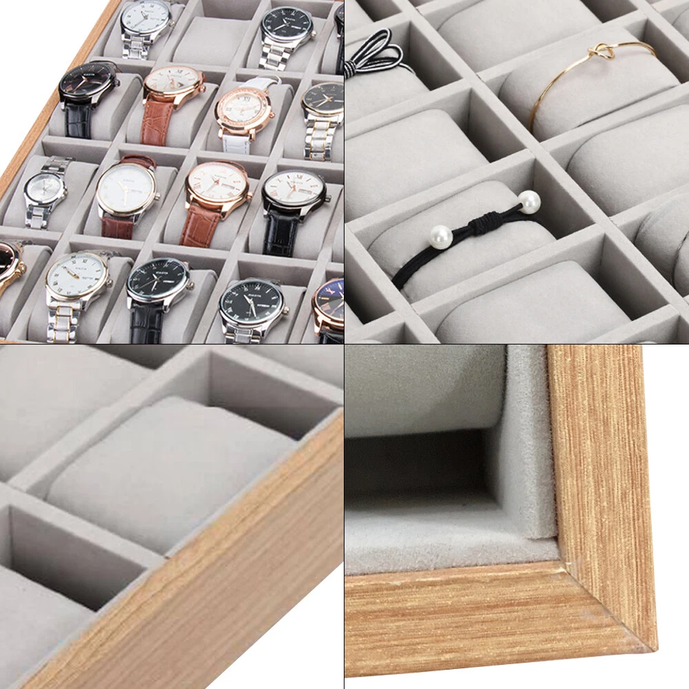 Features: Made of wooden watch display tray with exquisite workmanship. Tastefully protects, stores, and organizes your watches,bracelet. Best for displaying your watches whatever in a shop or on your dressing table. 24 Slots Wood Watch Box Jewelry Storage Case Organizer Display Box Holder Tray Specification: Material:wooden+Flannel 24 Slots: Length:33cm/12.9" Width:39.8cm/15.7" Height:4.5cm/1.8" [Conversion: 1cm=0.3937 Inch, 1 Inch=2.54 Cm] Features: Made of Wooden Watch Display Tray with Exquisite Workmanship. Tastefully Protects, Stores, and Organizes Your Watches,Bracelet. Best for Displaying Your Watches Whatever in a Shop or on Your Dressing Table. Package Included: 1 X Watch Display Tray(Watch Not Included) Payment Delivery details Terms of sales About us Contact us Payment We accept ebay payment 。 Fees such as import duties, taxes are not included in the item price or shipping costs. These charges are the buyer's responsibility. Delivery details Shipping: 2-9 working days to: USA Terms of sales We maintain high standards of excellence and strive for hundred percent customer satisfaction. Feedback is very important to us. We hope that you contact us immediately before you give neutral or negative feedback, so that we can address your concerns. It is impossible to address issues if we do not know about them! About us Your satis faction is our ultimate goal. We work hard to earn your trust and future business. Our certified technicians have tested each item before shipping. The unit comes with 1 year limited warranty on all manufacturing defects. a) If you receive a defective item, you may return it or ask for a discount. Please contact us within 14 days after you receive the package. b) What you returned must be intact and in its original packaging as re? u. Customer is responsible for shipping costs of the returned item. c) We will cover the cost of shipping back t with the shipping rate indicated in the registration page. We will send you a new unit or refund the full payment you paid. Thank you. Contact us Business Hour Business Hour: Monday To Friday: 8:30 AM to 5:00 PM (Beijing China time) Due to time zones, our reply to your questions may not be immediately. But within above working time, we will reply your email within 24 hours. If it's non-workdays, please kindly be patient and wait till Monday. Please contact us with ebay message. Please feel free to contact us if you have any questions. Monday To Friday: 8:30 AM to 5:00 PM (Beijing China time) Due to time zones, our reply to your questions may not be immediately. But within above working time, we will reply your email within 24 hours. If it's non-workdays, please kindly be patient and wait till Monday. Please contact us with ebay message. Please feel free to contact us if you have any questions.