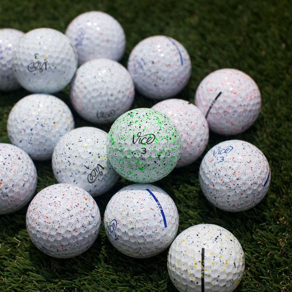 24 Vice Pro Drip Used Golf Balls ⛳️ Mix will include: Pro Plus, Pro, and Pro Soft (4A) Near Mint / (5A) Mint Condition A mix of our highest and second highest quality golf balls Mix will be as even as possible of 4A and 5A quality Most balls will look almost new, maybe only used for one round of golf Some balls may have logos or small player markings Occasional minor scuffs will be present, but rest assured, nothing that will affect the ball's performance NO "practice" or "refurbished" golf balls Free USPS shipping, 100% satisfaction guarantee! " Sourced from top-tier Northern California golf courses, each ball is meticulously cleaned, sorted, & graded with the utmost care. If we ever miss the mark, let us take a mulligan, we'll make it right. " - Pennyballer, the honest player
