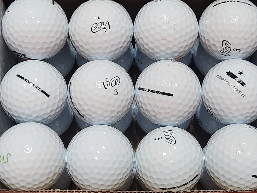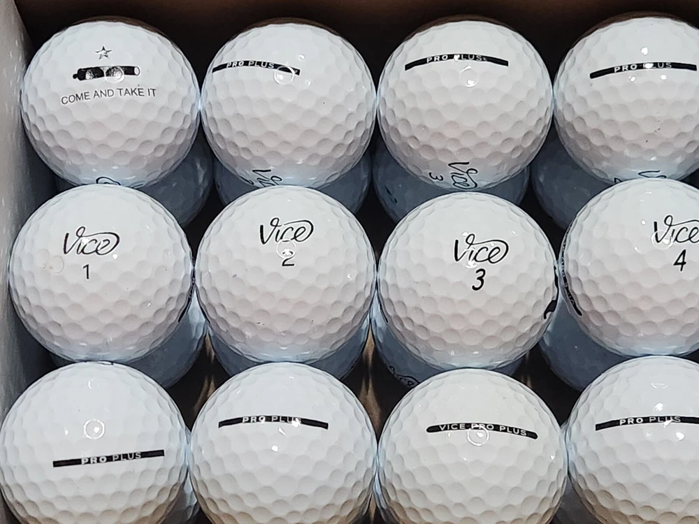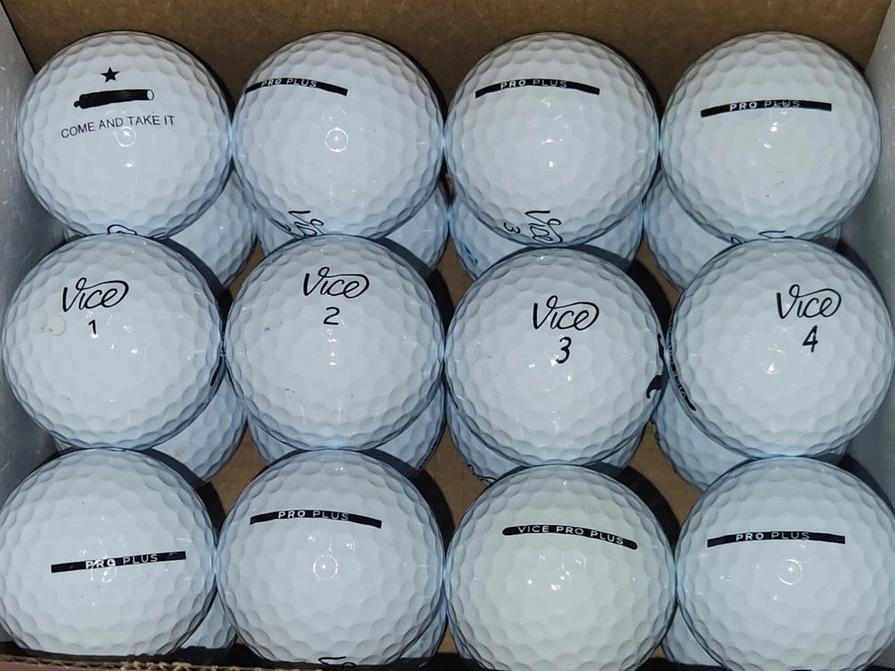 Elevate your golf game with the (24) Vice Pro Plus Golf Balls. This set includes premium, 3-piece balls with a medium compression rating and a 5A Mint letter grade. The urethane material and control features make them suitable for matches, while the short game and distance benefits provide added value. Each ball is mixed in color and comes with a personalized touch. Perfect for the Arnold Palmer Cup event, these Tour Preferred balls are a must-have for any golf enthusiast. With a unit quantity of 24 and a weight of 1.5, the Vice Pro Plus Golf Balls are the perfect addition to your golf bag.