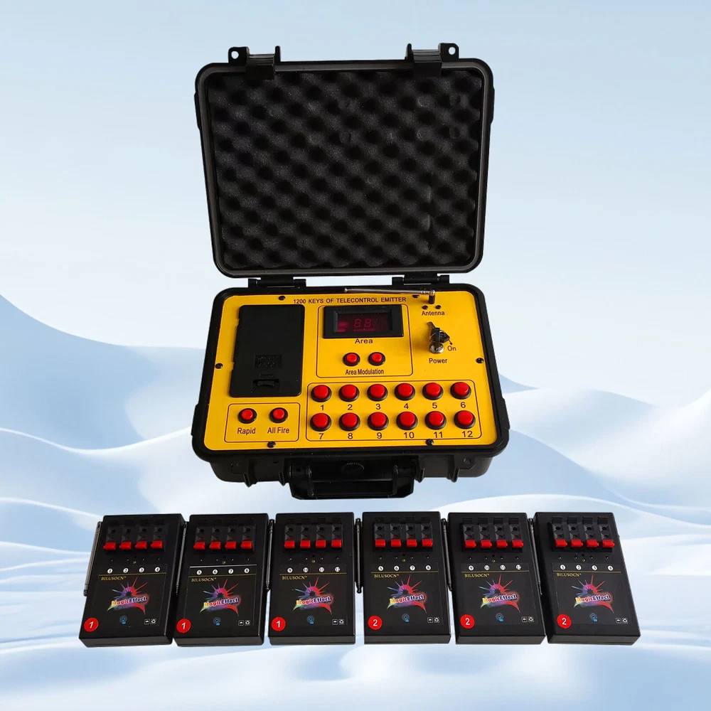 Product Description Long distance control 24 cues Wireless Fireworks Firing system,1200-Channel Remote Telecontrol, Come with Package Case Electronic Remote control Programmable Firing Equipment Waterproof Thank you for purchasing our 24 channel remote firing system. We are sorry we could not include batteries but this is not allowed when shipping by air freight. However, we are sure you will appreciate the value of our product. Your purchase includes 6 receivers and one transmitter to give you a total or 24 channels. Power: Receiver: 4 AA batteries Transmitter: 6pcs battery Range: 300meters (984 feet) The receivers are very economical. They can be used independently. If one fails, the others will continue to operate. This system is expandable. Simply purchase more receivers from the website below. The receivers come pre-programed for your convenience however they are reprogrammable. Locate a small hole in the center of the receiver and insert a paperclip or similar object. The receiver will flash then press a corresponding key on the remote. Now the receiver has been paired with the remote. Caution! 1. Handle your product with care avoid shaking and dropping it. 2. Keep the receiver as far away from your fireworks as possible to avoid damage. 3. Remove batteries before storage. 4. Store your product in a clean dry area away from containments. Frequency 433MHz This device complies with part 15 of the FCC Rules. Operation is subject to the following two conditions: (1) This device may not cause harmful interference, and (2) this device must accept any interference received, including interference that may cause undesired operation. Payment: The buyer is responsible for any applicable import duties and local taxes. Usually there's not any charges for small parcel. But please verify with your customs before making your purchase. Return: If you are not completely satisfied with your purchase, simply return the item to us in its original condition within 14 days of receipt. We will issue a full refund on receipt, excluding the return delivery charge. About US: We are a professional foreign trade e-commerce company, mainly engaged in foreign trade B2C platform business. Our foucs includes instrument meters and accessories, household items, car accessories, Led lighting etc. Our company is energetic and creative and wish to bring you great service and amazing experience.