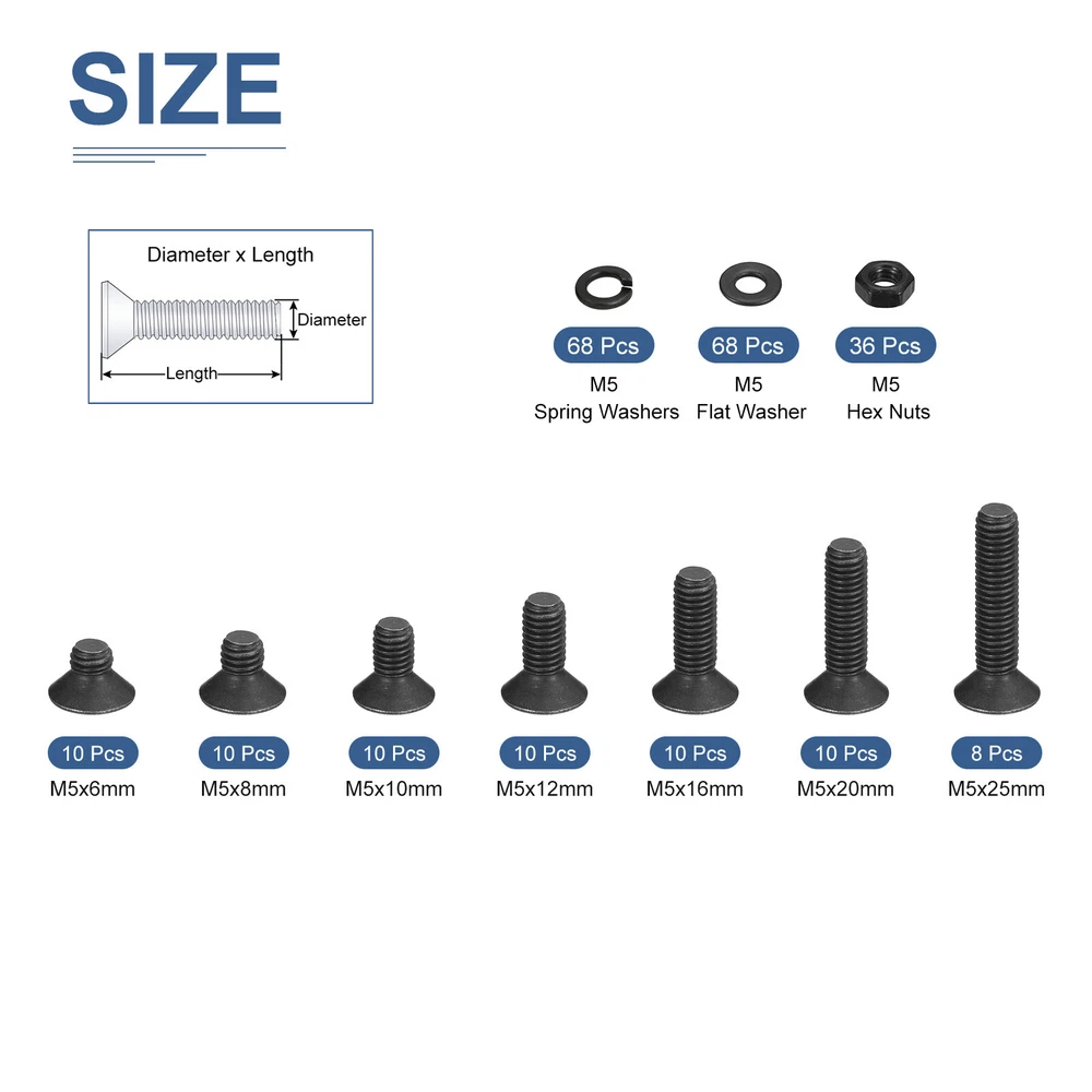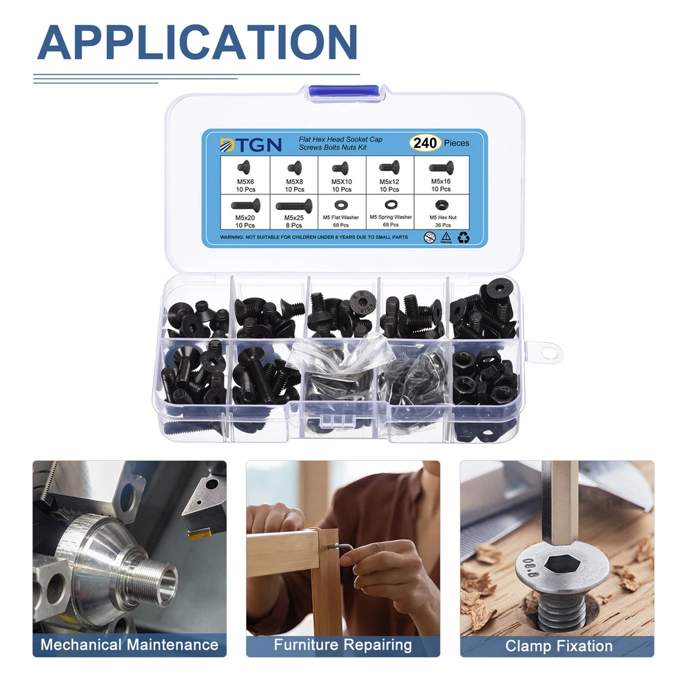 Document Product Details:Screws Type: Hex Flat Head ScrewMaterial: Carbon Steel Finished: Black OxideSize: M5 x 6mm /8m /10mm /12mm /16mm /20mm /25mmScrew Groove Type: Inner HexPackage Quantity: 240 PiecesMaterial - Constructed from premium-grade carbon steel black oxide finish, known for its superior corrosion resistance properties, this hardware ensures exceptional durability and longevity compared to other options available in the market.Feature - The flat head machine screws are very strong and are great for both indoor and outdoor use. This stainless is superior to regular steel and provides excellent rust resistance.Application - Suitable for a wide range of industries and purposes including wind power, aerospace, office equipment, electronics, communications, shipbuilding, machinery, and more.Install Steps- Easy to install, drill a hole in the furniture, and then screw on the pad along the drill hole with a hex Spanner. 240Pcs M5x6mm/8mm/10mm/12mm/16mm/20mm/25mm Flat Hex Head Socket Cap Screw Nuts Product Details: Screws Type: Hex Flat Head Screw Material: Carbon Steel Finished: Black Oxide Size: M5 x 6mm /8m /10mm /12mm /16mm /20mm /25mm Screw Groove Type: Inner Hex Package Quantity: 240 Pieces Material - Constructed from premium-grade carbon steel black oxide finish, known for its superior corrosion resistance properties, this hardware ensures exceptional durability and longevity compared to other options available in the market. Feature - The flat head machine screws are very strong and are great for both indoor and outdoor use. This stainless is superior to regular steel and provides excellent rust resistance. Application - Suitable for a wide range of industries and purposes including wind power, aerospace, office equipment, electronics, communications, shipbuilding, machinery, and more. Install Steps- Easy to install, drill a hole in the furniture, and then screw on the pad along the drill hole with a hex Spanner. Hot Item Payment 1.We accept eBay payment . 2.Payment must be received within 7 business days of auction closing. Shipping 1.We ship to your eBay or Paypal address. Please make sure your eBay and Paypal address is correct before you pay. 2.Items will be shipped within 1-3 business day when we received payment. 3.Delivery time depends on destination and other factors. Description Policy 240Pcs M5x6mm/8mm/10mm/12mm/16mm/20mm/25mm Flat Hex Head Socket Cap Screw Nuts Product Details: Screws Type: Hex Flat Head Screw Material: Carbon Steel Finished: Black Oxide Size: M5 x 6mm /8m /10mm /12mm /16mm /20mm /25mm Screw Groove Type: Inner Hex Package Quantity: 240 Pieces Material - Constructed from premium-grade carbon steel black oxide finish, known for its superior corrosion resistance properties, this hardware ensures exceptional durability and longevity compared to other options available in the market. Feature - The flat head machine screws are very strong and are great for both indoor and outdoor use. This stainless is superior to regular steel and provides excellent rust resistance. Application - Suitable for a wide range of industries and purposes including wind power, aerospace, office equipment, electronics, communications, shipbuilding, machinery, and more. Install Steps- Easy to install, drill a hole in the furniture, and then screw on the pad along the drill hole with a hex Spanner. Hot Item Payment 1.We accept eBay payment . 2.Payment must be received within 7 business days of auction closing. Shipping 1.We ship to your eBay or Paypal address. Please make sure your eBay and Paypal address is correct before you pay. 2.Items will be shipped within 1-3 business day when we received payment. 3.Delivery time depends on destination and other factors.