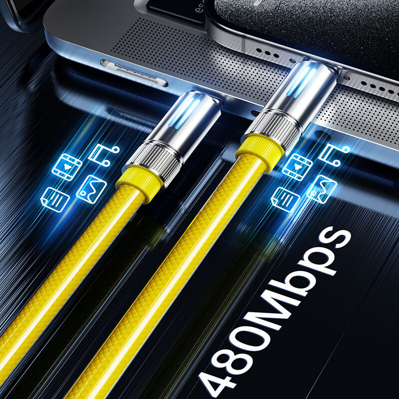 Description: 240W fast charging is universal High power to low power 240/140100/60/30W device data cable is fully compatible Multi-protocol full device support can be switched between mobile phones, tablets and other devices 240W fast charging PD full series compatible Support iPhone7-iPhone15 Samsung and other mobile phones compatible Colorful atmosphere lights make night charging more convenient With soft colorful atmosphere lights, you can clearly find your phone when charging at night Zinc alloy material anti-oxidation process Plug and unplug at will, intact as new, full of texture Bend at will, long-term use without breaking After 20000+ Bending test, wear-resistant and non-breakage, longer service life Thickened gold-plated copper wire, faster and more stable charging Increased conductive area, reduced resistance, smoother charging and transmission, more stable and faster Product name: liquid silicone data cable Interface: Type-C/USB-A/8pin Function: charging + data transmission Material: zinc alloy + liquid silicone Transmission speed: 480Mbp/s Current: 2.4A/5A Length: 1.5m Color: yellow Applicable models: Applicable to Apple/Android/Type-C interface devices Includes: 1 1.5m 240w liquid silicone data cable