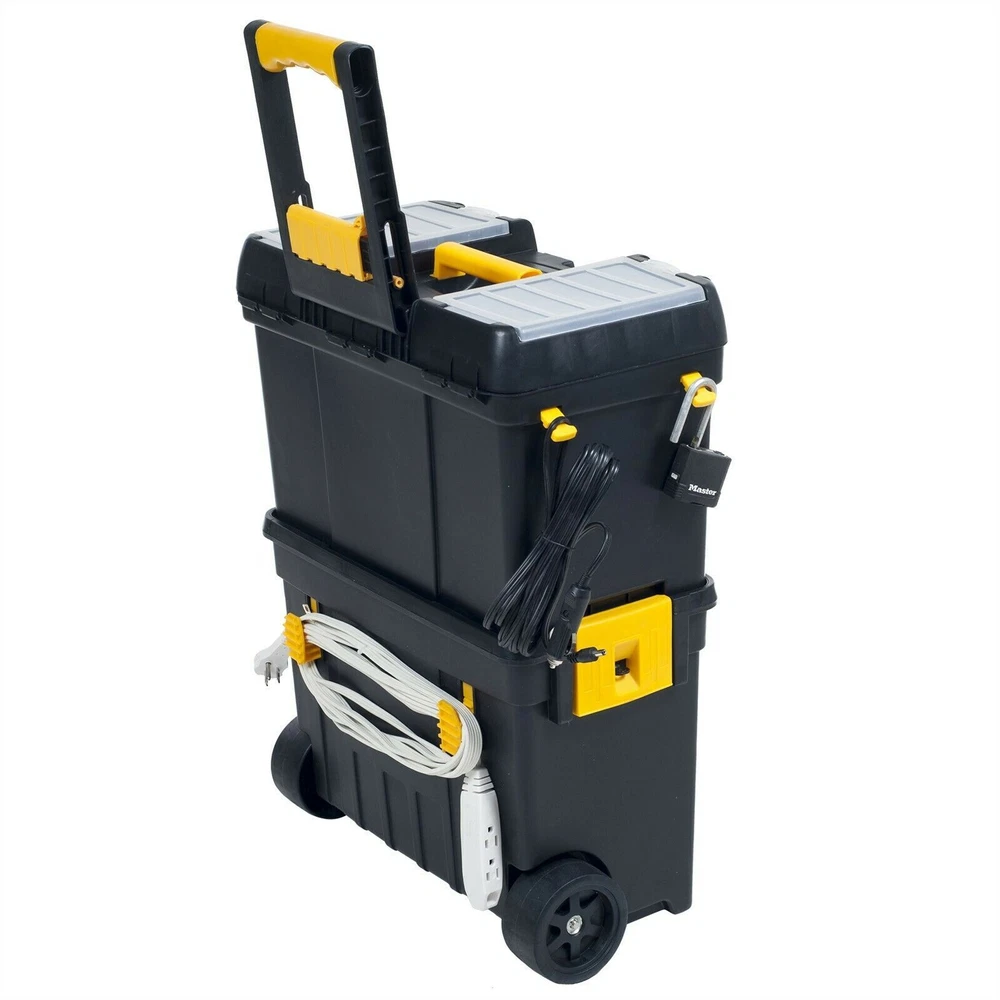 24.5" Portable Rolling Tool Box on Wheels Cart Organizer Storage Bin Deluxe Doing business on eBay since 2001 24.5" Portable Rolling Tool Box on Wheels Cart Organizer Storage Bin Deluxe Free Standard Shipping! 2 Day Shipping : 70 Next Day Air : 125 Product Details: This deluxe toolbox is packed full of storage space with removable tray and case. Have a job to take care of somewhere else? No problem, the sturdy pop-up handle and wheels on this mobile workshop allow you to easily take all of your favorite tools with you, so you won't forget a thing! Features: Top has two lift up panels with four compartments in each Top lid lifts up to reveal a removable tray and tool storage area Front has a removable box with 14 sections Top drawer has 5 stalls Large open bottom drawer for extra storage 24.5" tall (33" with handle extended) X 18" wide X 10.5" deep Shipping We can only ship to the 48 states We normal have a 1-2 business day handling time We are unable to change an address after a package leaves Office and warehouse hours are Monday through Friday Contact Us Through Ebay Messages Only Hours Monday - Friday : 9:00 am - 5:00 pm EASTERN. 30-Day Limited Warranty If you have changed your mind, you may return this to us for any reason. If your item is damaged, or different than expected, please contact us through ebay messages We will be happy to assist with any question you have