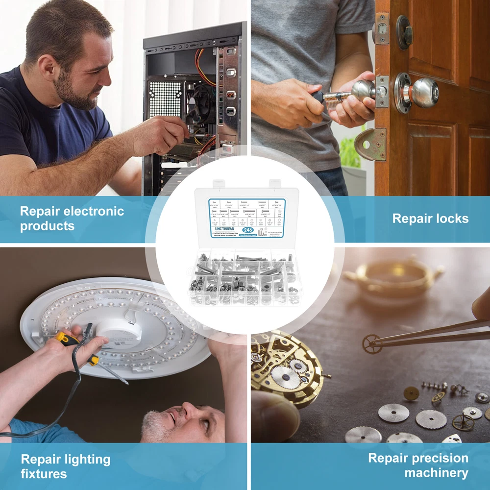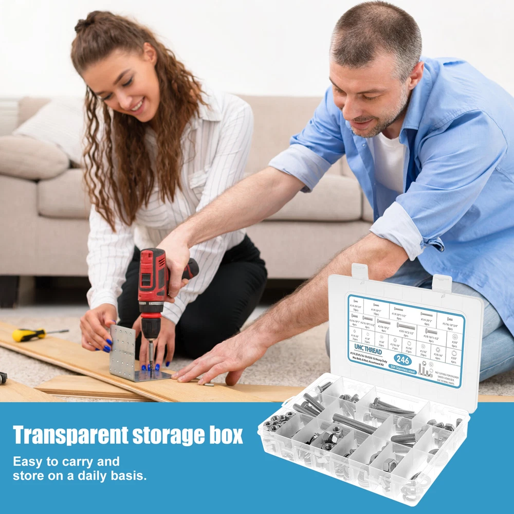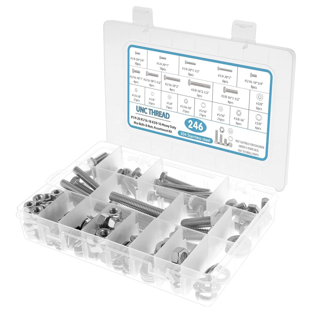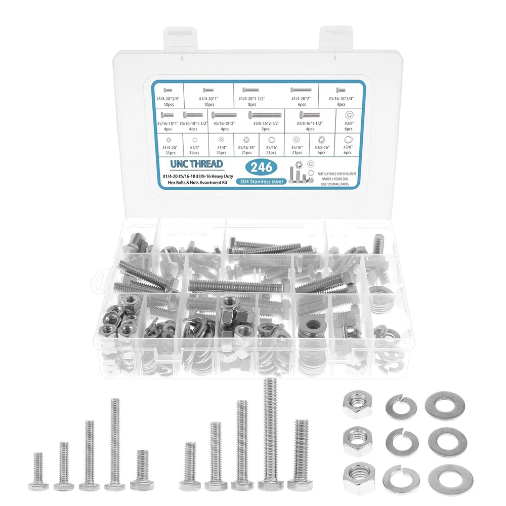 [---Welcome TO Our Store! Happy Shopping! Happy Life---] Highlight description: Set Contents: This set contains a 246-piece nuts and bolts kit in 10 sizes, which includes various sizes of 1/4“-20, 5/16”-18, 3/8"-16 nuts and bolts, flat washers and spring washers. A full range of accessories and different sizes to meet your usage needs Quality Stainless Steel: The nuts, bolts and washers in the kit are made of stainless steel, high hardness, strong and enduring, rustproof and wear resistant, suitable for long term use and storage Bolt and Nut Set: The bolt and nut set includes 1/4“-20 x 3/4”, 1/4“-20 x 1-1/2”, 1/4“-20 x 1”, 1/ 4“-20 x 2”, 5/16“-18 x 3/4”, 5/16“-18 x 1”, 5/16"-18 x 1- 1/2“, 5/16”-18 x 2“, 3/8”-16 x 2-1/2“and 3/8”-16 x 1-1/2”. These include most of the sizes you need for everyday use and the hexagonal threads are clear, smooth and burr free Includes Storage Box: The package comes with a clear storage box with clear labels printed on it, the bolts and nuts are stored in separate compartments to keep the different sizes of bolts, nuts and washers organized and easy to carry and store on a daily basis Wide Application: The bolts and nuts set is an ideal tool for home repairs, suitable for repairing household electronics, locks, lamps, some precision machinery and classified instruments, and so on Detailed description: Description: This bolt and nut kit contains many different sizes of nuts and bolts, basically it can meet the daily repair of home electronics, locks or lamps, etc., very practical Key Feature: Enduring: The nuts, bolts and washers in this kit are made of stainless steel, which is hard, sturdy, rust resistant and wear resistant, suitable for long term use and storage. It also comes with an organizer box, which can easily store a variety of nuts or bolts Specification: Product Name: Hex Head Nuts and Bolts Assortment Kit Style: Style 1 Material: Stainless Steel Size: 22.1 x 16.3 x 4.6 cm / 8.7 x 6.4 x 1.81 inches Screw 1/4“-20 x 3/4”、1/4“-20 x 1-1/2”、1/4“-20 x 1”、1/4“-20 x 2”、5/16“-18 x 3/4”、5/16“-18 x 1”、 5/16“-18 x 1-1/2”、5/16“-18 x 2”、3/8“-16 x 2-1/2 ”和 3/8“-16 x 1-1/2” Note: 1.There may be slight differences between the picture and the actual color of the commodity. We will try our best to show you the exact color. 2.Please allow slight dimension differences due to manual measurement. Parts List: 1 × Hex Head Nuts and Bolts Assortment Kit (246Pcs) We accept Payoneer/Mastercard/VISA/Google Pay/American Express etc. Immediate payment is needed, so that we can finish your orders, then dispatch and post them in time. We really appreciate your business with us, and hope to keep it lasting. Orders will be processed and dispatched within 1-5 working daysafter payment received from Monday to Friday. Saturday and Sunday orders will be posted in the following Monday. when items are in peak period, the time will be prolonged according to certain situations, which may beyond our control, but we are always ready to help you track the delivery info. Returns: 1.Defective goods must be returned within 30 days from the delivery date. The buyer is responsible for the return shipping fee. We will not reimburse the return shipping fee unless when we have shipped the wrong item. 2.We reserve the right to refuse any returns for our reasons. Contact Us: 1) We are committed to provide you with great service. If you are in any way dissatisfied with your purchase: Please DO NOT open eBay case immediately. Please DO NOT open PayPal Dispute immediately. Please DO NOT leave us a low score for DSR immediately. Please DO NOT leave us a neutral/negative feedback immediately. Always communicate first. Please contact us via eBay message. We will work with you to resolve any problem. 2) We always reply messages within 2 business days, please check your Spam Inbox or eBay Message Box if you do not receive a response within 2 business days. We are always making efforts to providing better products and service. if you feel satisfied with us, please leave us a 5-Star on the Detailed Seller Ratings.