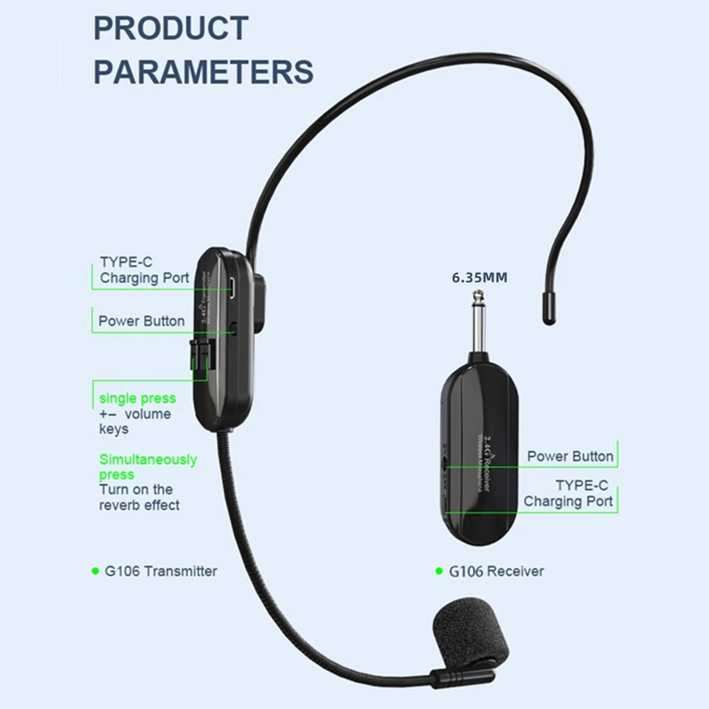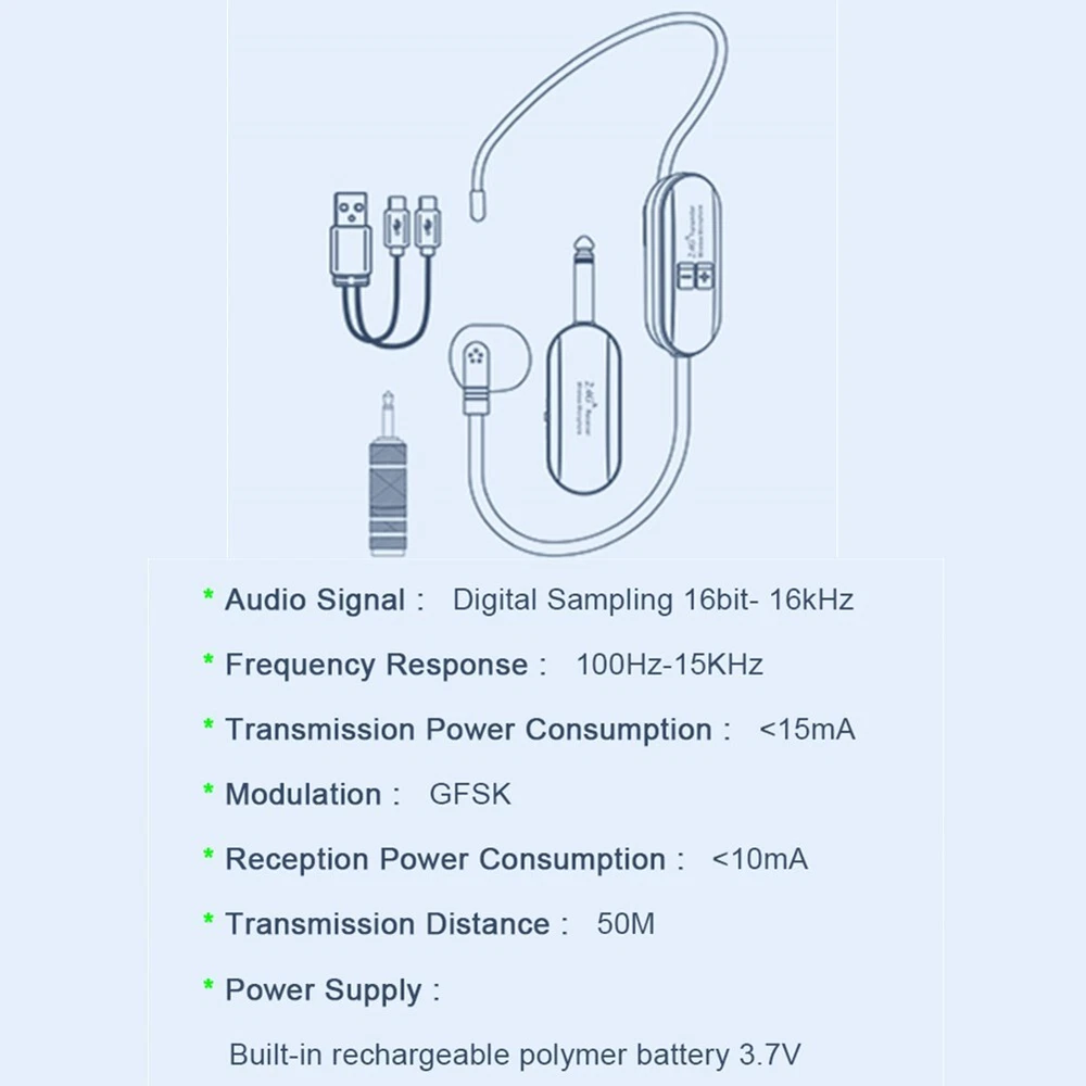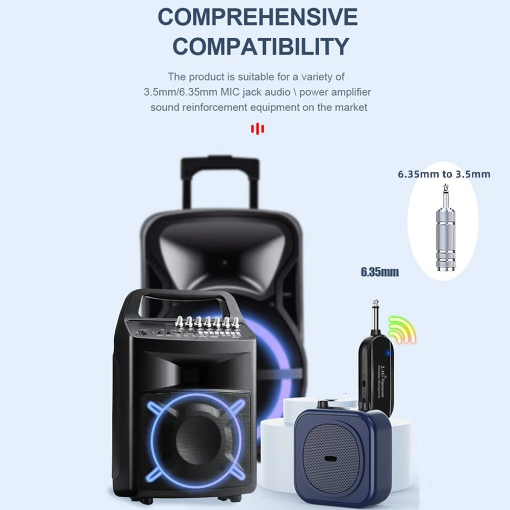 2.4G Wireless Microphone Headset 160FT Range Mic System for Teach Outdoor Speech DESCRIPTION Features: brand new and high quality. Wireless Microphone Headset : Built-In High Sensitivity Condenser Microphone, Transmission Distance Upgrade To 160 Feet (50m) Signal Stability, No Delay, No Radiation, Anti-Howling, Anti- , Constant Frequency , Clearer Sound Quality. Charge And Work Of Wireless Microphones: The Transmitter And Receiver Are Built-In 120 Mah Rechargeable Lithium-Ion Batteries That Can Offer About 6-8 Hours Working Time. Usb Cable Has Two Usb V2.0 For Charge For The Transmitter And Receiver At The Same Time, Fully Charge Is Only 2.5 Hours. Perfect Application: The On The Receiver Is 6.35mm. For 3.5mm ,Please Use The Additional 3.5mm Adapter(Included)To Connect More Equipments. Humanized and thoughtful design: the microphone will automatically shut down if you do not use the microphone within 45 minutes of no , saving power and worry. Built-In Cardioid for Polar Pattern Condenser Microphone,Widely Applied To Conference,Speech, Web Podcast, Outdoor Live, Yoga Instructor, Voice Amplifiers, Dancing Instructor, , Game Etc. Specification: Audio Signal: Digital Sampling 16bit - 16KHZ Frequency Response: 100HZ-15KHZ Transmission Distance: 50M Transmission Power Consumption: < 15MA Reception Power Consumption: < 10MA Battery Type: Lithium Ion Battery Charging Time: 2hours Continuous Working Time :6-8hours Frequency Band: 2400-2483Mhz Modulation : GFSK Package list: 1 * Headset Mic Transmitter 1 * Receiver 1 * 6.35mm to 3.5mm adapter 1 * 2 in 1 USB cable 1 * User Manual Note: Does not support mobile phones, speakers, PC, or laptop use. Adapter color: gold and silver random delivery. Please refer to the measurement. Tiny measuring er ror is allowable in normal range. There might be a little color difference due to the monitor, camera or other factors, please refer to the physical item. POLICES Shipping Payment WARRANTY We only ship to confirmed ebay Order addresses. Please comfirm that your Order address is in line with your shipping address. Please kindly note that the c ombined shipping is not provided because the shipping fee is calculated by weight. Also, the each additional item means exactly the the same color and size. It takes about 7 -15 working days to US; about 10-30 working days to other countries. Transit time may be a little delayed because of the bad weather and customs inspection . If you do not receive your item within 30 working days since payment finished, please contact us immediately for further assistance. Payment must be completed within 5 days. If you have any problems about payment, please contact us via ebay message. We strive for 100% customer satisfaction! Positive Feedback is very important to us. If you have any questions, p lease feel free to contact us via "Ask seller a question" . We will reply your email within 24 working hours. On Jan 2, 2025 at 07:49:11 PST, seller added the following information: