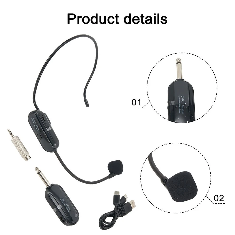 Product Description Features: brand new and high quality. Wireless Microphone Headset : Built-In High Sensitivity Condenser Microphone, Transmission Distance Upgrade To 160 Feet (50m) Signal Stability, No Delay, No Radiation, Anti-Howling, Anti- , Constant Frequency , Clearer Sound Quality. Charge And Work Of Wireless Microphones: The Transmitter And Receiver Are Built-In 120 Mah Rechargeable Lithium-Ion Batteries That Can Offer About 6-8 Hours Working Time. Usb Cable Has Two Usb V2.0 For Charge For The Transmitter And Receiver At The Same Time, Fully Charge Is Only 2.5 Hours. Perfect Application: The On The Receiver Is 6.35mm. For 3.5mm ,Please Use The Additional 3.5mm Adapter(Included)To Connect More Equipments. Humanized and thoughtful design: the microphone will automatically shut down if you do not use the microphone within 45 minutes of no , saving power and worry. Built-In Cardioid for Polar Pattern Condenser Microphone,Widely Applied To Conference,Speech, Web Podcast, Outdoor Live, Yoga Instructor, Voice Amplifiers, Dancing Instructor, , Game Etc. Specification: Audio Signal: Digital Sampling 16bit - 16KHZ Frequency Response: 100HZ-15KHZ Transmission Distance: 50M Transmission Power Consumption: < 15MA Reception Power Consumption: < 10MA Battery Type: Lithium Ion Battery Charging Time: 2hours Continuous Working Time :6-8hours Frequency Band: 2400-2483Mhz Modulation : GFSK Package list: 1 * Headset Mic Transmitter 1 * Receiver 1 * 6.35mm to 3.5mm adapter 1 * 2 in 1 USB cable 1 * User Manual Note: Does not support mobile phones, speakers, PC, or laptop use. Adapter color: gold and silver random delivery. Please refer to the measurement. Tiny measuring er ror is allowable in normal range. There might be a little color difference due to the monitor, camera or other factors, please refer to the physical item. Payment Payment must be completed within 5 days. If you have any problems about payment, please contact us via ebay message. Delivery details We only ship to confirmed ebay Order addresses. Please comfirm that your Order address is in line with your shipping address. Please kindly note that the c ombined shipping is not provided because the shipping fee is calculated by weight. Also, the each additional item means exactly the the same color and size. It takes about 7 -15 working days to US; about 10-30 working days to other countries. Transit time may be a little delayed because of the bad weather and customs inspection . If you do not receive your item within 30 working days since payment finished, please contact us immediately for further assistance. Contact us We strive for 100% customer satisfaction! Positive Feedback is very important to us. If you have any questions, p lease feel free to contact us via "Ask seller a question" . We will reply your email within 24 working hours. On Dec 18, 2024 at 01:37:29 PST, seller added the following information: