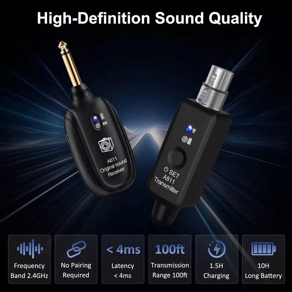 Product Description 2.4GHz Microphone Wireless System XLR Transmitter Receiver Rechargeable Adapter Features: The wireless microphone converter features a plug and play design, eliminating the need for complex setup. Simply connect the device and start using it immediately, making it perfect for users of all technical levels. Utilizing advanced wireless audio transmission technology, this xlr transmitter and receiver ensure clear and stable audio signals. Enjoy high-fidelity sound quality whether at home or outdoors. The microphones wired to wireless system supports ultra-long-distance transmission, covering up to 30 meters. Ideal for various scenarios, including performances, recordings, and home entertainment, it offers seamless adaptability. Equipped with gold-plated connectors, the microphone wireless system resists oxidation and corrosion, ensuring stable signal transmission over long-term use. This greatly enhances the durability and reliability of the product. The wireless mic adapter supports the simultaneous use of multiple sets of devices. Users can flexibly expand their setup to perfectly suit different audio equipment, meeting diverse usage needs with ease. Specifications: Audio Frequency Response: 20Hz – 20KHz (+1dB/-3dB) Sampling Rate: High Resolution 24-bit/48kbps audio Dynamic Range: 108dB Latency: <4ms Working Range: 100ft / 30M Battery Life: 10 Hours Charging Time: 1.5 Hours Frequency Stability: ±3PPM Package includes: 1* Receiver 1* Transmitter 1* USB Cable If you have any questions, please feel free to contact us via ebay. We usually respond within 24 hours. Payment Shipping Returns Contact Us We accept all verified payments from ebay. Orders will be shipped after receiving cleared payment. Payment due within 7 days after auction ends and for buy it now listings. We ship most of our orders within 24 hours, and may up to 48 hours for. If you want faster shipping way. Please contact us before making payment. Sometimes due to problems with our transportation company system, your shipping information may be delayed to update. We recommend that you try again after 3-4 days. If you still haven't checked the shipping information, you can contact us by ebay message. Always believe we can figure things out with communication, if it comes to return, the pacakge must be intact and the same as you receive. If you have any questions, please feel free to email our service specialists 24 Hours a Day, 7 Days a Week. We will reply you ASAP. Return/refund is accepted within 30 days after the buyer receives the item. NO exchange will be accepted after 30 days from the date when the item is received. Please contact us first before returning your product!!! If you have any questions, our Customer Service staffs welcome you to email us. We strive to answer all questions and resolve any problems as quickly as possible. You can contact us 7*24, we will reply at the first time, and we will surely solve your problems. Note: 1.We try our best to reply to your emails as soon as possible, however, due to high volume of daily incoming emails and time zone difference, we may not be able to reply your emails immediately. Please allow 1 business days for us to response. If you do not receive any reply from us, please check your email ensuring your mailbox has not reached full size. 2.Due to some ISP SPAM filter settings, you may not be able to receive our replies; if you have problems receiving our emails, you may need to use a different email account to contact us. 3.Please give us the opportunity to resolve any problem. We understand the concerns and frustrations you might have, and will try our best to resolve the issues. Please email us before leaving any negative feedback or open any dispute on PayPal. 4.We care about our valued customers, and will always try to help you. So if you have any problems, please e-mail us immediately. Payment We accept all verified payments from ebay. Orders will be shipped after receiving cleared payment. Payment due within 7 days after auction ends and for buy it now listings. Shipping We ship most of our orders within 24 hours, and may up to 48 hours for. If you want faster shipping way. Please contact us before making payment. Sometimes due to problems with our transportation company system, your shipping information may be delayed to update. We recommend that you try again after 3-4 days. If you still haven't checked the shipping information, you can contact us by ebay message. Returns Always believe we can figure things out with communication, if it comes to return, the pacakge must be intact and the same as you receive. If you have any questions, please feel free to email our service specialists 24 Hours a Day, 7 Days a Week. We will reply you ASAP. Return/refund is accepted within 30 days after the buyer receives the item. NO exchange will be accepted after 30 days from the date when the item is received. Please contact us first before returning your product!!! Contact Us If you have any questions, our Customer Service staffs welcome you to email us. We strive to answer all questions and resolve any problems as quickly as possible. You can contact us 7*24, we will reply at the first time, and we will surely solve your problems. Note: 1.We try our best to reply to your emails as soon as possible, however, due to high volume of daily incoming emails and time zone difference, we may not be able to reply your emails immediately. Please allow 1 business days for us to response. If you do not receive any reply from us, please check your email ensuring your mailbox has not reached full size. 2.Due to some ISP SPAM filter settings, you may not be able to receive our replies; if you have problems receiving our emails, you may need to use a different email account to contact us. 3.Please give us the opportunity to resolve any problem. We understand the concerns and frustrations you might have, and will try our best to resolve the issues. Please email us before leavi