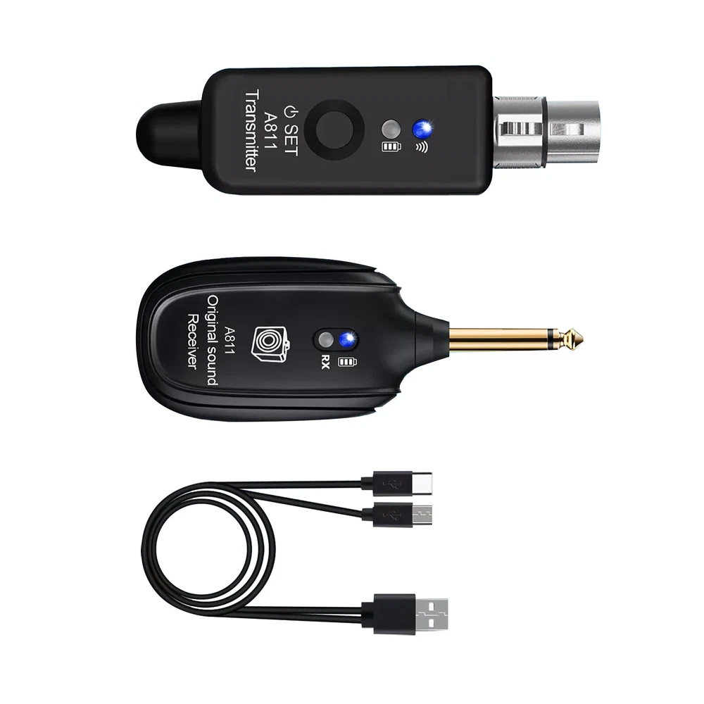 2.4GHz Microphone Wireless System XLR Transmitter Receiver Rechargeable Adapter