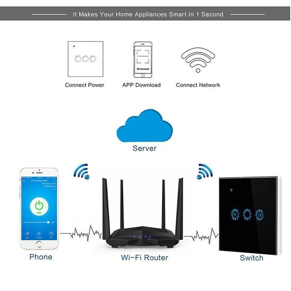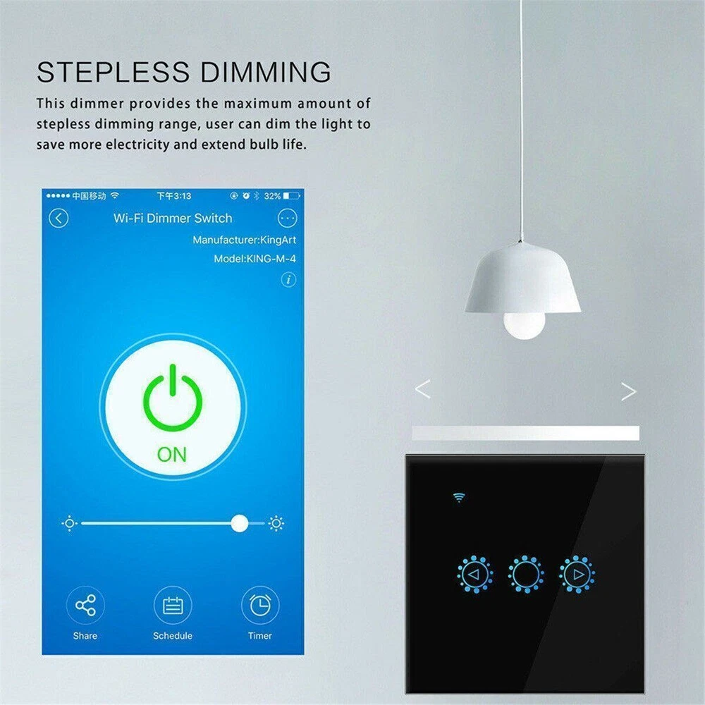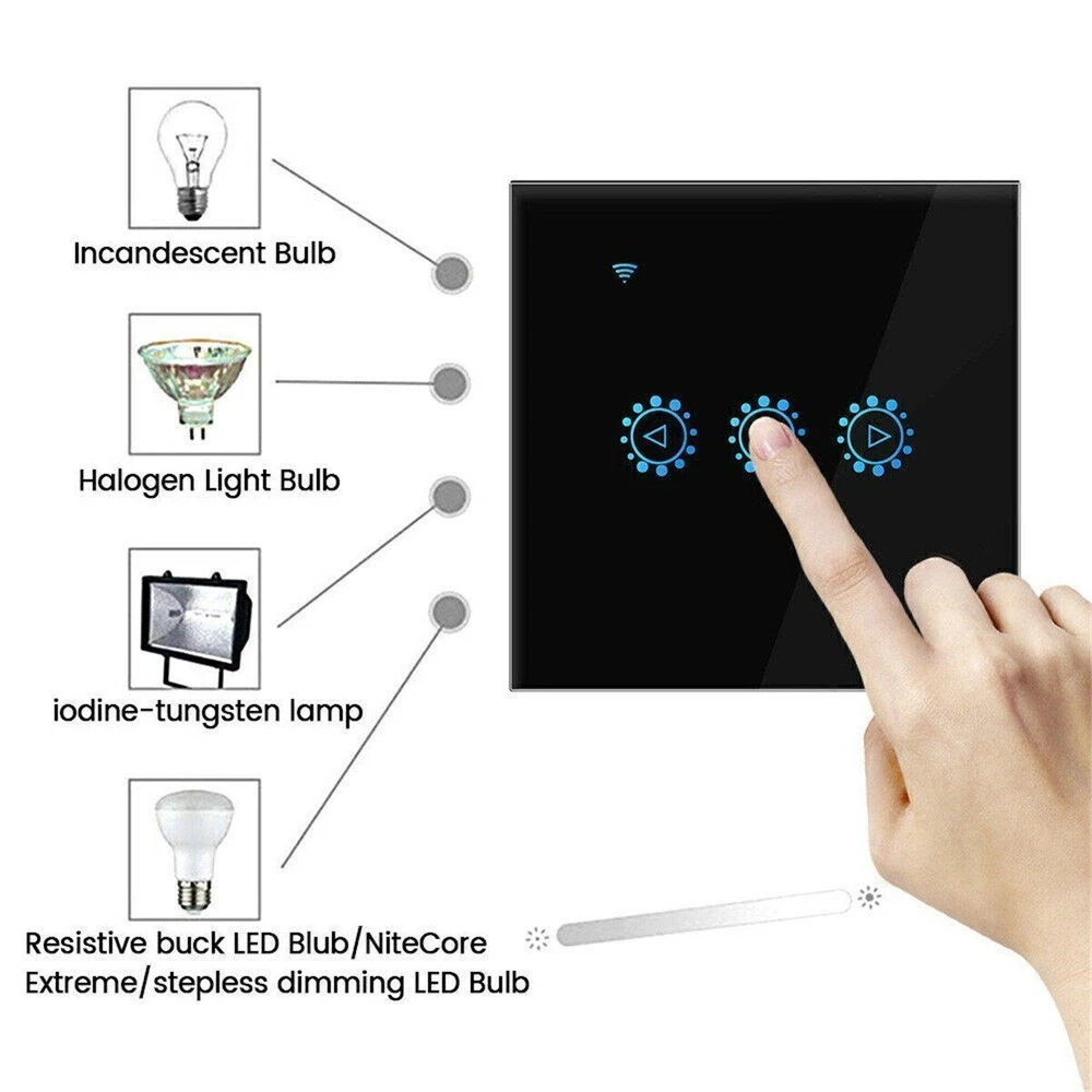 SAFE & SECURE SHOPPING 100% SATISFACTION GUARANTEED FAST SHIPPING Wall Switch WiFi Smart Light Dimmer Touch Remote Control Light for Alexa US Product Description Note: 1. Need neutral wire; 2. Before buying, please check if your flush-mounted installation box is suitable; 3. Can only be used with dimmable LED bulbs. 4. 5G network connection is not supported. Descriptions: 100% brand new. Name: Wifi dimming touch remote control smart timer switch black (EU / UK universal, EWELINK scheme) Material: PC Optional Color: white/black Features: Ultra-thin luxury tempered glass panel, crystal clear and never fade, ten years is still bright and clean as new. Zero fire wire design, directly replace mechanical switches; Low power consumption standby, energy saving and safety; fast response speed, no delay; Anti-lightning, anti-surge, effective protection circuit; Wi-Fi remote, non-directional, unlimited distance, more convenient operation. Can be used with Amazon Alexa, with Google Home, IFTTT. APP remote control: As long as the mobile phone has 2G / 3G / 4G / WIFI network, users can remotely control the on / off / dimming of home appliances using the smartphone anytime and anywhere through the APP. It makes your home appliances smart in 1 second. Compatible with iOS and Android OS. Specification: Material: high quality ABS Product certificate: CE, ROHS, EMC / FCC, real safety testing Power supply mode: neutral line, live line Input voltage: AC100V ~ AC230V 50 / 60Hz Overall dimensions: 86 * 86 * 32mm Control number: 1 Load power: 2A / channel (triac contact) Transmission method: WiFi Wireless standard: WiFi (2.4G 802.11 b / g / n), does not support 5G networks. Control distance: infinite distance (under 2G / 3G / 4G / WiFi network) Applicable system: IOS 8.1 / Android4.1 and above App language: adaptive Chinese / English / Korean / German / French / Spanish / Italian / Arabic Control method: touch, voice control, mobile APP three-in-one multi-function control Suitable for the market: EU / UK APP download: eWeLink. Package list: 1 dimmer switch Payment Shipping Returns Contact US Payment Payment must be completed within 5 days. If you have any problems about payment, please contact us via ebay message. Shipping We only ship to confirmed ebay Order addresses. Please comfirm that your Order address is in line with your shipping address. Please kindly note that the combined shipping is not provided because the shipping fee is calculated by weight. Also, the each additional item means exactly the the same color and size. It takes about 7-15 working days to US; about 10-30 working days to other countries. Transit time may be a little delayed because of the bad weather and customs inspection. If you do not receive your item within 30 working days since payment finished, please contact us immediately for further assistance. Returns Items can be returned for exchange or refund within 30 days from the date you receive your merchandise. We are not responsible for any purchase after this 30-day period. Return shipping is the responsibility of buyer unless the return is a result of our mistake (i.e., your receive the wrong item). We will pay for shipping replacement back to you if an exchange is requested. Contact US Customer satisfaction is very important to us and our feedback rating reflects this satisfaction. If you have any questions, Our customer service staffs welcome feel free to contact us by EBAY message box. We strive to answer all questions and resolve any problems as quickly as possible. Copyright © 2022 Tongtool On Dec 15, 2024 at 22:45:31 PST, seller added the following information: