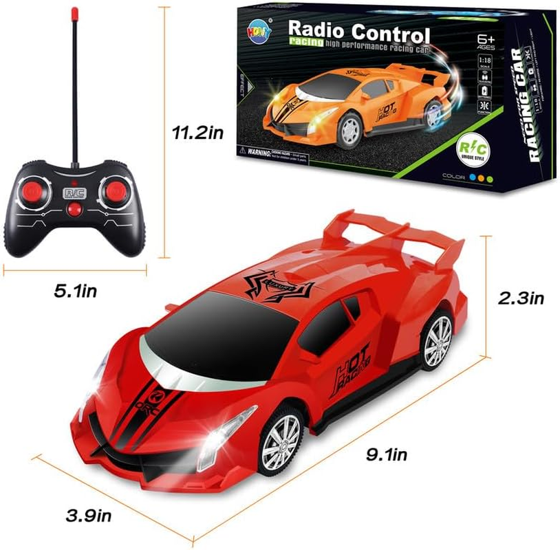 2.4 GHz High-Speed RC Car : This remote control car is high speed super drift car with Cool Led Lights. Delicate and exquisite with a powerful built-in motor,the maximum speed can reach 10KM/H, Long control distance,good anti-interference ability, high-speed and stable running performance. Super Cool Model Car Toy : 1/18 scale RC car is great size for inside use, Sufficient range between the car and the control for 27mhz. the remote control distance up to 165 ft. it need 3 AA batteries for cars (not included) and 2 AA batteries for remote controllers (not included). easily to have a great fun in anytime. 3 4 5 6 7 8 9 10 Year old boys girls gifts toys. Easy to Control : This remote control car can move steadily in any direction within a few seconds through a miniature,smooth remote control,which is suitable for children's hands.It has the functions of drifting, advancing, retreating, and turning left and right.kids can enjoy great fun with this function car. High-Quality Materials : The non-toxic ABS rugged plastic body can prevent scratches and effectively avoid damage caused by collisions.This remote control car equipped with flexible and anti-shock wheels works best on the flat surface with a perfect arc of super vehicle body and can be used indoors or outdoors.your kids have a lasting and happy entertainment. The Perfect Gift for kids : This Lamborghini car is the best choice for your child to race with friends and share happy time with family.For boys girls aged 3,4,5,6,7,8-10,also the best gifts for 3,4,5,6,7,8,9,10-12 children teens adults. Product Description PERFECT GIFT FOR YOUR KIDS! This Remote Control Car is perfectly designed for kids, which has wonderful design and cool features, suitable for Christmas, Birthday and other festival gifts. 1:18 SCALE TOY CAR POWERFUL REMOTE CONTROL,EASY TO CONTROL Full function: Forward, Reverse, Stop, Left & Right,drifting Operated by a 2.4Ghz frequency Stable and farther control distance Race multiple vehicles side by side without interference Car Battery: 3 * AA Battery (NOT included) Remote Battery: 2 * AA Battery (NOT included) SUPER COOL REMOTE CONTROL CARS TOYS 2.4G Remote Control 1:18 Scale Toy Car Fantastic Design with Cool Led Lights non-toxic ABS rugged plastic good choice as a gift for kids
