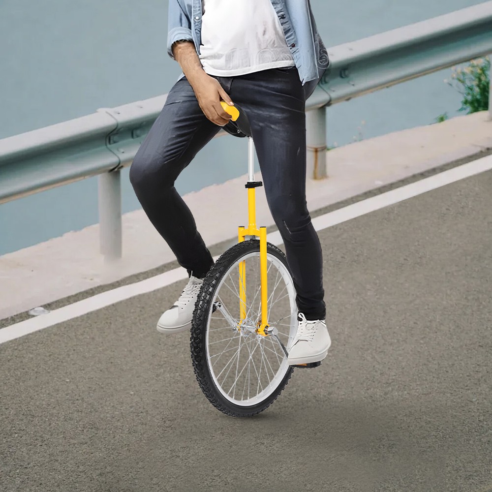 24-Inch Unicycle for Fitness, Balance, and Fun Riding Adventure 24-Inch Unicycle for Fitness and Fun Experience a new way to stay fit and have fun with our 24-inch unicycle! 🚴♂️ Perfect for enhancing your balance and fitness while enjoying the thrill of riding. Strong and Durable: Made from high-quality plastic, manganese steel, and aluminum alloy, this unicycle is designed to resist corrosion, deformation, and rust for a reliable ride. Adjustable Design: Easily adjust the seat height from 36 to 40 inches, accommodating riders over 5.74 feet tall. Stable Riding: The specially designed tire and non-slip pedals enhance grip, ensuring a safe and stable riding experience. Strong Load Bearing: With a sturdy aluminum alloy rim and manganese steel frame, it supports up to 154 lbs, giving you confidence while riding. Comfortable Riding Experience: The ergonomic, curved seat cushion is designed to fit your body, providing comfort during your rides. Thoughtful Design: Front and rear handles offer extra stability, making it easier to maintain balance while riding. This 24-inch unicycle is not just a mode of transportation; it's a unique fitness tool that challenges your balance and coordination. Whether you're navigating through busy city streets or enjoying a leisurely ride in the park, this unicycle offers a refreshing way to travel. Its lightweight design makes it easy to carry, while the durable materials ensure it withstands the test of time. Riding this unicycle is a fantastic workout that promotes cardiovascular health, enhances balance, and even stimulates brain development. It's suitable for a wide range of users, from office workers to students and cycling enthusiasts. Plus, its stylish appearance makes it a great gift for friends and family! 🎁 Specifications: Color: Yellow Material: Manganese Steel, Aluminum Alloy, Plastic, Rubber Saddle Length: 23 cm / 9.06 in Wheel Diameter: 60.96 cm / 24 in Maximum Load Bearing Capacity: 70 kg / 154 lbs Suitable Height: > 1.75 m / 5.74 ft Height from Saddle to Pedals: 43.18-83.82 cm / 17-33 in Product Height: 91.44-101.6 cm / 36-40 in Seatpost Length: About 23 cm / 9.06 in Suitable Age: 7-60 Years Old Mount Type: Free Standing Assembly Required: Yes Package Size: 57 × 18 × 60 cm / 22.44 × 7.09 × 23.62 in Gross Weight: 5.4 kg / 11.9 lbs What’s in the Box: 1 × Unicycle Frame 1 × Unicycle Saddle 1 × Wheel 2 × Pedals Other Accessories for Assembly Usage Tips: Ensure the pedals are securely tightened before riding. When seated, your legs should be nearly straight with one foot on the lowest pedal position. Adjust the frame depth for your height and tighten it for safety. For beginners, practice in a safe, open area with a flat surface. Care & Maintenance: Clean the unicycle with a damp cloth to maintain its appearance. Regularly check for any loose parts and tighten as necessary. We are committed to providing quality products and services. If you encounter any issues, please reach out to us, and we will respond promptly to assist you. Don’t miss out on the chance to elevate your fitness routine! Order your 24-inch unicycle today and start your journey towards better balance and fun! Payment Delivery details Terms of sales About us Contact us Payment We accept ebay payment 。 Fees such as import duties, taxes are not included in the item price or shipping costs. These charges are the buyer's responsibility. Delivery details Shipping: 2-9 working days to: USA Terms of sales We maintain high standards of excellence and strive for hundred percent customer satisfaction. Feedback is very important to us. We hope that you contact us immediately before you give neutral or negative feedback, so that we can address your concerns. It is impossible to address issues if we do not know about them! About us Your satis faction is our ultimate goal. We work hard to earn your trust and future business. Our certified technicians have tested each item before shipping. The unit comes with 1 year limited warranty on all manufacturing defects. a) If you receive a defective item, you may return it or ask for a discount. Please contact us within 14 days after you receive the package. b) What you returned must be intact and in its original packaging as re? u. Customer is responsible for shipping costs of the returned item. c) We will cover the cost of shipping back t with the shipping rate indicated in the registration page. We will send you a new unit or refund the full payment you paid. Thank you. Contact us Business Hour Business Hour: Monday To Friday: 8:30 AM to 5:00 PM (Beijing China time) Due to time zones, our reply to your questions may not be immediately. But within above working time, we will reply your email within 24 hours. If it's non-workdays, please kindly be patient and wait till Monday. Please contact us with ebay message. Please feel free to contact us if you have any questions. Monday To Friday: 8:30 AM to 5:00 PM (Beijing China time) Due to time zones, our reply to your questions may not be immediately. But within above working time, we will reply your email within 24 hours. If it's non-workdays, please kindly be patient and wait till Monday. Please contact us with ebay message. Please feel free to contact us if you have any questions.