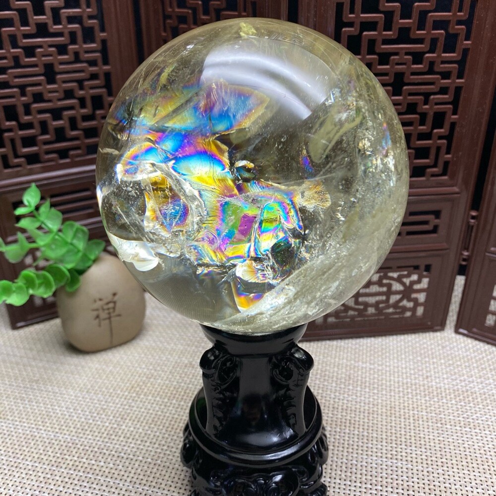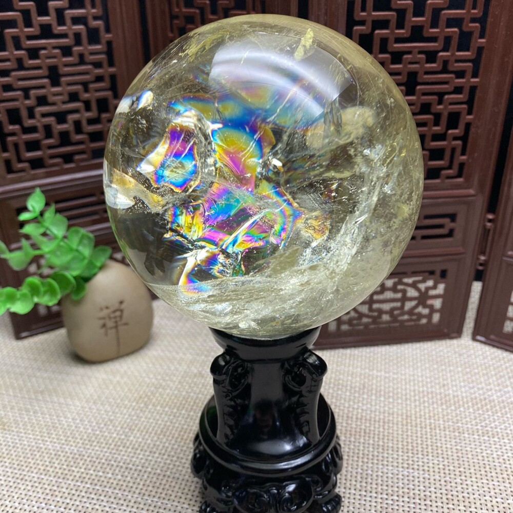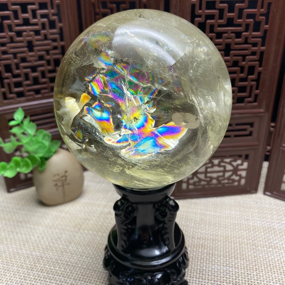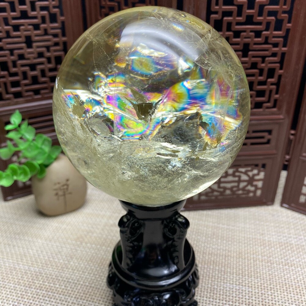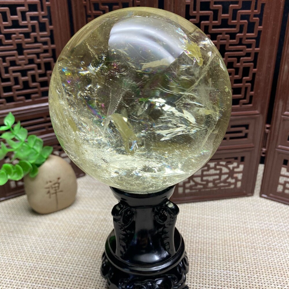 2.4LB Natural Citrine Sphere with Clear Quartz Crystal Ball for Reiki Healing 94mm Energy Stone