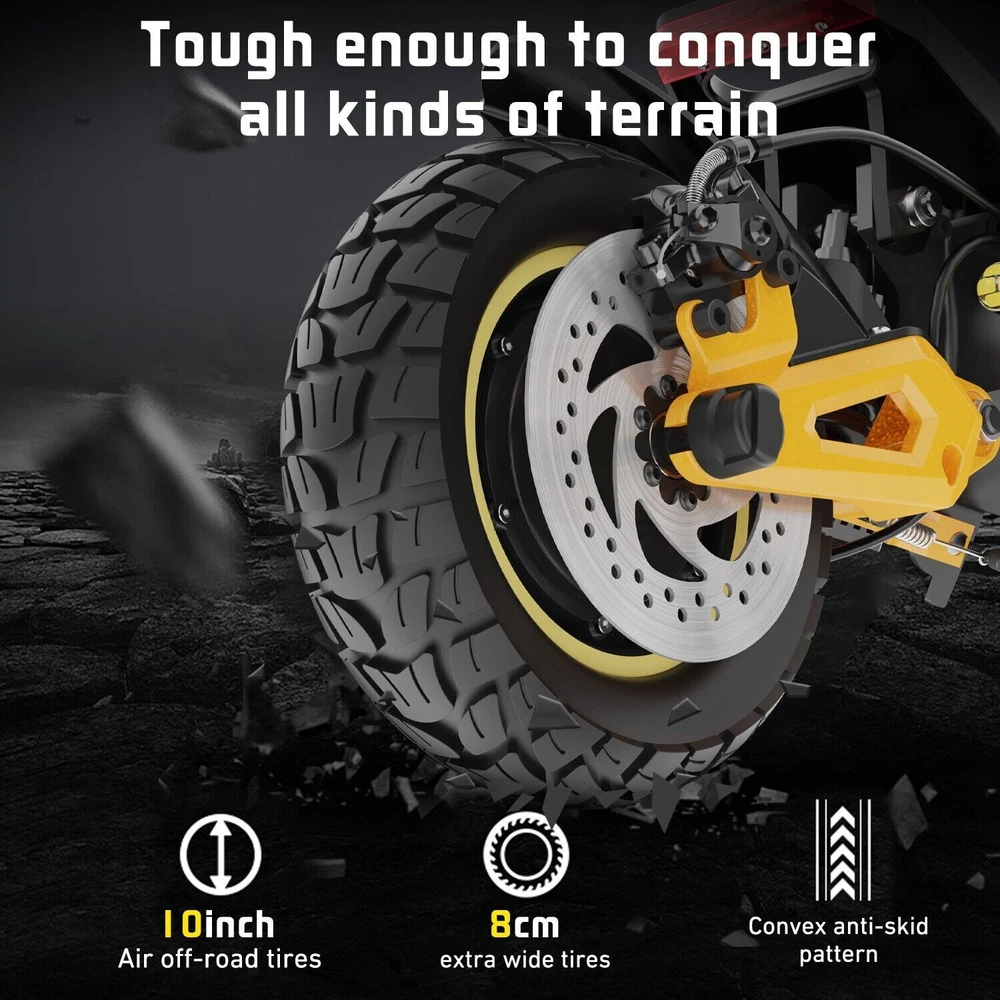 This scooter is a game-changer! The dual motors and off-road tires make it powerful and stable, even on rough terrain. The 48V battery gives an impressive 37-mile range, and the foldable design makes storage a breeze. The bright LED lights and disc brakes add safety, while the sturdy aluminum frame supports up to 265 lbs. Charging is quick, and the color display keeps you informed. Perfect for commuting or adventure—highly recommend!