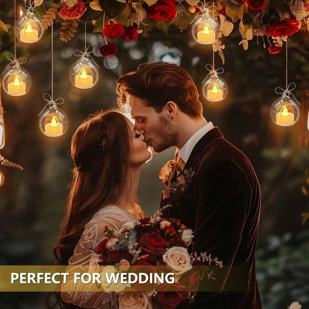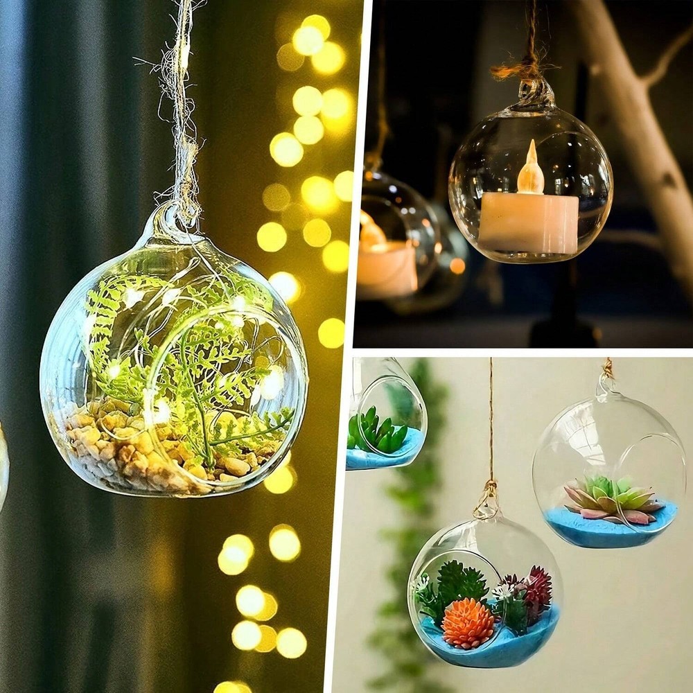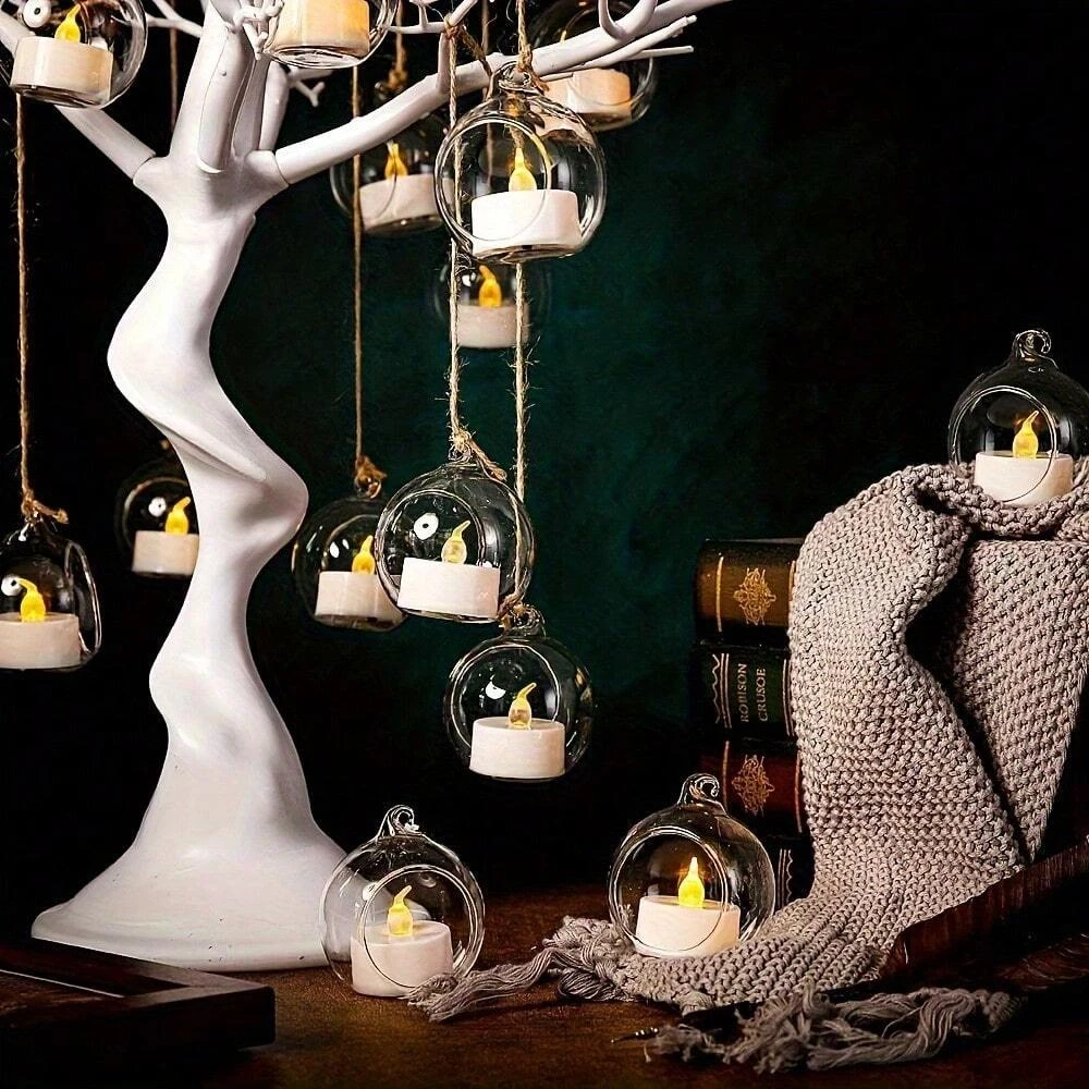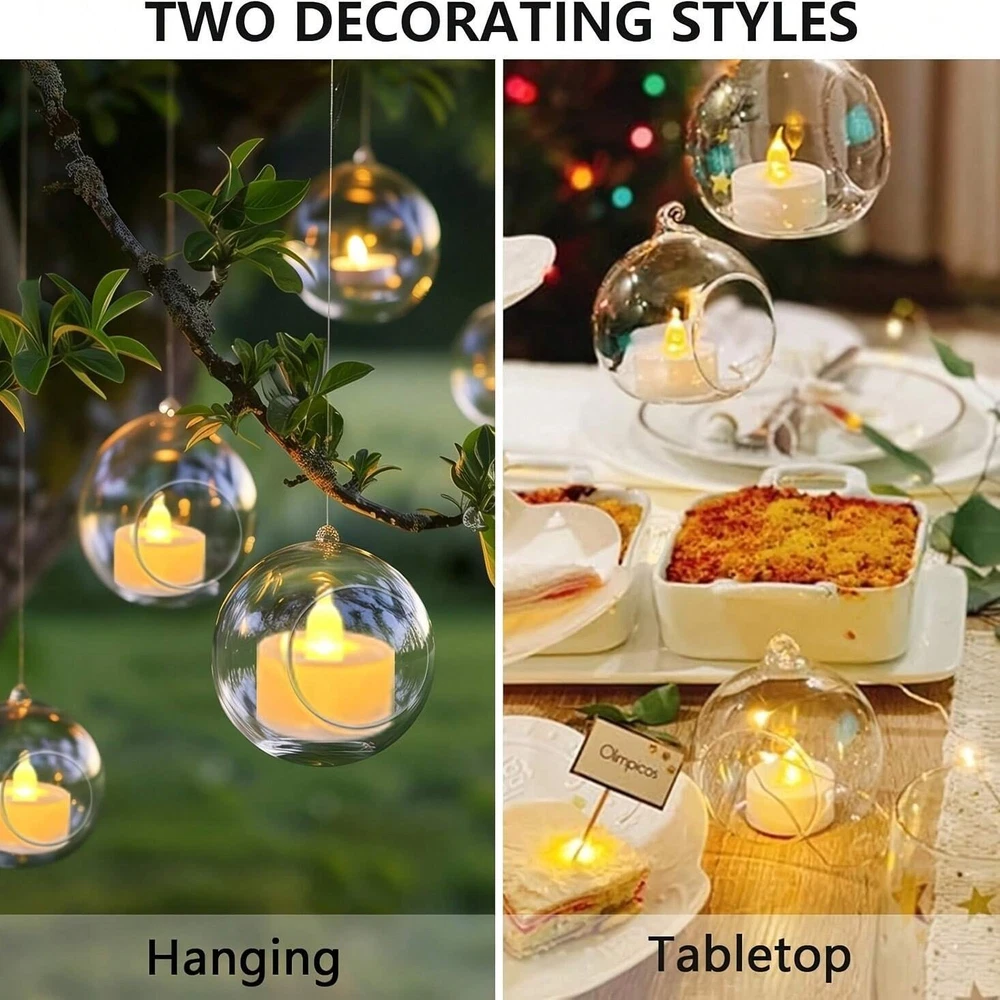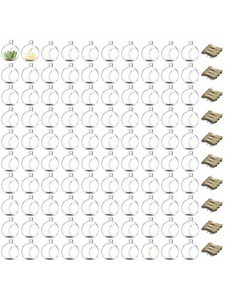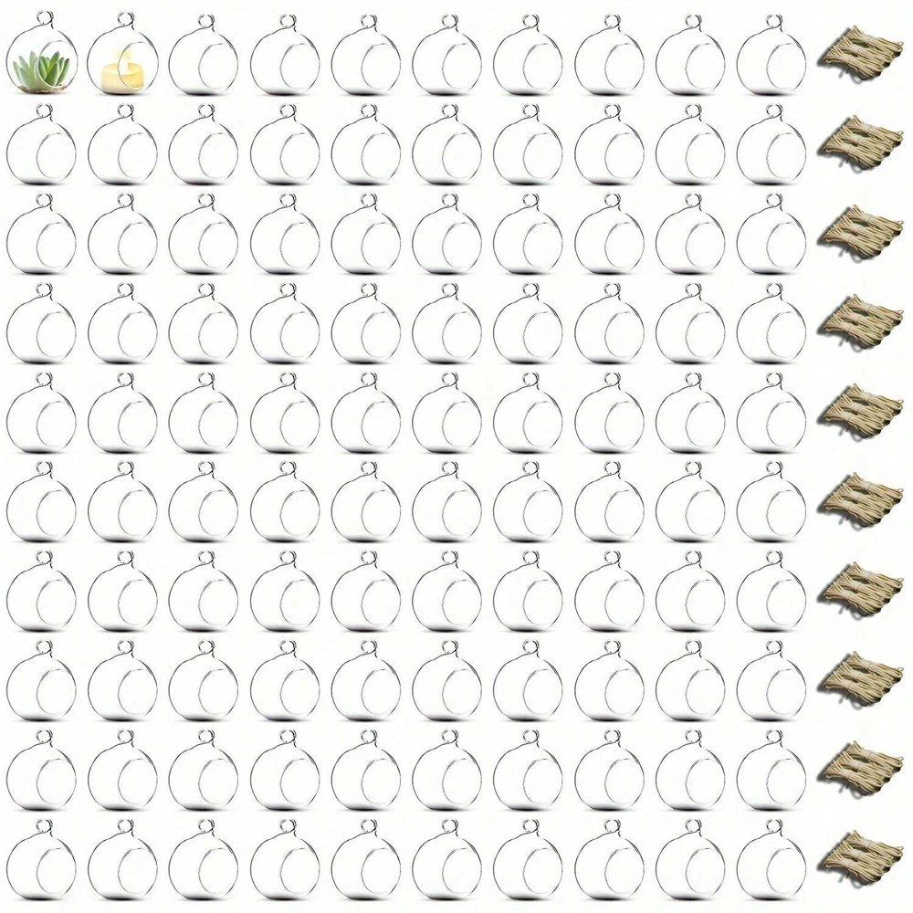 24pcs/100pcs Hanging Glass Globes, Hanging Tea Lights, 3.15in Candle Holder Glass Wedding Hanging Terrarium Globe, Air Plants Holders Hanging Glass Vase Planter Orbs Bulk For Wedding Party Decoration