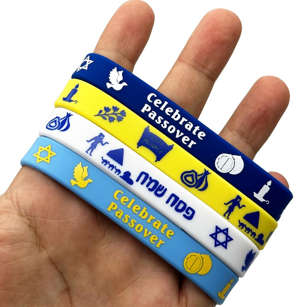 These Passover rubber bracelets are such a fun and festive addition to any holiday celebration! Perfect for parties, goodie bags, or gifts, they’re made of soft, flexible silicone that’s comfortable to wear and super durable. The vibrant designs don’t fade, and the waterproof material ensures they last. Kids and adults alike will love showing off their holiday spirit with these colorful bracelets. A must-have for any Jewish celebration!
