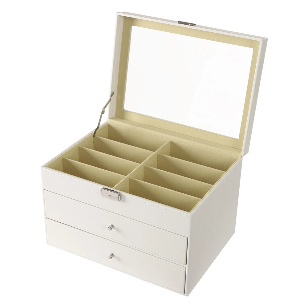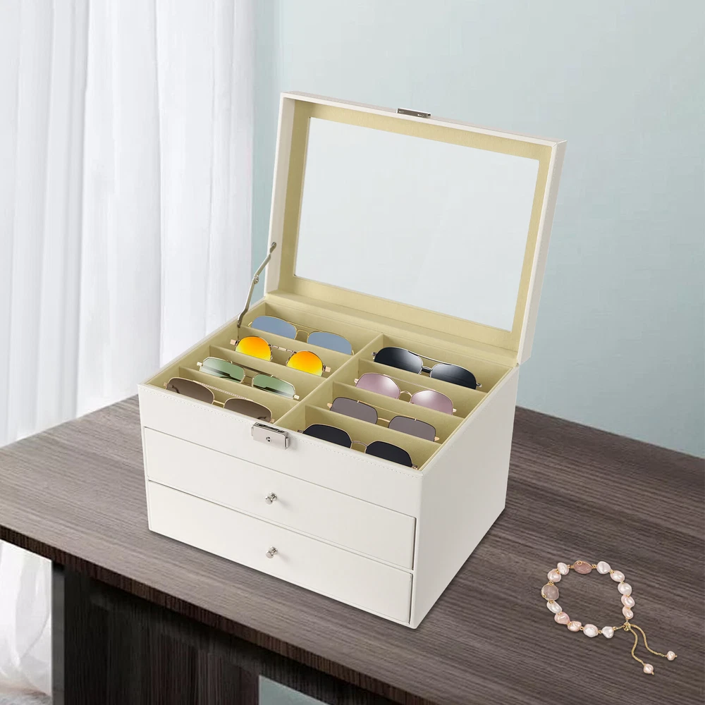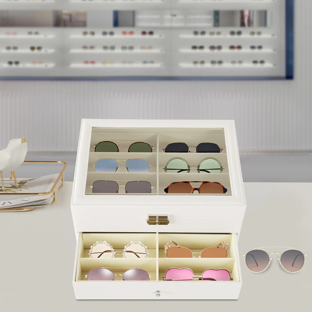 Description This 24-compartment eyeglasses display case with well-designed compartments brings each of your eyeglasses their own space for excellent storage and display. The drawer design is easy to store and take away, keeping everything organized. It is made of high-quality materials to protect your glasses while highlighting your elegant taste, making it ideal for eyeglass collectors and professionals. Key Features Sturdy and Durable: It is made of high-quality MDF, PU, glass, and lint, so it is eco-friendly, odorless, anti-corrosion, and rust-resistant, ensuring long-term use. Large Capacity: The three-tier design and 24 individual compartments provide plenty of space to store your eyeglasses. Each compartment boasts plenty of space (6.3*2.36*2.48in) so it can also be used fo 24-Slot Glasses Storage Display Case Organizer For Sunglasses Eyeglass Box Description This 24-compartment eyeglasses display case with well-designed compartments brings each of your eyeglasses their own space for excellent storage and display. The drawer design is easy to store and take away, keeping everything organized. It is made of high-quality materials to protect your glasses while highlighting your elegant taste, making it ideal for eyeglass collectors and professionals. Key Features Sturdy and Durable: It is made of high-quality MDF, PU, glass, and lint, so it is eco-friendly, odorless, anti-corrosion, and rust-resistant, ensuring long-term use. Large Capacity : The three-tier design and 24 individual compartments provide plenty of space to store your eyeglasses. Each compartment boasts plenty of space (6.3*2.36*2.48in) so it can also be used for storing earrings, jewelry, glasses, watches, etc. Thoughtful Design: The clear glass lid effectively protects your glasses from dust while enabling easy visualization, making it easy for you to choose the glasses that go with your outfit. Exquisite Appearance: The rectangular frame with a white appearance gives this box a natural, delicate, and elegant look that will complement your jewelry and be a beautiful addition to your home. Compact and Lightweight: The compact size (13.39*9.84*7.48in) and lightweight (7.72 lbs) make it an excellent choice for storing glasses while saving desktop space. High Safety: The sturdy lock and key provide improve the security for the top tier. Furthermore, the interior has soft lint to safeguard your glasses from scratches and damage. User-friendly Design: Flip lid design and double drawer design allow you to access and store your eyeglasses easily. Ideal Gift: Thanks to its practicality, it will make a fine gift for family, friends, and loved ones on Christmas, Father's Day, Mother's Day, birthdays, anniversaries, and holidays. Buy with Confidence: We stand behind all our guests and look forward to assisting you with your purchase. It is our pleasure to answer your confusion and questions. The end of the story between us is not "we sell and you buy". Details Smooth Edges: The edges are rounded and burr-free, offering a pleasant user experience and gentle care for your skin. Smooth Handles: These round handles allow you to open or close drawers more easily. Stable Hinge: It offers reliable support during the opening of the glass lid. Application The product is suitable for exhibitions, opticians, homes, professional makeup artists, jewelry collectors, and jewelry organizers to store glasses, jewelry, cufflinks, spare clasps, watches, rings, earrings, and necklaces. Specifications Color: White Material: PU, MDF, Lint, Glass Mount Type: Free Standing, Tabletop Assembly Required: No Shape: Rectangle Number of Tiers: 3 Product Overall Size: 34*25*19cm/13.39*9.84*7.48in Each Compartment Size: 16*6*6.3cm/6.3*2.36*2.48in Package Size: 36*30*30cm/14.17*11.81*11.81in Gross Weight: 4kg/8.82lbs Net Weight: 3.5kg/7.72lbs Package Included 1* Eyeglasses Display Case 1* Key Notes Please check the size carefully before ordering. Please note that this product does not include any jewelry or eyeglasses. Please allow the slight color difference caused by the shooting light and 1-3cm error due to manual measurement, and make sure you do not mind before you order. Payment Delivery details Terms of sales About us Contact us Payment We accept ebay payment 。 Fees such as import duties, taxes are not included in the item price or shipping costs. These charges are the buyer's responsibility. Delivery details Shipping: 2-9 working days to: USA Terms of sales We maintain high standards of excellence and strive for hundred percent customer satisfaction. Feedback is very important to us. We hope that you contact us immediately before you give neutral or negative feedback, so that we can address your concerns. It is impossible to address issues if we do not know about them! About us Your satis faction is our ultimate goal. We work hard to earn your trust and future business. Our certified technicians have tested each item before shipping. The unit comes with 1 year limited warranty on all manufacturing defects. a) If you receive a defective item, you may return it or ask for a discount. Please contact us within 14 days after you receive the package. b) What you returned must be intact and in its original packaging as re? u. Customer is responsible for shipping costs of the returned item. c) We will cover the cost of shipping back t with the shipping rate indicated in the registration page. We will send you a new unit or refund the full payment you paid. Thank you. Contact us Business Hour Business Hour: Monday To Friday: 8:30 AM to 5:00 PM (Beijing China time) Due to time zones, our reply to your questions may not be immediately. But within above working time, we will reply your email within 24 hours. If it's non-workdays, please kindly be patient and wait till Monday. Please contact us with ebay message. Please feel free to contact us if you have any questions. Monday To Friday: 8:30 AM to 5:00 PM (Beijing China time) Due to time zones, our reply to your q