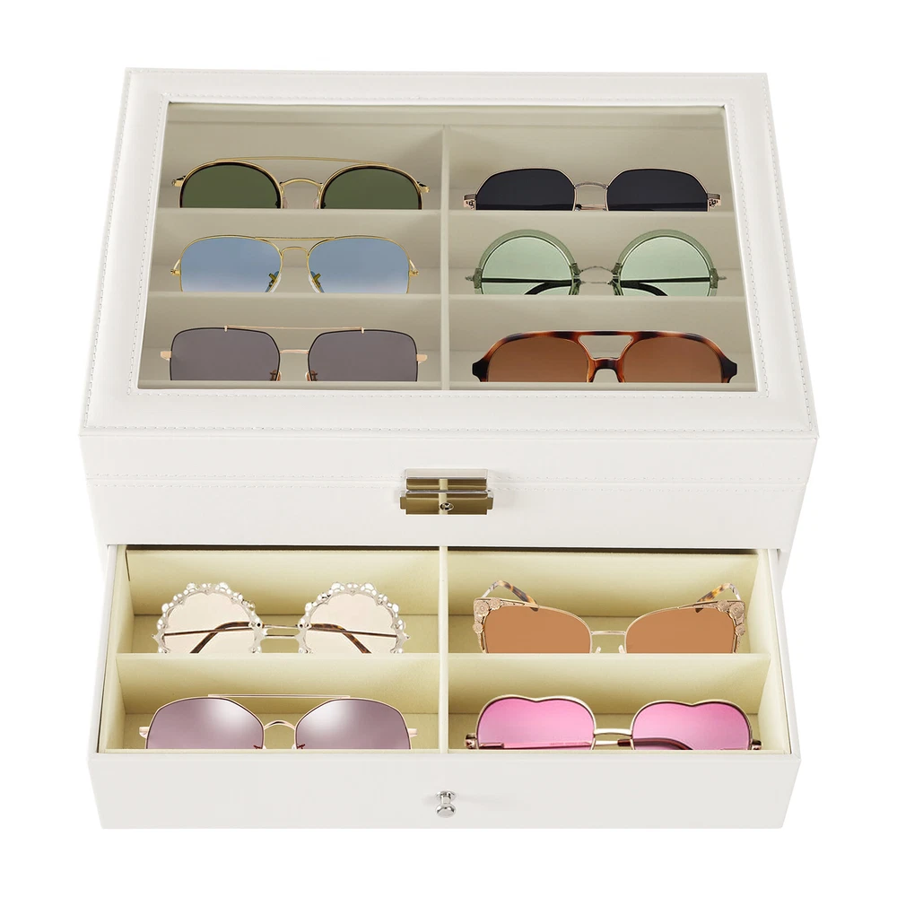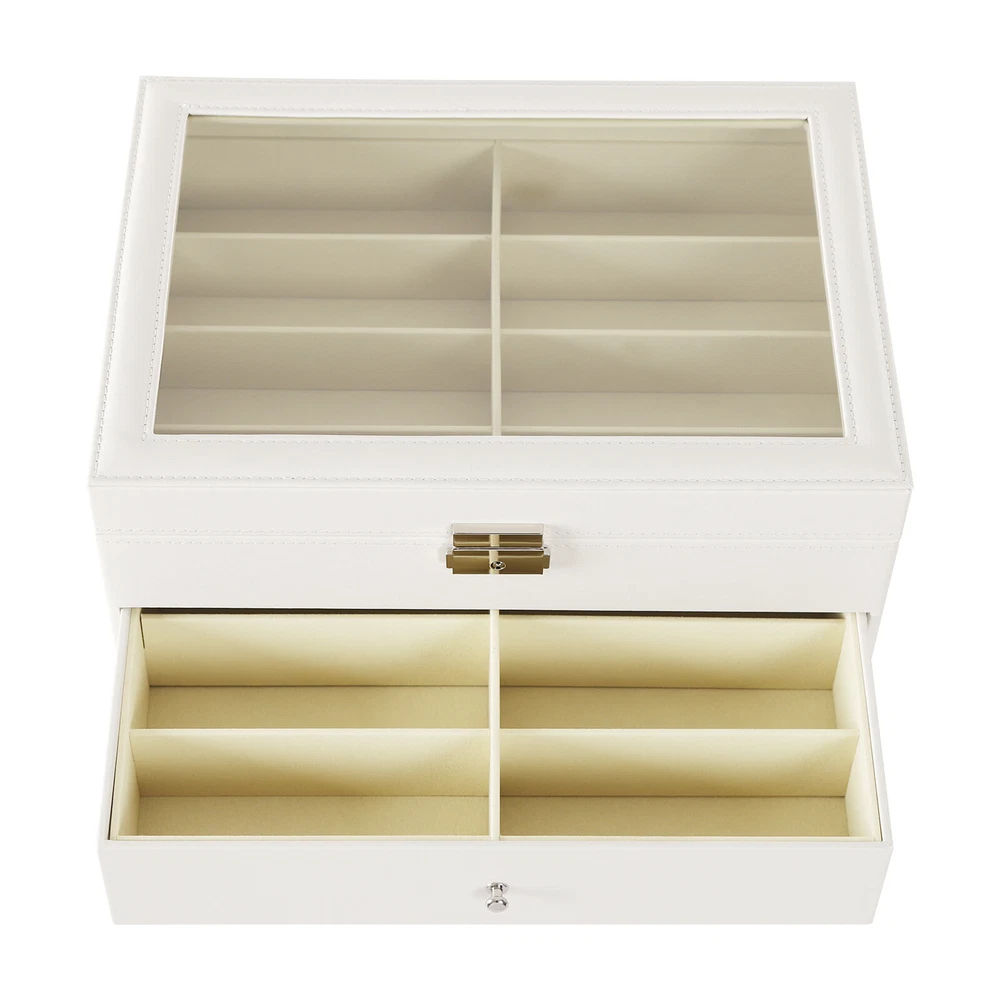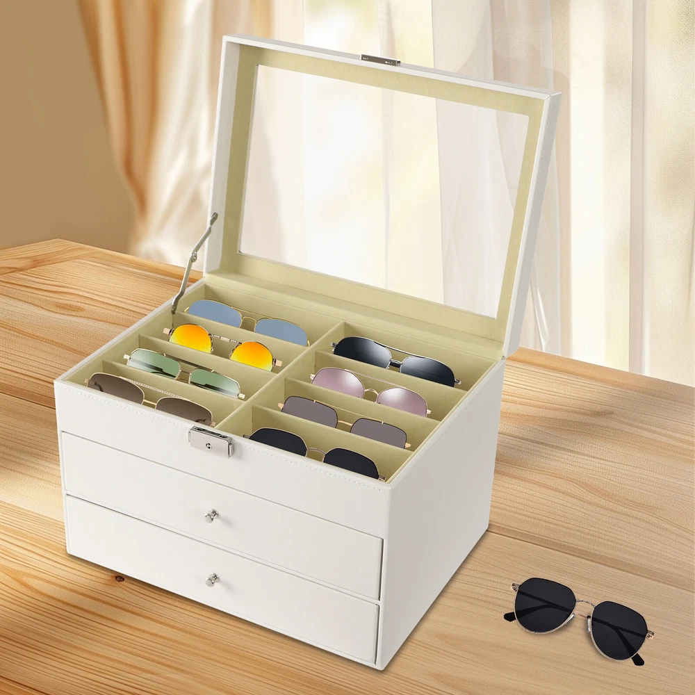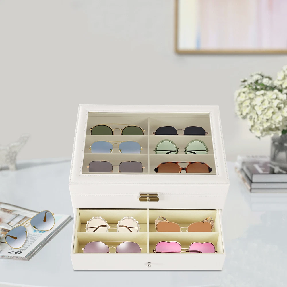 Description This 24-compartment eyeglasses display case with well-designed compartments brings each of your eyeglasses their own space for excellent storage and display. The drawer design is easy to store and take away, keeping everything organized. It is made of high-quality materials to protect your glasses while highlighting your elegant taste, making it ideal for eyeglass collectors and professionals. Key Features Sturdy and Durable: It is made of high-quality MDF, PU, glass, and lint, so it is eco-friendly, odorless, anti-corrosion, and rust-resistant, ensuring long-term use. Large Capacity: The three-tier design and 24 individual compartments provide plenty of space to store your eyeglasses. Each compartment boasts plenty of space (6.3*2.36*2.48in) so it can also be used fo 24-Slot Glasses Storage Display Case Organizer For Sunglasses Eyeglass Box Description This 24-compartment eyeglasses display case with well-designed compartments brings each of your eyeglasses their own space for excellent storage and display. The drawer design is easy to store and take away, keeping everything organized. It is made of high-quality materials to protect your glasses while highlighting your elegant taste, making it ideal for eyeglass collectors and professionals. Key Features Sturdy and Durable: It is made of high-quality MDF, PU, glass, and lint, so it is eco-friendly, odorless, anti-corrosion, and rust-resistant, ensuring long-term use. Large Capacity : The three-tier design and 24 individual compartments provide plenty of space to store your eyeglasses. Each compartment boasts plenty of space (6.3*2.36*2.48in) so it can also be used for storing earrings, jewelry, glasses, watches, etc. Thoughtful Design: The clear glass lid effectively protects your glasses from dust while enabling easy visualization, making it easy for you to choose the glasses that go with your outfit. Exquisite Appearance: The rectangular frame with a white appearance gives this box a natural, delicate, and elegant look that will complement your jewelry and be a beautiful addition to your home. Compact and Lightweight: The compact size (13.39*9.84*7.48in) and lightweight (7.72 lbs) make it an excellent choice for storing glasses while saving desktop space. High Safety: The sturdy lock and key provide improve the security for the top tier. Furthermore, the interior has soft lint to safeguard your glasses from scratches and damage. User-friendly Design: Flip lid design and double drawer design allow you to access and store your eyeglasses easily. Ideal Gift: Thanks to its practicality, it will make a fine gift for family, friends, and loved ones on Christmas, Father's Day, Mother's Day, birthdays, anniversaries, and holidays. Buy with Confidence: We stand behind all our guests and look forward to assisting you with your purchase. It is our pleasure to answer your confusion and questions. The end of the story between us is not "we sell and you buy". Details Smooth Edges: The edges are rounded and burr-free, offering a pleasant user experience and gentle care for your skin. Smooth Handles: These round handles allow you to open or close drawers more easily. Stable Hinge: It offers reliable support during the opening of the glass lid. Application The product is suitable for exhibitions, opticians, homes, professional makeup artists, jewelry collectors, and jewelry organizers to store glasses, jewelry, cufflinks, spare clasps, watches, rings, earrings, and necklaces. Specifications Color: White Material: PU, MDF, Lint, Glass Mount Type: Free Standing, Tabletop Assembly Required: No Shape: Rectangle Number of Tiers: 3 Product Overall Size: 34*25*19cm/13.39*9.84*7.48in Each Compartment Size: 16*6*6.3cm/6.3*2.36*2.48in Package Size: 36*30*30cm/14.17*11.81*11.81in Gross Weight: 4kg/8.82lbs Net Weight: 3.5kg/7.72lbs Package Included 1* Eyeglasses Display Case 1* Key Notes Please check the size carefully before ordering. Please note that this product does not include any jewelry or eyeglasses. Please allow the slight color difference caused by the shooting light and 1-3cm error due to manual measurement, and make sure you do not mind before you order. Payment Delivery details Terms of sales About us Contact us Payment We accept ebay payment 。 Fees such as import duties, taxes are not included in the item price or shipping costs. These charges are the buyer's responsibility. Delivery details Shipping: 2-9 working days to: USA Terms of sales We maintain high standards of excellence and strive for hundred percent customer satisfaction. Feedback is very important to us. We hope that you contact us immediately before you give neutral or negative feedback, so that we can address your concerns. It is impossible to address issues if we do not know about them! About us Your satis faction is our ultimate goal. We work hard to earn your trust and future business. Our certified technicians have tested each item before shipping. The unit comes with 1 year limited warranty on all manufacturing defects. a) If you receive a defective item, you may return it or ask for a discount. Please contact us within 14 days after you receive the package. b) What you returned must be intact and in its original packaging as re? u. Customer is responsible for shipping costs of the returned item. c) We will cover the cost of shipping back t with the shipping rate indicated in the registration page. We will send you a new unit or refund the full payment you paid. Thank you. Contact us Business Hour Business Hour: Monday To Friday: 8:30 AM to 5:00 PM (Beijing China time) Due to time zones, our reply to your questions may not be immediately. But within above working time, we will reply your email within 24 hours. If it's non-workdays, please kindly be patient and wait till Monday. Please contact us with ebay message. Please feel free to contact us if you have any questions. Monday To Friday: 8:30 AM to 5:00 PM (Beijing China time) Due to time zones, our reply to your q