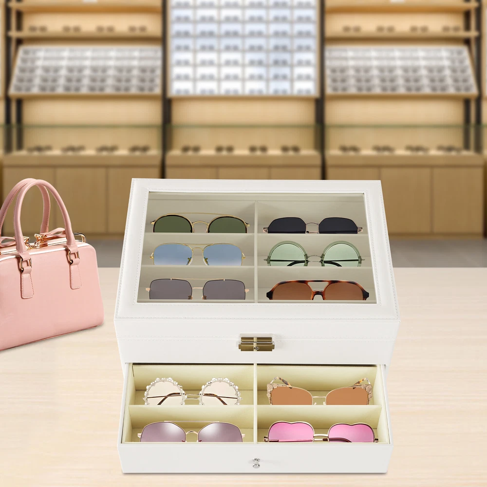 Description This 24-compartment eyeglasses display case with well-designed compartments brings each of your eyeglasses their own space for excellent storage and display. The drawer design is easy to store and take away, keeping everything organized. It is made of high-quality materials to protect your glasses while highlighting your elegant taste, making it ideal for eyeglass collectors and professionals. Details Smooth Edges: The edges are rounded and burr-free, offering a pleasant user experience and gentle care for your skin. Smooth Handles: These round handles allow you to open or close drawers more easily. Stable Hinge: It offers reliable support during the opening of the glass lid