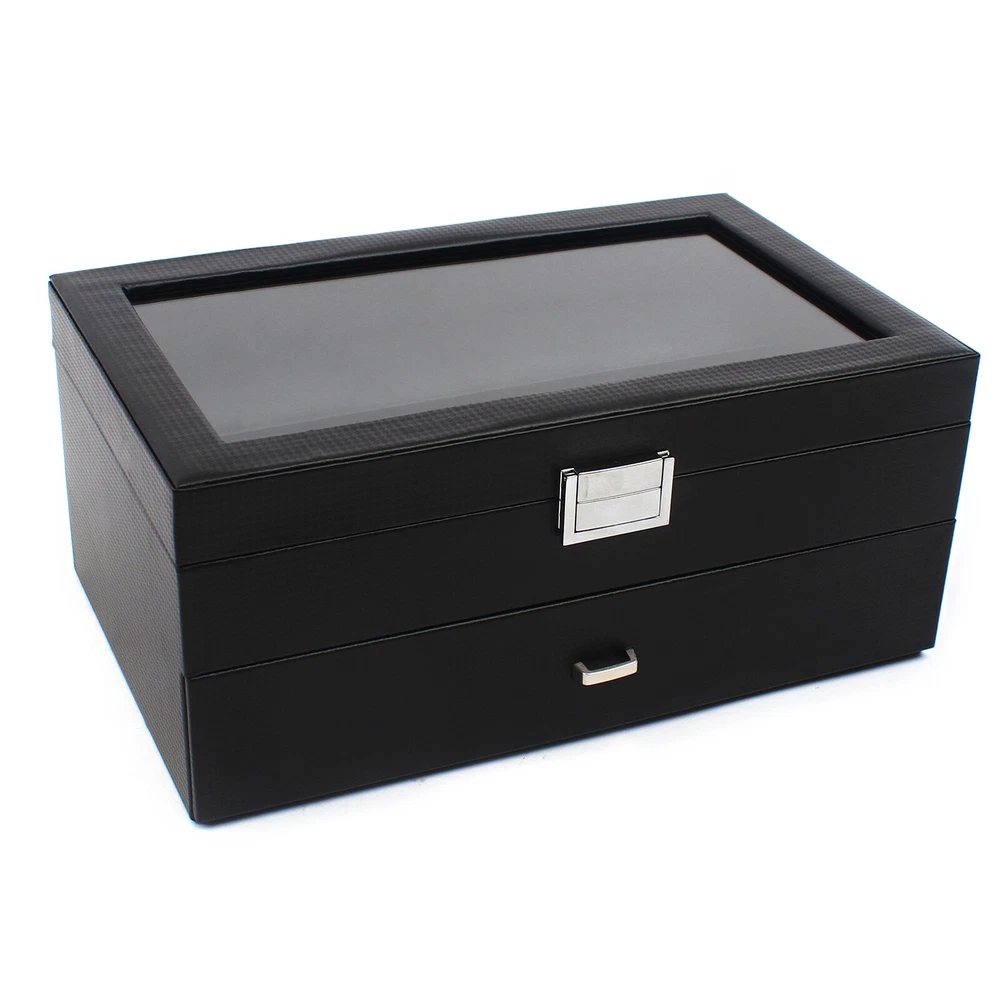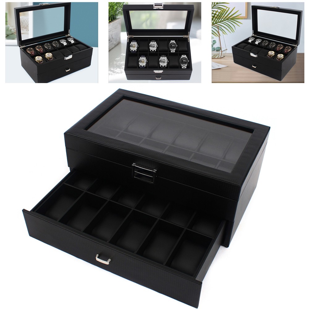 24 Slot Men Watch Display Case Large Jewelry Organizer Box Luxury Storage Holder Watch Box 24 Mens Case Glass Top Black and Display Organizer Lockable Description The watch box is made of high-quality wood, carbon fiber, glass, plastic, and zinc alloy, which is strong, durable, and not easy to deform. It has two layers with a total of 24 compartments and a lot of storage space, which can meet your daily storage needs. Specification Color: Black Material: Wood, Carbon Fiber, Glass, Zinc Alloy Pillow Inner Material: Plastic Number of Compartments: 24 Shape: Rectangular Mounting Type: Freestanding Closure Type: Electroplated Latch Number of Drawers: 1 Net Weight: 3.4kg/7.5lbs Package Weight: 3.7kg/8.1lbs Product Size: 34*21*14.8cm/13.4*8.3*5.8inch Package Size: 34.5*23.5*17.5cm/13.5*9.2*6.8inch Package Included 1* Watch Box Details Exquisite Workmanship: This is a carefully crafted watch box. The premium carbon fiber grain and fine workmanship give it a luxurious texture. Dust-proof Design: The top lid and drawer can prevent dust from entering, which can keep the interior clean to save you a lot of cleaning time. High Light-transmitting Glass: The high light-transmitting glass at the top of the watch box provides a clear view of the watch's storage position and also allows for a better display of your watches. So you can easily find the watch you want. Good Materials: The watch box is made of high-quality wood, carbon fiber, glass, plastic, and zinc alloy, which is strong, durable, and not easy to deform. Good materials can extend its service life. Delicate Designed Pillow: The surface of the pillow is made of soft carbon fiber, which is anti-slipe and comfortable to touch so that the watch is better cared for. Compartment Design: This watch box has 2 layers of compartments for classified storage. This can make the space neater. You can easily find the watch, bracelet, necklace, earring, ring, and brooch you want. Large Storage Space: This product has two layers with a total of 24 compartments and a lot of storage space, which can meet your daily storage needs. Versatile: This product can be used to store not only watches in the first layer but also other items inside the second one. It is versatile and can meet your daily needs. Beautiful Appearance: The luxurious black casing with silver locking clasp gives the box a stylish, classic look. The black lining shows off the luster of your watch even better. A Good Gift: This watch box is an ideal gift for your mom, wife, husband, daughter, or girlfriend. It will be a practical and memorable gift. Key Features A Handle: There is a handle on the outside of the drawer for easier opening and closing. Electroplated Latch: The electroplated latch can prevent corrosion and rust, so it's durable. You can use it for a longer time. Guaranteed Customer Service: We aim to provide quality products and services. If you have problems, please feel free to contact us. We will reply and solve the problem for you as soon as possible. Application: It can be used to store watches, bracelets, necklaces, earrings, rings, brooches, and other accessories . It is also a great gift for your mom, wife, husband, daughter, or girlfriend. Notes Please allow the slight color difference caused by the shooting light and 1-3cm error due to manual measurement, and make sure you do not mind before ordering. Payment Delivery details Terms of sales About us Contact us Payment We accept ebay payment 。 Fees such as import duties, taxes are not included in the item price or shipping costs. These charges are the buyer's responsibility. Delivery details Shipping: 2-9 working days to: USA Terms of sales We maintain high standards of excellence and strive for hundred percent customer satisfaction. Feedback is very important to us. We hope that you contact us immediately before you give neutral or negative feedback, so that we can address your concerns. It is impossible to address issues if we do not know about them! About us Your satis faction is our ultimate goal. We work hard to earn your trust and future business. Our certified technicians have tested each item before shipping. The unit comes with 1 year limited warranty on all manufacturing defects. a) If you receive a defective item, you may return it or ask for a discount. Please contact us within 14 days after you receive the package. b) What you returned must be intact and in its original packaging as re? u. Customer is responsible for shipping costs of the returned item. c) We will cover the cost of shipping back t with the shipping rate indicated in the registration page. We will send you a new unit or refund the full payment you paid. Thank you. Contact us Business Hour Business Hour: Monday To Friday: 8:30 AM to 5:00 PM (Beijing China time) Due to time zones, our reply to your questions may not be immediately. But within above working time, we will reply your email within 24 hours. If it's non-workdays, please kindly be patient and wait till Monday. Please contact us with ebay message. Please feel free to contact us if you have any questions. Monday To Friday: 8:30 AM to 5:00 PM (Beijing China time) Due to time zones, our reply to your questions may not be immediately. But within above working time, we will reply your email within 24 hours. If it's non-workdays, please kindly be patient and wait till Monday. Please contact us with ebay message. Please feel free to contact us if you have any questions. Features ★Special Fashion Design★ Features3: Stable characteristics, high reliability Features2: Made of high quality material, Durable Features 1: stable performance,Durable Features 1 stable performance,Durable Features3 Stable characteristics, high reliability Features2 Made of high quality material, Durable * Feature *: 🔥high performance🔥reliable quality🔥good stability √Service√ √Any problem, please contact the seller√ --Service-- Any problem, please contact the seller! Brand Unbranded Type Display Pil