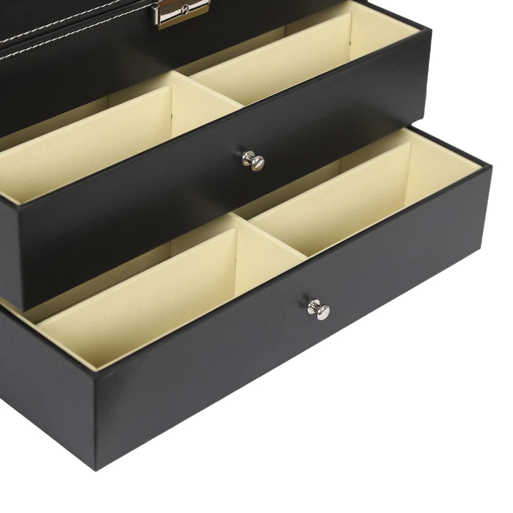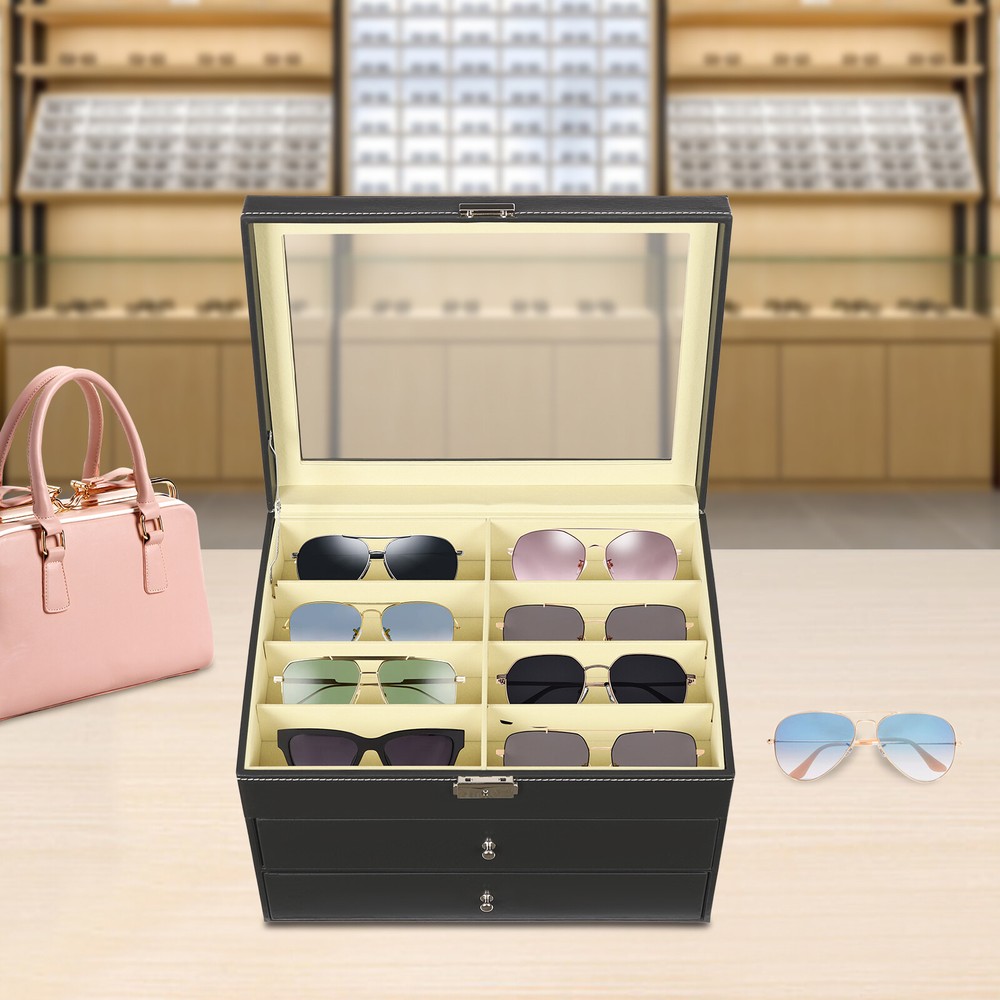 Description This 24-compartment eyeglasses display case with well-designed compartments brings each of your eyeglasses their own space for excellent storage and display. The drawer design is easy to store and take away, keeping everything organized. It is made of high-quality materials to protect your glasses while highlighting your elegant taste, making it ideal for eyeglass collectors and professionals. Details Smooth Edges: The edges are rounded and burr-free, offering a pleasant user experience and gentle care for your skin. Smooth Handles: These round handles allow you to open or close drawers more easily. Stable Hinge: It offers reliable support during the opening of the glass lid.