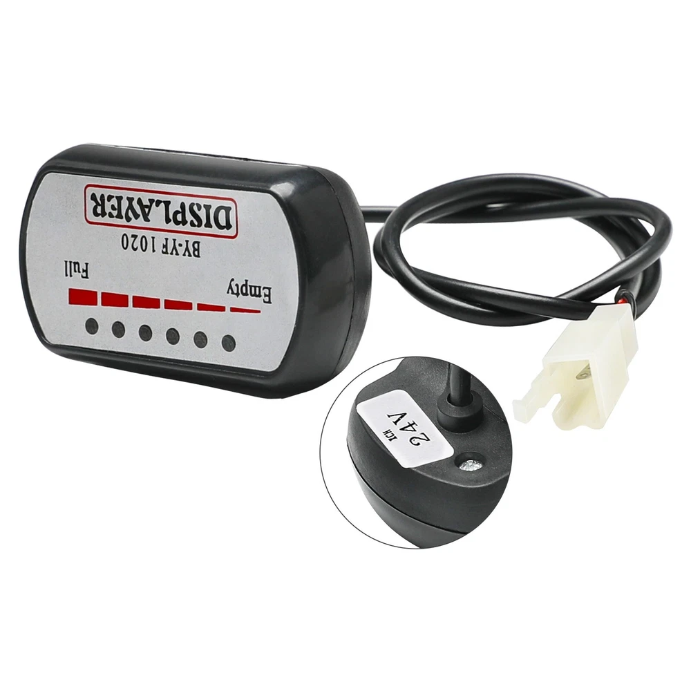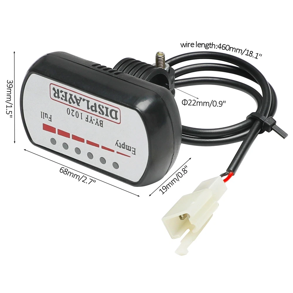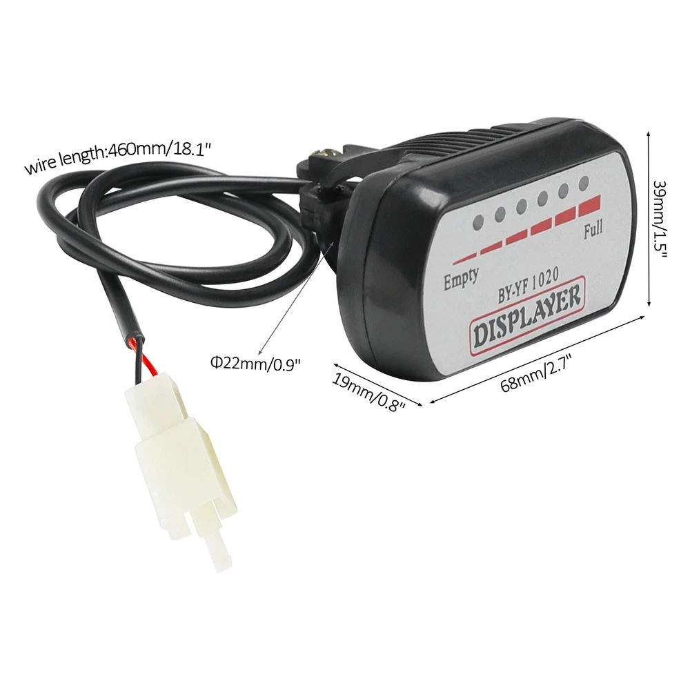 Product Specification: Product Type:Display Battery Meter Condition:100% Brand New Main Color: Black Material:Plastic Voltage:24V/36V/48V Rated Working Current : 10ma The Maximum Working Current : 30m A Off-State Leakage Current : <1μ A Working Temperature:-20℃~ 60℃ Storage Temperature : -30℃~ 70℃ Length : 68mm /2.68 " Width : 39mm /1.54 " Mounting : Handle (No Screw Included) Connection:There are 2 wires coming out of the device Red + BATT : Connect to battery PLUS.However , it is best to connect this wire to the ignition switch circuit so that the device starts up together with the controller after switching the key / button Black GND : Connect to the battery MINUS.CAUTION . If you have a BMS - you have to connect the cable to GND somewhere between the BMS and the controller , not between the BMS and the battery. Features: v Battery level indicator . It is based on SOC measurement , i.e . battery voltage measurement. v The device is mounted on the steering wheel with a handlebar. Packing List: 1 * Display Battery Meter Note: ü Please check these picture s and the size specifications for compatibility before purchasing . Also,please be aware that if an item doesn't fit due to a failure in pre-purchase checking, we are not be able to take responsibility for the return shipping cost. Model is just for reference , not definitely correct. Any question s ,welcome to contact us . ü If you have any problems with the received items, we kindly request that you reach out to us directly before considering leaving a neutral or negative feedback. We will strive to provide you with the best service. Thank you for your understanding and cooperation.Sincerely.