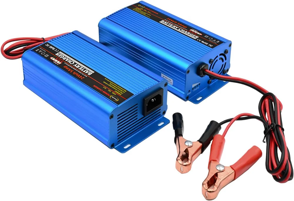 ✅【Fast charging】: The 24V 5A battery charger comes with a rechargeable AC extension cable and supports AC100-240V input for worldwide use with a rechargeable AC cord C13 inlet. Automatic smart charger can charge batteries with a capacity of 7-120Ah and provides a constant current output for faster charging, with an output amperage of 5A. ✅【Safe and reliable】: The 24V charger is designed and manufactured in strict accordance with UL/CE/CCC safety standards and prescribed procedures for pulse charger maintainers. Intelligent 4-step charging program (Initialization, Bulk Charge, Float Mode) driven by the newest MCU allows for optimization of battery power .This charger has ultra-low standby power consumption and complies with global five-level energy efficiency standards. ✅【Multiple safety protections】: The 24 Volt battery charger has a fully automatic 4-stage charging process controlled by a microcontroller. The intelligent battery charger for cars provides short circuit protection to ensure that the battery is fully charged.It has protections against short circuit, overvoltage, overcurrent, overload, and reverse polarity. ✅【Unique design】The smart battery charger is made of high-density aluminum with an I/O switch.The 24V trickle charger has 4 speed gears automatically adjusted by power load, effectively reducing noise and heat dissipation. 24V battery maintainer has an IP65 waterproof rating for protection, and an internal large fan to provide excellent heat dissipation. The pulse charger maintainer also features one red LED power indicator light and 4 green LED charging progress indicator lights. ✅【Wide range of applications】: The Automatic Battery Charger with Alligator Clips is suitable for charging all SLA / VRLA / Flooded (Wet) / Calcium type deep cycle / GEL / AGM lead-acid batteries , including those used in wheelchairs, electric carts, electric forklifts, self-balancing unicycles, vehicle,motorcycle and trucks. ✅【Unocho battery charger】:The Unocho 24V battery trickle charger is comes with worry-free return and exchange services as well as 24-hour customer support, eliminating all your worries about this car battery charger