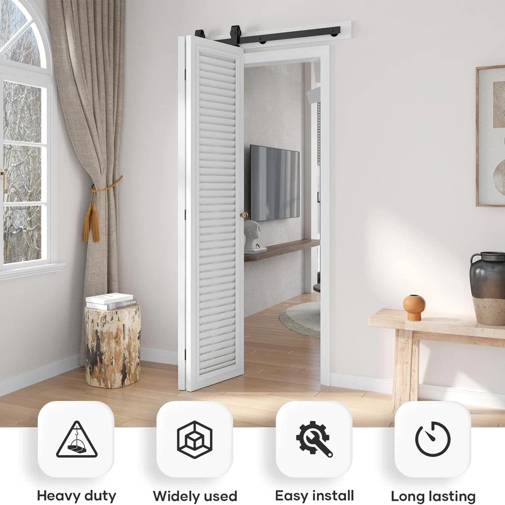 Store category Sign Up Now ! You may also like Product Description Bullet Points: Enhanced Safety: With a smart and safe design, our Barn Door Hardware provides a bestly wide range of application. It folds into any home decor seamlessly, saving space while ensuring child safety. Long-Lasting Performance: Featuring wear-resistant nylon wheels rollers and robust carbon steel, our barn door hardware promises long-lasting strength and a smooth sliding motion. Time-Saving Convenience: Our barn door hardware kit ensures an easy and intuitive setup that saves time and effort. With detailed instructions and pictures, installation is a breeze. Total width allows for an effortless bi-fold sliding door setup. Suit Your Unique Style: Get the perfect solution for any barn door with our hardware set. Accommodates 35mm-45mm thickness and suits all preferences. All accessories included, door not supplied. Widely Applied: Achieve an innovative living experience by installing this barn door hardware, perfectly suited for your living rooms, study rooms, and bedrooms. The soundless and effortless glide enables an easy flow of movement while effortlessly supporting heavyweights. Upgrade the look of your space with our Bi-Fold Sliding Barn Door Kit. It's perfect for a wide range of applications and can be customized to your preferences. The nylon wheels rollers ensure smooth and silent operation, while the load-bearing capacity can accommodate even the heaviest doors. Specification: Name: Barn Door Hardware Colour: Black Material: Carbon steel Track Size: about 24 inches/61cm Track Splicing Method: 2 pieces Scope of Application: Door panel thickness 0.5-50mm Packing List: 2* Track 2* Scroll Wheel 2* Roller Swivel Stand 1* Roller Holder 3* Spacers 3* Hinge 1* Floor Rail 1* Sealing Strip 1* Screw Pack 1* Instruction Manual 3* Pipe Clamp 35mm 3* Wood Screws M8*90 4* External Hexagonal Machine Wire M10*60 4* Cover M10 Notes: 1. Due to the different monitor and light effects, the actual color of the item might be slightly different from the color which is showed in the pictures. 2. Please forgive a slight measuring deviation due to manual measurement. 3. Door is not included. Payment Delivery details Terms of sales About us Feedback & DSRs Shipping 1. We only ship to United States 2. Delivery Time: Ship from US via FedEx Ground or FedEx Home Delivery 1-5 business days with tracking number. 3. We ship the item out in 24-72 hours after received the payment.(Mon-Fri) 4. If you want to chose another address, please leave us a message on ebay.Please check your shipping address carefully before checkout,it can't be changed if order completed. Seriously promise:Refund or resend will be offered if item still not arrive in 7-10 business days. Just send us an email,we will give you a satisfied solution as soon as possible. Payment 1. We accept PayPal only. 2. After you have won the auction, an email will be sent to your eBay registered email address. 3. If you are paying through Paypal using eCheck, note that your item can be shipped only after eCheck has cleared. 4. All payments are expected within 7 days after the last winning auction is closed. A non-payment dispute will be opened if full payment is not received. 5. We only ship the item to your Paypal address for fast and accurate shipment. If you want to change the address, please add a note when you make the payment. after you have paid. Return & Warranty 1. For your best shopping experience in our store and saving your time .Please Do Not click "Return this item" except that you just don't need it any more.Because no return request is our company's Service. Please click "Contact seller" via Ebay Message(protected by Ebay),that is the fastest way to solve any problem for you.You will get the replacement or refund through the communication between us. 2. We fully guarantee Customers benefit within 14 business days if item DOA (damage on arrival), and please contact us within 30 days from the delivery date to exchange or refund.No need return just contact us. Refunds will be given via paypal only. 3. For malfunction products under warranty period, please contact our customer service via EBay Message. Replacements will be sent once after we have a fully communication.No need return the original one after we have fully communication. 4. The buyer has an obligation to cooperate with seller to verify defective item. If you want return, please double check if the item does not work or you just don't need it any more. If the item defective or no work, no need return. 5. All NON-Seller Mistake returns for refund are subject to 20% re-stocking fee and buyer should pay for the return shipping fee and handle fee.(For example,you brought wrong item or cancelled order after item was shipped). 6. A Merchandise Authorization Number (RMA#) is required for all need returned packages(After we have a fully communication). Please contact us to get an "RMA" number before you ship your items back to us. Items returned without an "RMA" number would be ignored or delayed in processing.Returns/Exchanges will not be accepted unless authorization has been issued by our customer service. 7. All return products should be in original package with all accessories included. Contact US Dear buyers, Welcome to our store! Your satisfaction is our top goal,we appreciate your business. 1. If you have any questions, please feel free to contact with us by ebay Message during our business hours ( 9:30a.m. to 5:30 p.m.), or email us through eBay, we will try our best to help you to resolve it. 2. If you are satisfied with our service, please rate the details of the transaction (Detailed Seller Ratings) on eBay and We will do the same for you. 3. If you are not satisfied with the product or service ,please contact us before leave negative or natural feedback, we will try our best to solve the issue to your satisfaction, thanks. Thanks for your patronizing, good luck !!