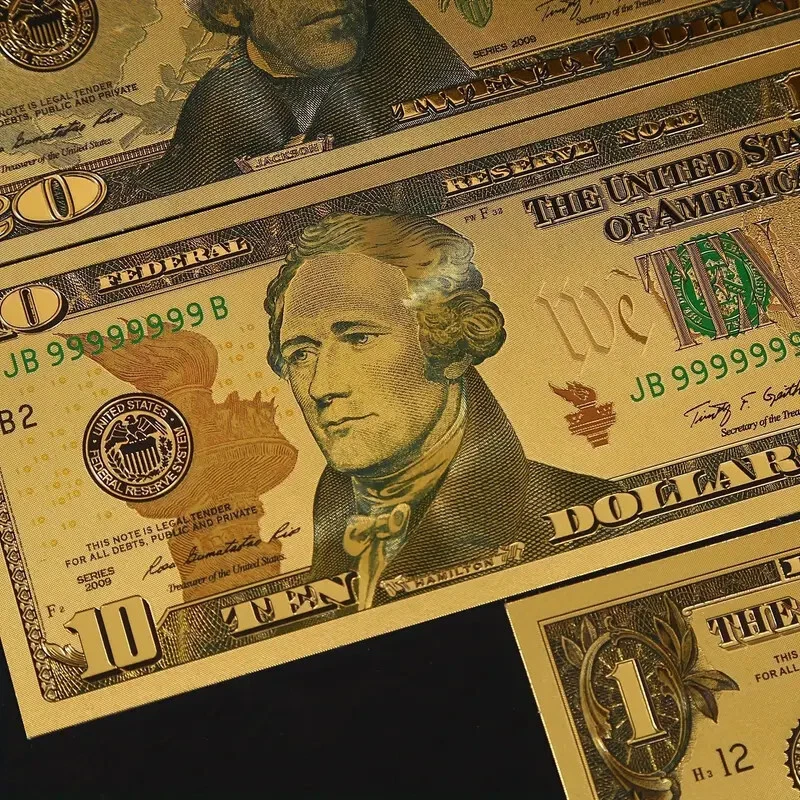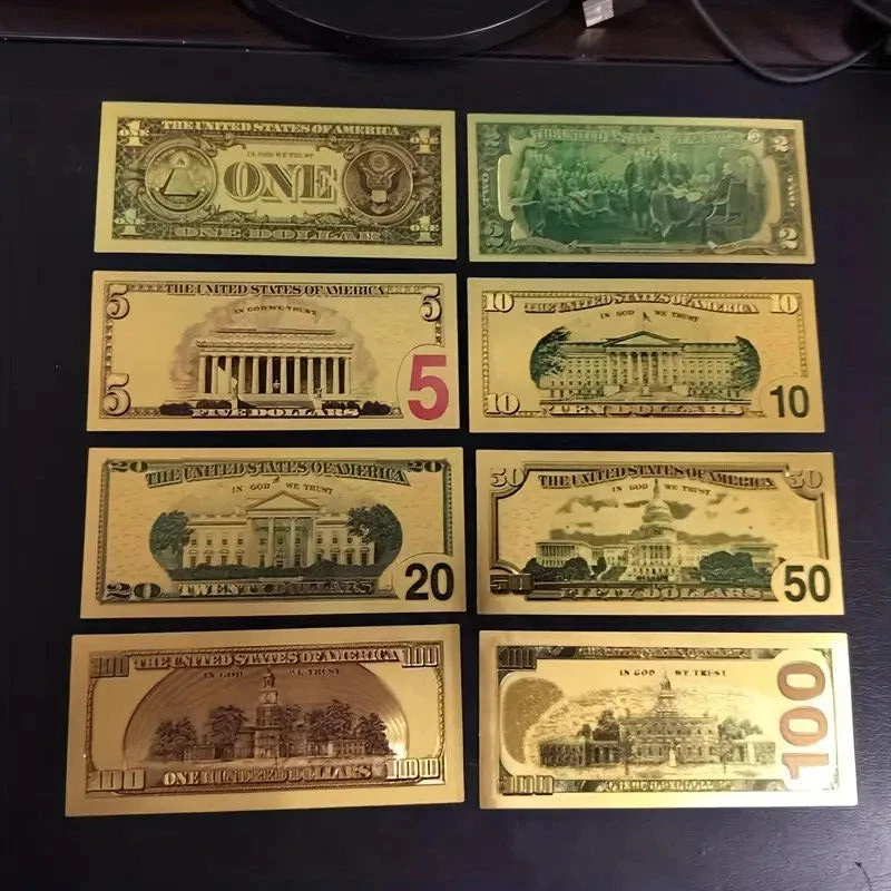 Description Gold foil Seven (8) bills $1 to $100. Shipping Each additional item ships FREE. In ter national bidders are welcome and pay the actual shipping cost.