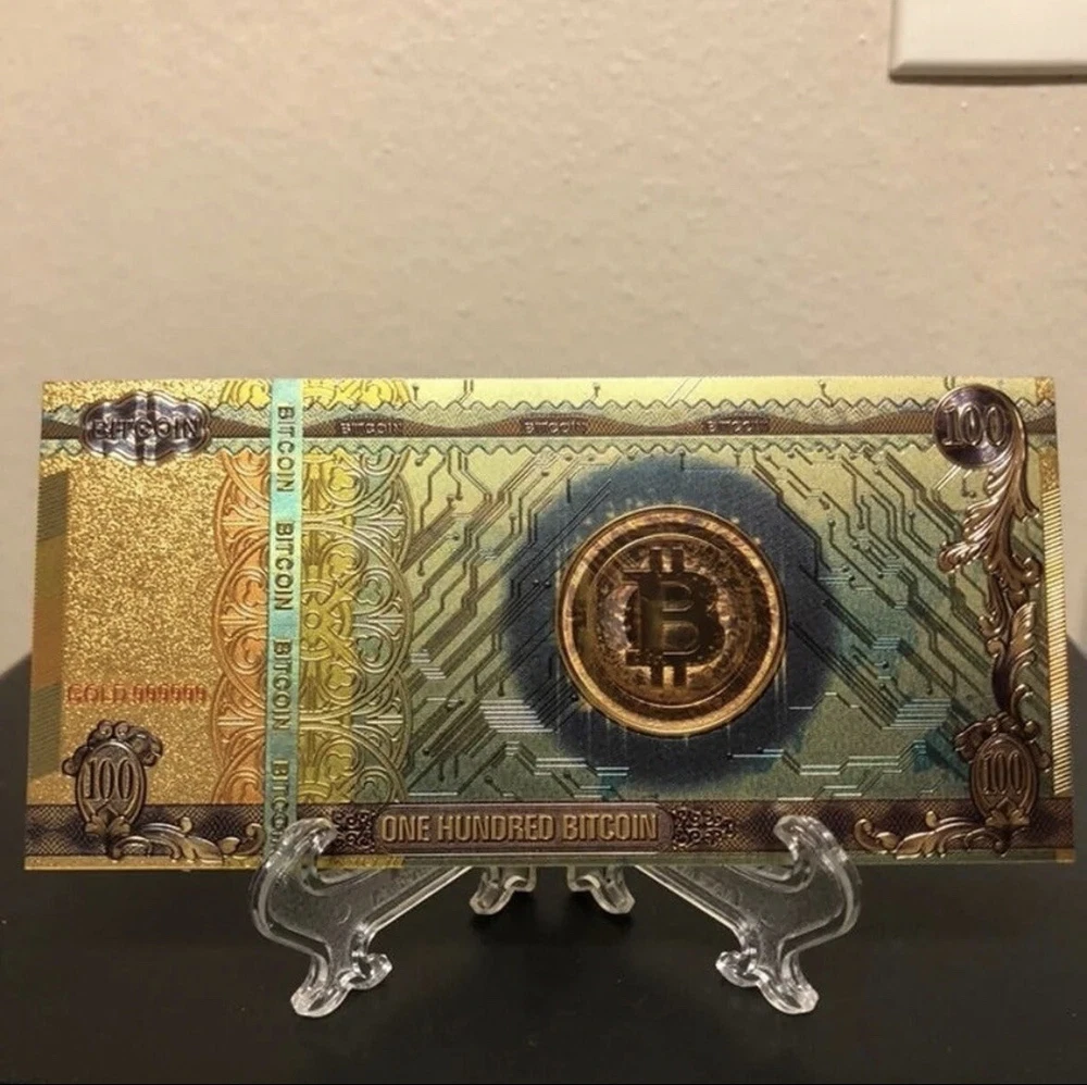 24k Gold Plated 100 Bitcoin (Cryptocurrency) Banknote (Cryptocurrency bundle available) (Many other series/characters available!) (Not real currency) Amazing quality! Pictures do not do these justice, what you see in person is amazing! So much detail and shine in each one. You will be very happy with what you see. Great gift for any collector or cryptocurrency fan/investor! Unique gift. Great stocking stuffer. Perfect for birthdays/baby showers/Christmas/Graduation and more! View my page for many more options and tons of characters and styles. Will bundle! Offers welcome. Most orders ship same or next day!