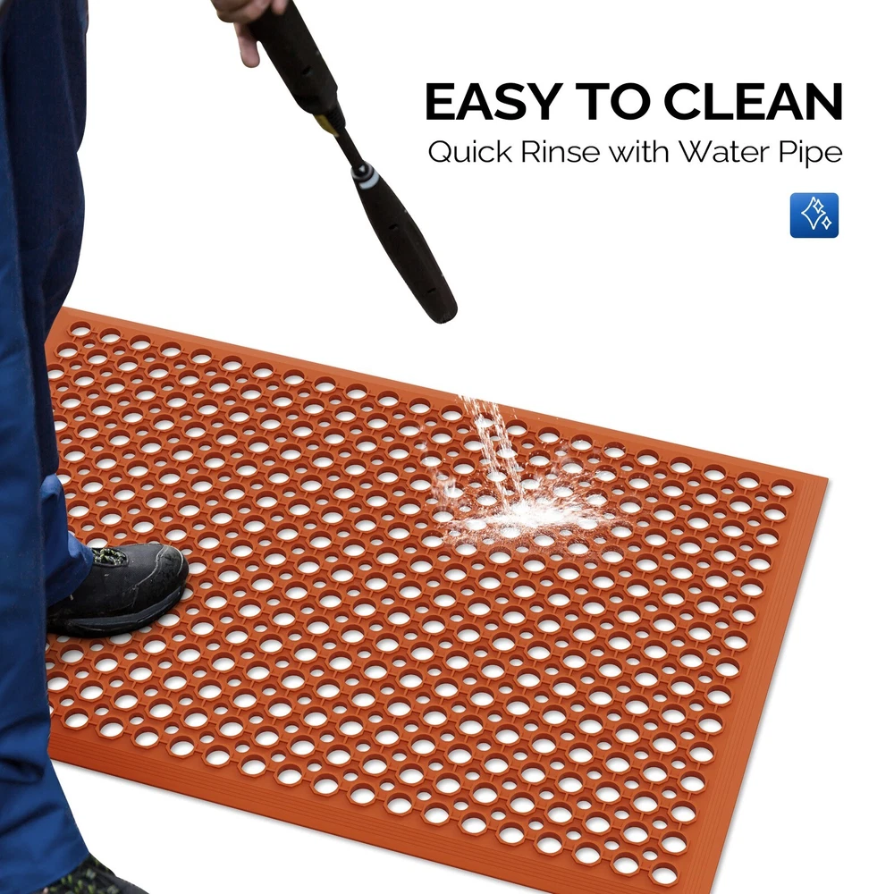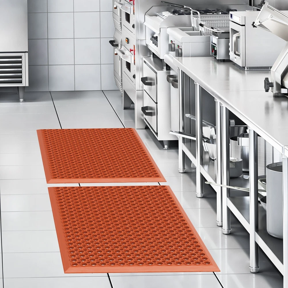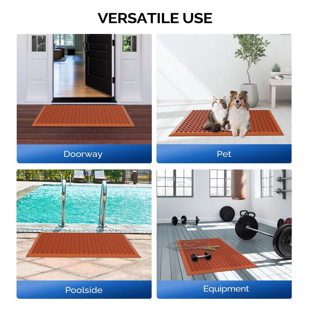Introductions: FCH rubber floor mats, with their distinctive red appearance and high-quality rubber material, have become one of the most popular products on the market. This floor mat measures 6191.41.2cm and is designed for ground environments that require anti-slip, wear-resistant and comfortable surfaces. Its bright red color is not only beautiful, but also visually adds vitality and warning effects, ensuring that users can enjoy a safe and worry-free experience in various activities. FCH rubber floor mats are widely used in kindergartens, schools, gyms, and various industrial and commercial places with their excellent performance and practical design, becoming an ideal choice for improving environmental quality and ensuring user safety. Features: 1.Excellent material: Made of high-quality rubber material, this material has excellent wear resistance, pressure resistance and elasticity, and can withstand long-term use and frequent trampling without being easily damaged. 2.Bright red: The surface of the floor mat is covered with eye-catching red, which not only adds vitality and color to the environment, but also has a certain visual warning effect, improving the safety of the place of use. 3.Accurate size: The precise size design of 61 x 91.4 x 1.2cm makes this floor mat flexible to adapt to various layout requirements, whether it is a large-scale laying or a small-scale embellishment, it can achieve the ideal effect. 4.Anti-slip design: The surface of the floor mat may be specially treated to increase the anti-slip performance, effectively preventing users from slipping during use and causing accidents, and improving safety. 5.Shock absorption and buffering: The softness and elasticity of the rubber material provide a good shock absorption and buffering effect for the floor mat, which can reduce the impact on joints and bones during exercise or walking, and protect the health of users. Specifications: 1.Packing size (cm):14.00*14.00*63.00 2.Packing weight (kg):4.2 3.Net size (cm):61.00*91.40*1.20 4.Net weight(kg):3.95