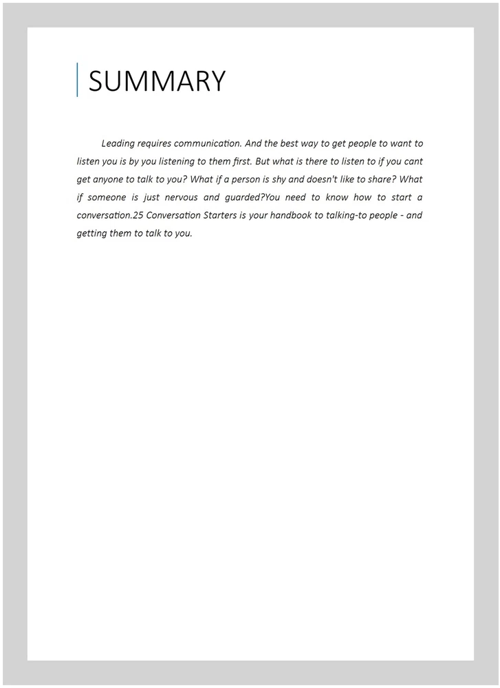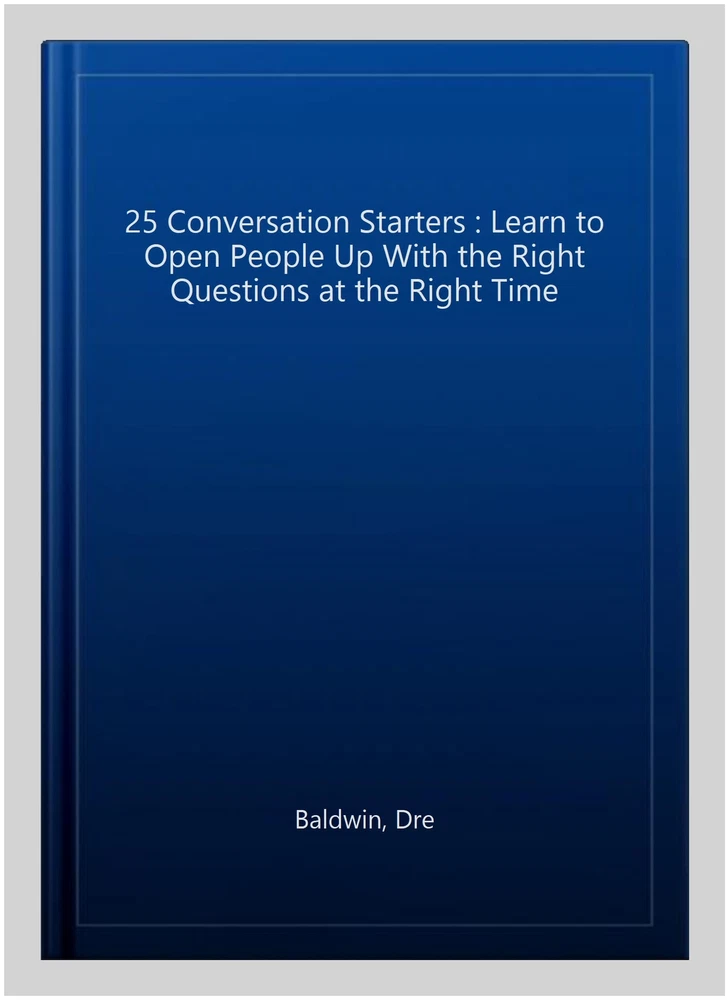 25 Conversation Starters : Learn to Open People Up With the Right Questions at the Right Time, Paperback by Baldwin, Dre, ISBN 1539071901, ISBN-13 9781539071907, Like New Used, Free shipping in the US Leading requires communication. And the best way to get people to want to listen you is by you listening to them first. But what is there to listen to if you cant get anyone to talk to you? What if a person is shy and doesn't like to share? What if someone is just nervous and guarded?You need to know how to start a Conversation Starters is your handbook to talking-to people - and getting them to talk to you.