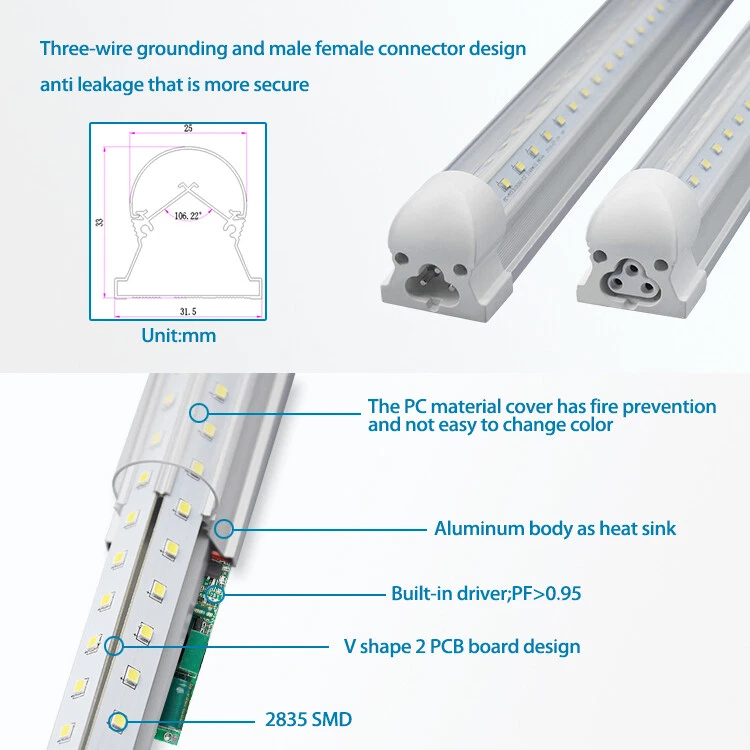 Features: special contractor &distributor pricing available&3years no hassle warranty. Specifications: Length: 4FT 36W Material:Aluminum Alloy+PC Color Temperature:6500K Lumens:4320Lm Power factor:>0.90 Base Type:Integrated (With Bracket) CRI: > 80 PC Cover:Clear Cover Voltage:AC 85-265V Light source: SMD2835 Operation temperature:-20C to 50C Light Distribution:270 Degree Frequency:60Hz to 50Hz Life time:>50,000 hrs Warranty:3 Years Applications: Widely used in supermarkets, offices, convenience stores, gas stations, warehouse, shops, hotels, motels etc. Includes: 25pcs led tube lights 25Pack 4 Foot LED Tube Light Bulbs 4FT 36W T8 Integrated LED Shop Lights Fixture Features: special contractor &distributor pricing available&3years no hassle warranty. Specifications: Length: 4FT 36W Material:Aluminum Alloy+PC Color Temperature:6000K Lumens:4320Lm Power factor:>0.90 Base Type:Integrated (With Bracket) CRI: > 80 PC Cover:Clear Cover Voltage:AC 85-265V Light source: SMD2835 Operation temperature:-20C to 50C Light Distribution:270 Degree Frequency:60Hz to 50Hz Life time:>50,000 hrs Warranty:3 Years Includes: 25pcs led tube lights Applications: Widely used in supermarkets, offices, convenience stores, gas stations, warehouse, shops, hotels, motels etc. Benefits: LED lighting uses significantly fewer Watts (W) than conventional lighting. But that's not the only Savings you enjoy when selecting LED lighting. Conventional bulbs have a shorter operating lifetime compared to LED lighting. If you are using conventional bulbs you will be purchasing up to four times as many bulbs or fixtures compared to a single LED replacement with a long operating lifetime. Buying and using conventional bulbs and fixtures also means that you incur three times more maintenance as well as replacement costs compared to LED lighting. Just think of the maintenance costs incurred getting to those hard to reach locations. LED lighting is also free of environmentally harmful Mercury as well as Halogen chemicals. Payment Delivery details Terms of sales About us Contact us Payment 1.We only accept payment by Paypal. 2.If you pay by paypal with E-check, it normally takes 5 business days to clear, Once your E-check payment clears, your item will be dispatched within 1-2 working days. 3.Payment must be received within 7 days after the auction ended. Delivery details 1.All orders ship within 24 hours after receiving your payment. 2. Fedex shipping from our US warehouse, takes about 3-5business days for delivery. 3.Please verify your address during checkout. We are not responsible for any wrong or undeliverable addresses. Terms of sales We strive to ensure 100% satisfaction for each and every one of our customers. we offer a 30-day 100% money-back guarantee on all eBay orders. If your item isn't just as you wished, simply send it back to us and we'll refund or replace your item. Please note that all returns must be authorized by our Customer Service department. please contact us though message first if you have any problem . About us 1.Our working time is Monday to Friday. 9.30-18.30 BeiJing time am. 2.We will reply you within 24 hours(1work days). 3.We are always been trying to provide best service and reliable products for every customer. Contact us 1. If you are dissatisfied for any reason, please do not be quick to leave negative/neutral feedback. We work hard to make sure EVERY CUSTOMER 100% SATISFIED and resolve any problem for you and always leave positive feedback to all our customers. 2. If you are satisfied with the product you received,please leave us positive feedback and 5 scores DSR. Country/Region of Manufacture China Type LED Features V Shaped MPN Does not apply Bulb Shape Code T8 Brand Unbranded Bulb Wattage 36W Lumens 4320lm Manufacturer Warranty 3 Year Warranty Light Color Cool White Bulb Shape T8 Integrate Tube Bulb Life Hours 50,000hours Output Voltage 85-277V Energy Star A+++ Material Aluminum LED Chip Code SMD2835 Lighting Technology LED Finish Clear Indoor/Outdoor Indoor Voltage 110 V Color Temperature 6000K EC Range A+++ - G