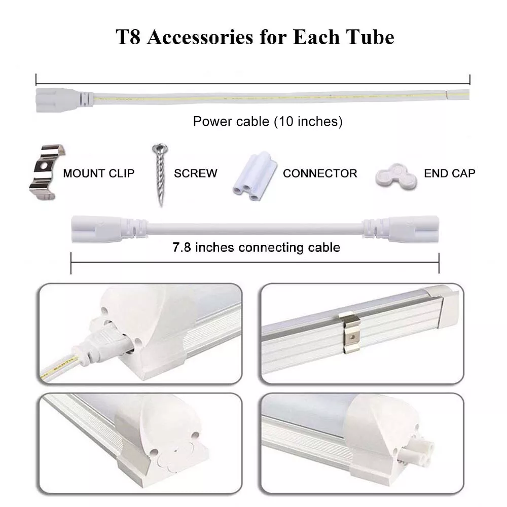 25 Pack T8 8FT LED Tube Light Bulbs 72W 6500K 8 Foot LED Shop Light Fixture Item Description: ● ENERGY SAVING - Reduce your energy usage and save up to 60% on your electricity bill when you use 72W 9360lumens LED tube lights as 150W fluorescent replacements. ● LONG LASTING - JESLED LED tubes have an outstanding life rating of 50,000+ hours and are composed of durable epoxy resin and aluminum alloy. These tubes can last 20+ years, eliminating the need to frequently replace your ceiling lighting. ● BRIGHTER & SAFER - JESLED LED tubes are brighter and safer: illuminate your space with 9360 lumens, and rest assured knowing our LED tubes are shatterproof and emit no UV or IR radiation. ● EASY to INSTALL - This integrated fixture, plug-and-play. You can install it anywhere on the wall and the ceiling conveniently ● LINKABLE - This 8FT LED Light Fixture can be connected up to one by one with seamless connectors and cords. Please don't put more than 6 pieces in one row. ● WARRANTY - JESLED’s hassle-free UNLIMITED 3 Year Warranty is unrivaled in the commercial lighting industry and covers all of our LED tubes. Contact our technical customer service team 24/7! 👉 If you have any questions(Such as shipping damage, shipping delays, product problems, etc), please email us. We will solve the problem for you as soon as possible, to give you a satisfactory way to solve the problem.Thank you for your understanding and patience! Features: Brand: JESLED Length: 8 FT(93.9'') Power: 72W Lumen: 9360 Lumens LEDs: 384PCS SMD 2835 Epistar LED Chips Beam Angle: 270 degrees Input Voltage: AC 100~305V 50/60Hz Color Temperature: 6000K- 6500K Cool White Working temperature: -22°F ~ +131°F Storage temperature: -31°F ~ +176°F Color Rendering Index(CRI): 85 IP Rating: IP54 Power Factor: >0.95 Driver Efficiency: >90% Life Span: 50000 Hours Lamp Net Weight: 2 lbs Material: High Strength Aluminum + Plastic Warranty: 3 years Package included: 25 x 8FT Integrated Double Row LED Tube Lights 25 x Installing cord(10 inches) 50 x Mount clips 50 x Screws 25 x Small Connectors 20 x Connector cords(7.8 inches) 25 x End caps 1 x User manual USING WARNING: Please do not conncet more than 6 lights in one power supply. Applicable: Cooler Door, Halls, warehouses, parking lots, workshops, stores, supermarkets, showrooms, etc. Manufacturer direct sales: JESLED - offers 3 years unlimited warranty means we’ve got you covered! Contact us for an easy and fast replacement. JESLED , devoted to led lighting products manufacturing and developing since 2009, we focused on develop and produce T5/T8/T9 led tube, led corn bulb, led wall pack, led string light, etc. All products are widely used in commercial, industrial, residential lighting. We are able to customize LED light fixtures for you, with high quality and excellent service, we are greatly appreciated in a variety of different markets throughout the world. Payment Delivery details Terms of sales About us Contact us Payment We accept PayPal, Apple Pay, Google Pay, Credit Card etc payment. Delivery details We have East warehouse and West one in the United States. We will choose the nearest warehouse to ship item according to your delivery address. Maybe Shipping by FEDEX, UPS, USPS, it will be delivered about 2 - 6 days Please read payment terms/methods and shipping fees before purchase. Terms of sales All of our products are one hundred percent brand new. Please inspect your order upon arrival for missing/incorrect items. If have, Please email us to notify us of any missing/incorrect item first. Item may be return within the return period. It must be returned in its original and unused condition. Goods must also be in its original box and packing. Do not dispose of the box or any packaging materials until you are satisfied with the product. We will process your order within 24 hours. About us JESLED was occupied in LED lighting since 2009, including indoor and outdoor LED lighting. The objective of JESLED is to offer superior quality LED lights to our clients, and enjoy a bright and comfortable life. We are able to customize HIGH-QUALITY LED light fixtures for you, you can consult me on eBay if you need. Contact us Our Office Hours Are : Start from 9:00 a.m. to 6:00 p.m. (GMT+8) of Monday to Friday. Closed on Weekend and public holidays
