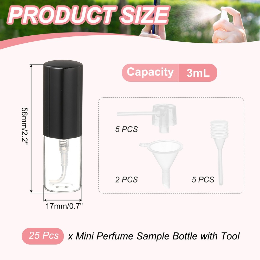Document Description:Material: The travel bottles are made of durable and refillable Glass and PP material, which is not easily broken and deformed and can be reused after washing.Leakproof Design: The aluminized nozzle and spring button make it convenient for you to use, providing even lotion at every press. The screw cap features a screw-on design for easy pouring out and leak-proof performance.How to Refill: Twist off the cap, pour the liquid into the bottle, and close the cap, making it easy to refill the perfume bottles with your preferred fragrance. Then Press the pump to squeeze out the solution.Wide Application: The mini perfume sample bottle can be used for travel, bathroom, kitchen, and business trips. It is suitable for dispensing essential oils, body mist, perfumes, etc.SpecificationMaterial: Glass and PPColor: Clear/GoldCapacity: 3mlOverall Size: 56 x 17 mm/ 2.2 x 1 Inch(H*OD)Packing Content: 25 Pcs x Mini Perfume Sample Bottle with ToolColor: Clear/BlackCapacity: 3mlOverall Size: 56 x 17 mm/2.2 x 0.7 inches(H*OD)Packing Content: 25 Pcs x Mini Perfume Sample Bottle with Tool 25 Pcs 3ml Fine Mist Bottles Refillable Empty Mini Spray Bottles (Clear/Black) Description: Material: The travel bottles are made of durable and refillable Glass and PP material, which is not easily broken and deformed and can be reused after washing. Leakproof Design: The aluminized nozzle and spring button make it convenient for you to use, providing even lotion at every press. The screw cap features a screw-on design for easy pouring out and leak-proof performance. How to Refill: Twist off the cap, pour the liquid into the bottle, and close the cap, making it easy to refill the perfume bottles with your preferred fragrance. Then Press the pump to squeeze out the solution. Wide Application: The mini perfume sample bottle can be used for travel, bathroom, kitchen, and business trips. It is suitable for dispensing essential oils, body mist, perfumes, etc. Specification Material: Glass and PP Color: Clear/Gold Capacity: 3ml Overall Size: 56 x 17 mm/ 2.2 x 1 Inch(H*OD) Packing Content: 25 Pcs x Mini Perfume Sample Bottle with Tool Color: Clear/Black Capacity: 3ml Overall Size: 56 x 17 mm/2.2 x 0.7 inches(H*OD) Packing Content: 25 Pcs x Mini Perfume Sample Bottle with Tool Hot Item Payment 1.We accept eBay payment . 2.Payment must be received within 7 business days of auction closing. Shipping 1.We ship to your eBay or Paypal address. Please make sure your eBay and Paypal address is correct before you pay. 2.Items will be shipped within 1-3 business day when we received payment. 3.Delivery time depends on destination and other factors. Description Policy 25 Pcs 3ml Fine Mist Bottles Refillable Empty Mini Spray Bottles (Clear/Black) Description: Material: The travel bottles are made of durable and refillable Glass and PP material, which is not easily broken and deformed and can be reused after washing. Leakproof Design: The aluminized nozzle and spring button make it convenient for you to use, providing even lotion at every press. The screw cap features a screw-on design for easy pouring out and leak-proof performance. How to Refill: Twist off the cap, pour the liquid into the bottle, and close the cap, making it easy to refill the perfume bottles with your preferred fragrance. Then Press the pump to squeeze out the solution. Wide Application: The mini perfume sample bottle can be used for travel, bathroom, kitchen, and business trips. It is suitable for dispensing essential oils, body mist, perfumes, etc. Specification Material: Glass and PP Color: Clear/Gold Capacity: 3ml Overall Size: 56 x 17 mm/ 2.2 x 1 Inch(H*OD) Packing Content: 25 Pcs x Mini Perfume Sample Bottle with Tool Color: Clear/Black Capacity: 3ml Overall Size: 56 x 17 mm/2.2 x 0.7 inches(H*OD) Packing Content: 25 Pcs x Mini Perfume Sample Bottle with Tool Hot Item Payment 1.We accept eBay payment . 2.Payment must be received within 7 business days of auction closing. Shipping 1.We ship to your eBay or Paypal address. Please make sure your eBay and Paypal address is correct before you pay. 2.Items will be shipped within 1-3 business day when we received payment. 3.Delivery time depends on destination and other factors.