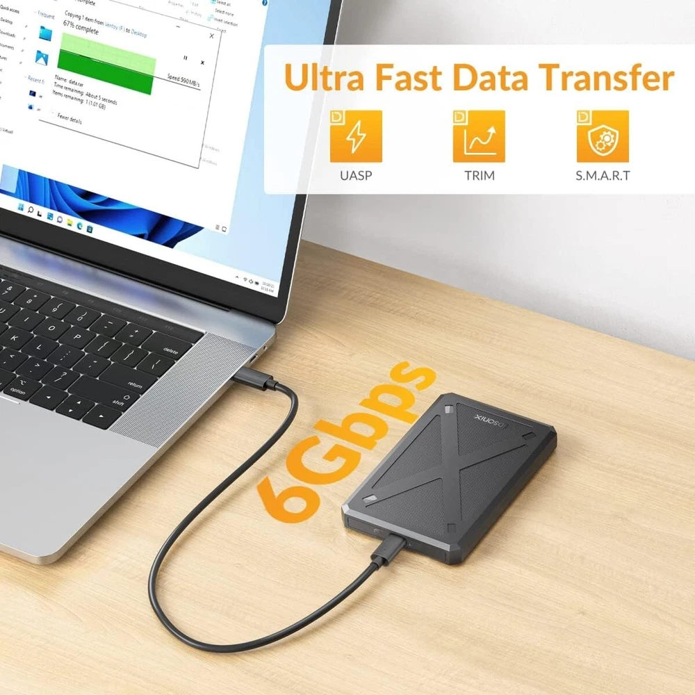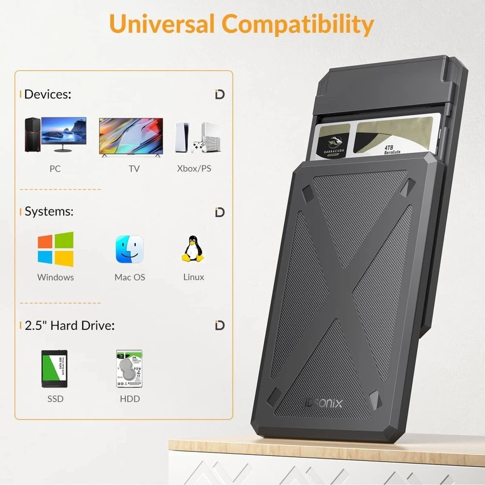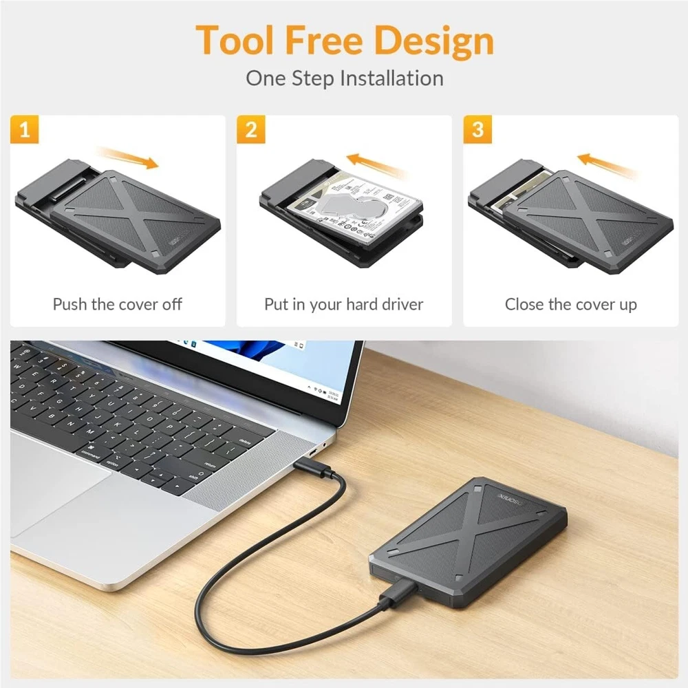 2.5 inch Hard Drive Enclosure, 6Gbps USB C 3.1 to SATA III Tool-Free for Samsung Product Description : 【Practical Hard Drive Enclosure】 2.5 inch external hard drive enclosure is designed for 7mm 9.5mm SATA SSD & HDD. Compatible with Western Digital, Toshiba, Samsung and most mobile devices such as TV, PS4/5, Xbox, PC, laptop etc.. 【Super Fast 6Gbps & UASP Protocol】 This 2.5 External HDD SDD Enclosure interface supports up to 6Gbps transfer rates and UASP accelerated transmission protocol, which will be 30% faster than traditional USB 3.0.(Both your devices need to support UASP ) Backward compatible with USB 2.0 or 1.1 ports. 【All-round Protection & Security】 2.5" hard drive enclosure is made of high-quality ABS plastic and built in a High-performance chip, which can provide over-current protection, over-voltage protection and overheating protection to ensure safety for your drivers and valuable data. The attached EVA foam pad can also protect your hard disks from shaking and crashing problems. 【Universal Compatibility】 This SATA to USB 3.1 drive enclosure support Windows / Mac / Linux and most operation platform. Compatible with Western Digital, Toshiba, Samsung, Kingston, Crucial, Hitachi, and more hard drivers. Designed for 2.5 inches 7mm /9.5mm SATA HDD & SSD up to 4TB. It can be quickly connected to your laptop PC TV, PS4/5 etc.. 【Easy to Use & Installation】 Tool Free and no drivers needed, simply plug and play. Just need seconds to push the cover off, put in the drive and close the cover up to use. Support hot-swapping and the LED indicator will show the working status. A detachable USB cable (USB C to USB C) makes it easy to connect or pack away. We are committed to your satisfaction. If you are not completely satisfied with our product, we offer a 100% money-back guarantee. Top-Notch USA Seller | S wift USPS/UPS delivery | Shipped within 1 Business Day | Quick Replies | Free Shipping | Prompt Communication Contact us We value open communication with our customers. Our team is committed to providing quick responses to any queries or concerns you may have regarding our products or your order. Please feel free to contact us on eBay's Internal Message System for any questions or concerns you may have. Our dedicated customer service team is committed to providing exceptional support and ensuring your shopping experience with us is nothing short of excellent. Customer Service We strive to offer the best quality products to our customers. Each item listed in our store undergoes rigorous quality checks to ensure customer satisfaction. If you have any problems, we are very glad to help you. Please message us directly through eBay for faster response. Your inquiry is important to us and we'll respond within 24 Hr.