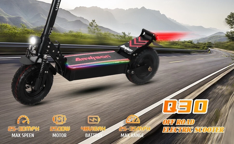 β‘ Q30 Electric Scooter - Balanced Performance & Smart Design π Efficient Power & Reliable Range 2500W High-Speed Motor (48V single drive) delivers 50-60 km/h top speed 48V 16AH Battery provides 45-60 km riding range per charge 25-35Β° Climbing Ability handles urban slopes with ease Dual Charging Ports for faster 6-8 hour recharge π‘οΈ Superior Comfort & Control Hybrid Suspension System: Hydraulic shock absorption (front) Spring shock absorption (rear) 11-Inch Off-Road Tires with vacuum design for smooth urban/light off-road riding Adjustable Bicycle Handlebar for personalized riding position π Advanced Safety Features Front & Rear Disc Brakes for reliable stopping power Integrated Lighting System: Bright tail light Running lights Turn signals Anti-Theft Key Lock for security β¨ Practical Design Elements Shiatsu Throttle with 3-speed acceleration modes Adjustable Fenders + Extensions for better splash protection Rear Handle for easy maneuvering Laser Marked Logo for premium branding π¦ Technical Specifications Weight: 35kg (lightweight yet durable) Load Capacity: Max: 120kg Recommended: β€80kg for optimal performance Packaging: Double-layer carton + pearl cotton protection Foldable Design for convenient storage Note: Product dimensions are hand-measured Actual colors may vary slightly from product images π The Q30 - Smart Urban Mobility Solution Perfect for daily commuters seeking: β Reliable performance β Comfortable ride β Practical features β Lightweight portability π Your Efficient Daily Companion - Available Now!