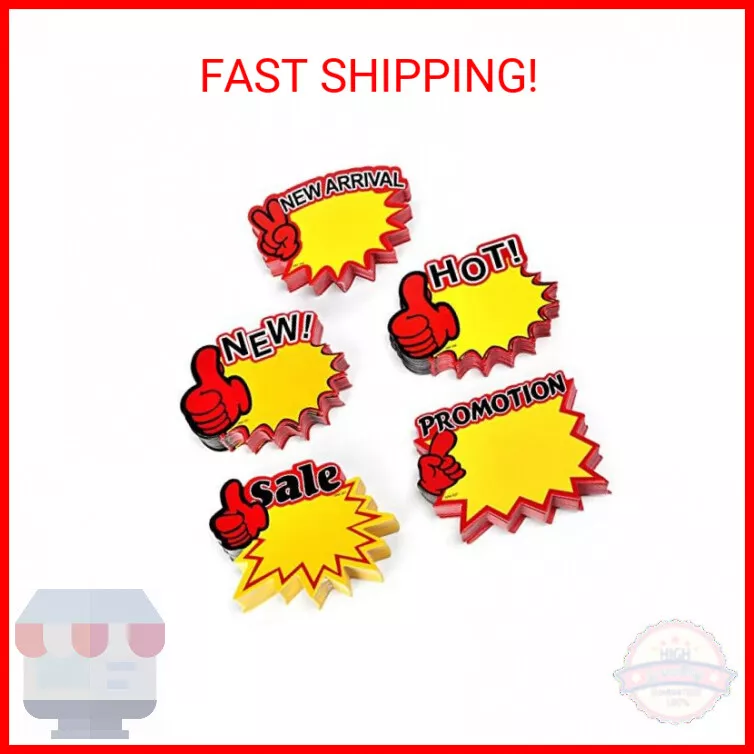 250Pieces English Label Tags Burst Signs Star for Retail, Mini Size 5 Blank Star Shape Display Tags to Boost Sales, Garage Sale Supplies Sign,Yard Sale Supplies for Sale Sign - [Large quantity]: you will receive 250 pieces sales burst signs, including 5 kinds of fluorescent signs , each kind for 50 pieces,each size is about 4inch × 3inch - [English label tags]: with eye-catching burst shape and funny finger shaped signs, these sales tags are printed with English capitalized sales letters to attract customers' attention and guide them to your products; - [Where to use]: blank cards ready for your messages, you can use it as label paper for shopping malls and stores, supermarket promotional display card, garage sale, school carnivals, fund-raising activities or just a memo or note for friends, colleagues - [Easy to use]: these sales burst signs can be pasted beside the product to attract customers' attention, mark the price on the price tag according to specific products, an affordable way to advertise your product and improve your sales volume; - [Affordable]:This is a very affordable way to boost sales and attract more customers, It's a great help to store sales Payments We accept the following payment methods PayPal Support Our dedicated customer support team is here to assist you from 9AM to 5PM Monday through Friday, excluding public holidays. Should you reach out to us and not recieve an immediate response, it's likely due to a higher-than-usual volume of inquires. We want to reassure you that your concerns are important to us, and we're working dilligently to get back to you. Expect a response by the next business day at the latest. Your understanding and patience are greatly valued as we strive to provide you with the best support possible! Shipping All orders are processed within 5 business days. Shipping estimates may be shown on this listing by eBay, and these are often not an accurate reflection of our shipping times. If we are experiencing a high volume of orders, shipments may be delayed by a few days. Please allow additional days in transit for delivery. If there will be a significant delay in shipment of your order, we will contact you via message. Shipping rates & delivery estimates Shipping is often free, but if charges for your order apply they will be calculated and displayed at checkout.