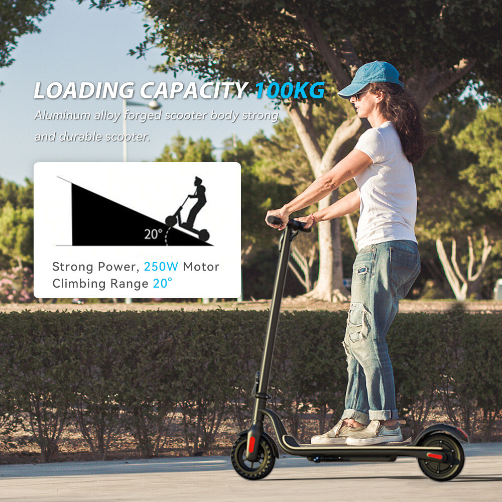 NOTE:The appearance of the product you receive may vary slightly from the image shown due to differing production batches! Main features: LONG RANGE BATTERY LIFE - Powerful 250W motor and 5.2 Ah/36V lithium battery pack that supports a speed of up to 15 Mph with a range up to 7 Miles. Updated large-capacity battery life, designed for commuters and longer distances. 8.0" HONEYCOMB & SOLID TIRES - Shock-absorbing rubber tires offer a smooth ride even over bumpy surfaces. PORTABLE FOLDING DESIGN - Electric scooter can be folded easily in 3 seconds with quick folding latch for easy carrying and storage. BATTERY INDICATOR AND LIGHTS - Battery indicator keeps to track battery life. Ultra bright LED headlight and taillight. Fast recharging about 5 hours. GEAR SHIFT SETTING - 1st gear for a 7 Mph comfortable ride or 3rd gear to get the 15 Mph fast experience. Extremely fun to ride and end boring commutes. Specification: Brand: Megawheels Model: S10 Dimension: Unfolding 105 x 43 x 118 cm; Folding: 105 x 43 x 48 cm Net Weight: 11.9kg Color: Black Frame Material: Aluminium Tires: 8.0" Honeycomb Front Tire & Solid Rear Tire Max Load: 100kg Max speed: 25KM/h Speed level: Gear 1--Max 10km/h ; Gear 2--Max 20km/h; Gear 3--Max 25km/h Mileage: 8-12km Grade Ability: 20 degree slope Working Temperature: -15°C-50°C Storage Temperature: -20°C-25°C Mode Type of Motor: Brushless hub motor Battery Type: High quality lithium battery Battery Capacitiy: 5.2 Ah Battery Voltage: 36V Charger Input Voltage: 100V-240V Charger Frequent: 50Hz/60Hz Charging time: 4 hours Package Contents: 1 * Folding Electric Scooter 1 * Battery Charger 1 * User's Manual Riding Skills: -Put your foot in the front of the scooter and the other foot on the floor before riding. -Make sure that the riding route is smooth. -Slide forward with the food standing on the floor before starting (like riding the scooter without power). -Immediately press the acceleration button and lean forward to avoid falling over backward due to inertia, so that the electric scooter will enter the working status. -Avoid pressing the handle with your body in the acceleration and deceleration process. Put one foot ahead and the other behind (like on the sliding plate/surfboard, put one foot ahead and the other behind by 70-90 for better comfort). -Turning – The turning principle of the electric scooter is the same with that of surfboard/sliding plate/skis. The handle shall be balanced with the body. Observe and make sure that turning is safe before turning. Tips: Before riding the scooter, please put one foot on the scooter deck and the other foot on floor and push the scooter forward by kicking the floor for some distance, in this way, the scooter will get some impulse to run forward. Note: Our products have been certified under UL2272 safety standards.