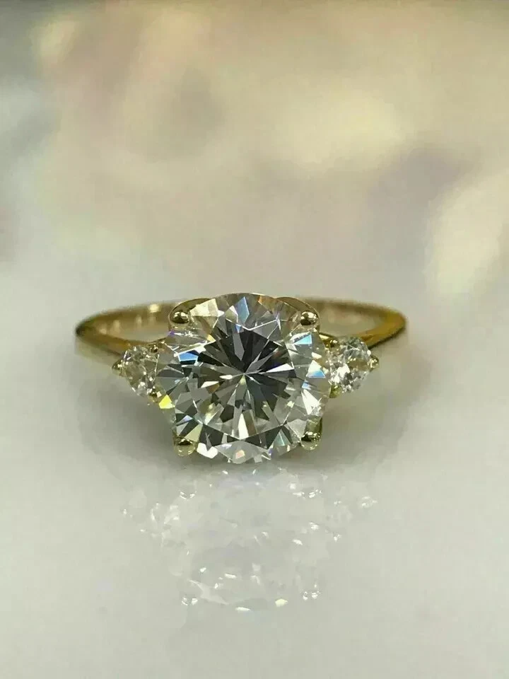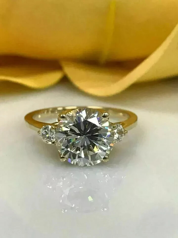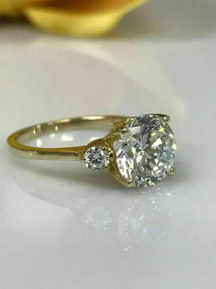 Elevate your special moments with the exquisite 2.5Ct Round Cut Lab Created Diamond Women's Wedding Ring, beautifully set in 14K Yellow Gold Plated sterling silver. The ring features a stunning round white lab-created diamond with a total carat weight of 1Ct, boasting a clarity grade of VVS1 and a prong setting that ensures secure placement. With a variety of ring sizes available, this piece is crafted to fit any preference, ensuring a comfortable and snug fit for daily wear or special occasions. The radiant beauty of the main stone is complemented by a solid gold-plated band, embodying a perfect balance of elegance and durability. The ring is a blend of both modern and classic design, making it a versatile choice for anniversaries, engagements, or simply as a symbol of love. Personalization options are available, allowing for a truly unique touch to this timeless piece.