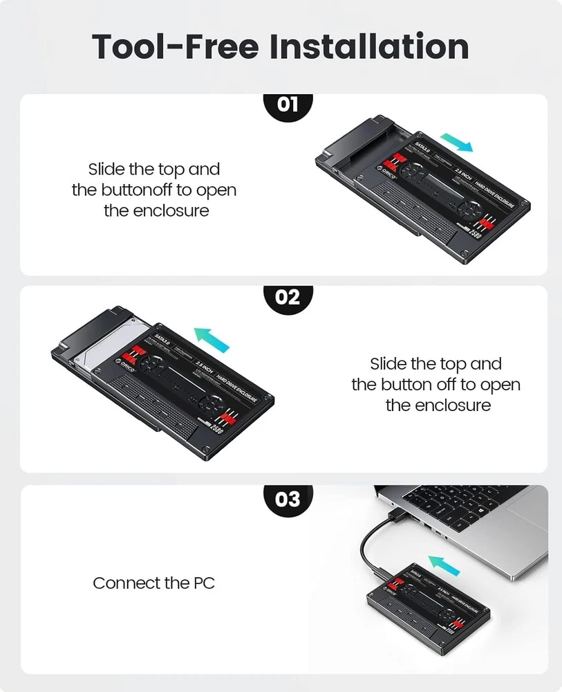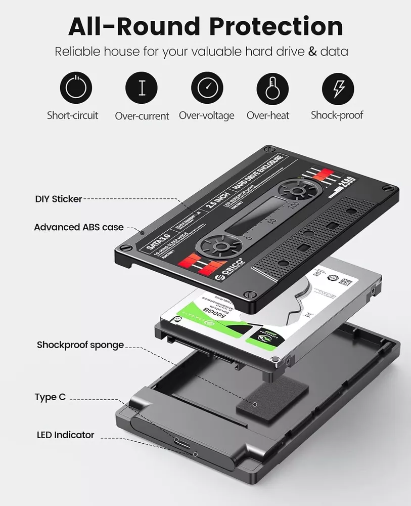 2.5Inch Hard Drive Enclosure USB C to SATA III External Case Max 6TB for Samsung Product Description : Retro Hard Drive Enclosure: The 2.5 external sata hard drive enclosure with the differ vintage tape which can DIY computer drive enclosure by self and convenient to distinguish your data. The sata hdd enclosure is suitable as a gift with nostalgic and exquisite appearance 6Gbps UASP Fast Speed: The 2.5 hard drive enclosure is designed with SATA to USB C protocol with the maximum transfer rate can reach up to 6Gbps, at the same time, the external external hdd enclosure usb c can support UASP accelerated transmission protocol to greatly improved the storage or backup efficiency of the devices LED Indicator: Non tool-free with the 2.5 hdd enclosure, you can easily install and remove the hdd/ssd in 3 seconds and hot swapping supported. 10 minutes auto sleep mode after no operation. And the blue LED indicator can helps you to monitor the working status of the hard drive, easy work easy life Sponge to shockproof: This usb C hard drive enclosure adopts ABS plastic shell, it's impact resistance, heat resistance. Built-in shockproof cotton, keep stable connection of your hard disk and better protective Widely Compatibility: The 2.5 sata to usb external hard drive enclosure can support the 2.5 inch sata port 7mm 9.5mm HDD/SSD. Compatible with Mac OS, Linux and Windows system Max 6TB capacity can helps to storage the music, movies, photos and so on. The 2.5 usb drive enclosure also compatible with PC, TV, PS4, Xbox and other devices We are committed to your satisfaction. If you are not completely satisfied with our product, we offer a 100% money-back guarantee. Top-Notch USA Seller | S wift USPS/UPS delivery | Shipped within 1 Business Day | Quick Replies | Free Shipping | Prompt Communication Contact us We value open communication with our customers. Our team is committed to providing quick responses to any queries or concerns you may have regarding our products or your order. Please feel free to contact us on eBay's Internal Message System for any questions or concerns you may have. Our dedicated customer service team is committed to providing exceptional support and ensuring your shopping experience with us is nothing short of excellent. Customer Service We strive to offer the best quality products to our customers. Each item listed in our store undergoes rigorous quality checks to ensure customer satisfaction. If you have any problems, we are very glad to help you. Please message us directly through eBay for faster response. Your inquiry is important to us and we'll respond within 24 Hr.