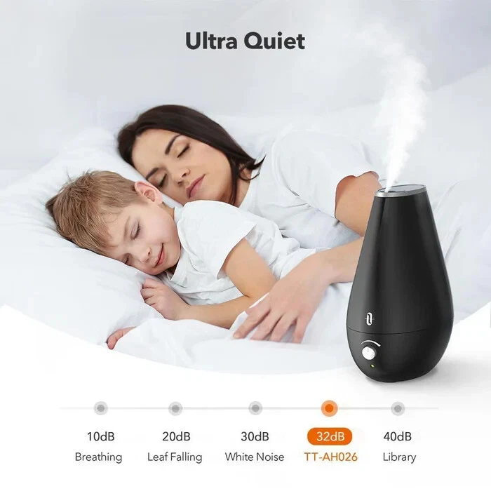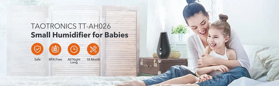 Improved Air Quality for an Improved Sleep TaoTronics humidifiers use a patented silent design to both reduce the sound of water dripping and add moisture to air at just 26dB; breathe easier with an undisturbed night's sleep. Featured Space-Saving Design Straightforward Controls Lightweight and Slim 60oz/1.8L Tank Quiet Operation Smart LED Indicator Ultra Quiet 26db Output Perfect for light sleepers, including babies, cool mist is provided throughout the night without excess noise Breathe Easy Reduce the chances of getting coughs and colds by increasing the moisture in your bedroom Perfect For The Office Healthier air creates a better working environment TaoTronics - Technology Enhances Life TaoTronics, a flagship brand under the Sunvalley group, is dedicated to providing superior-quality, reasonably priced electronic products that improve the lives of our customers. We strive to develop, innovate and focus on utilizing the latest technology with easy-to-use devices.