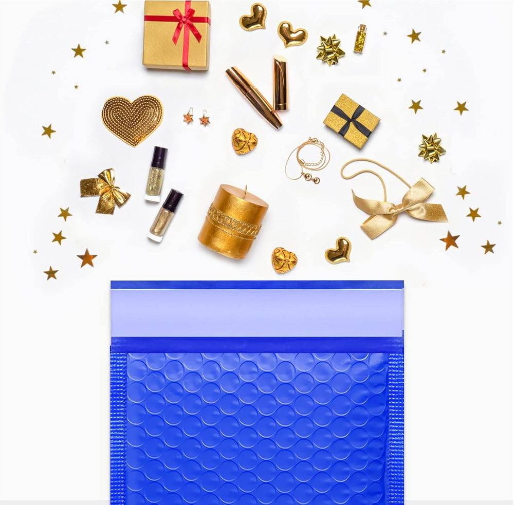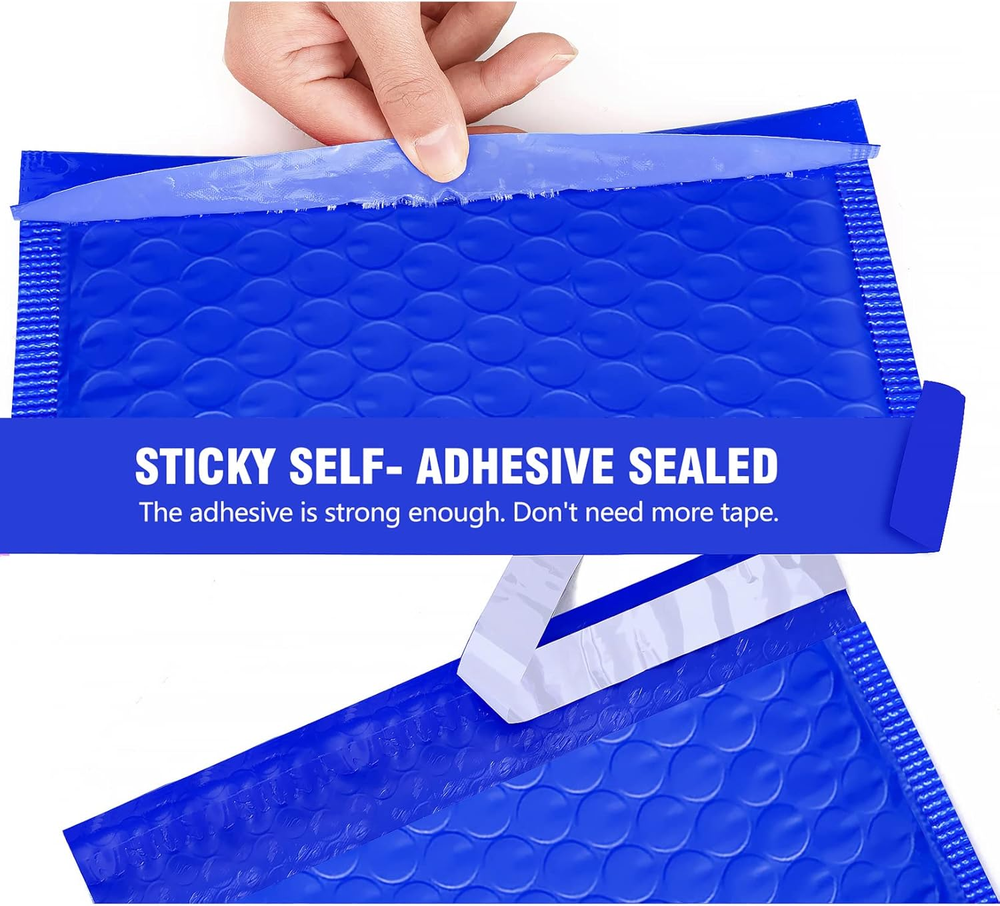 These bubble mailers are fantastic—lightweight yet super durable with thick bubble cushioning that keeps items safe during shipping. The self-sealing adhesive is strong and secure, so no extra tape is needed. The stylish blue design looks professional, and the size is perfect for small to medium packages. Great value for the price!