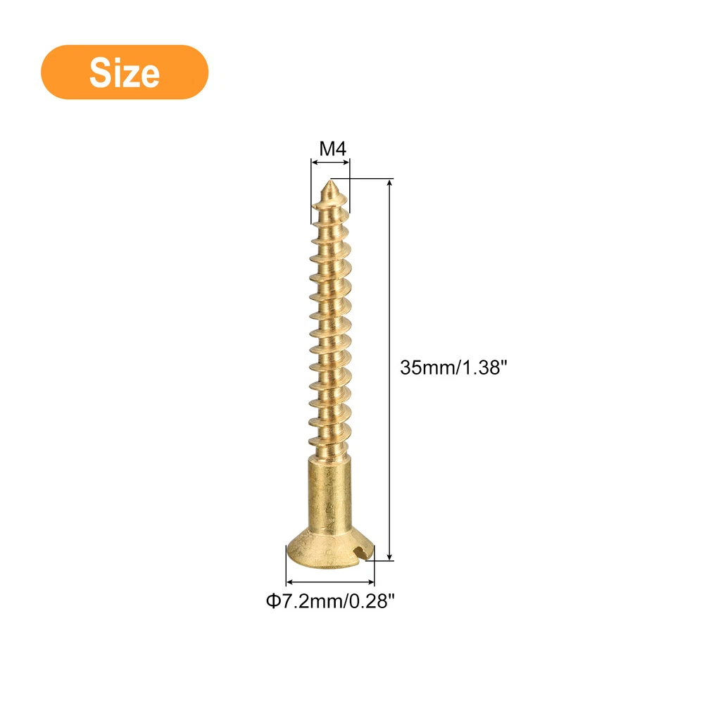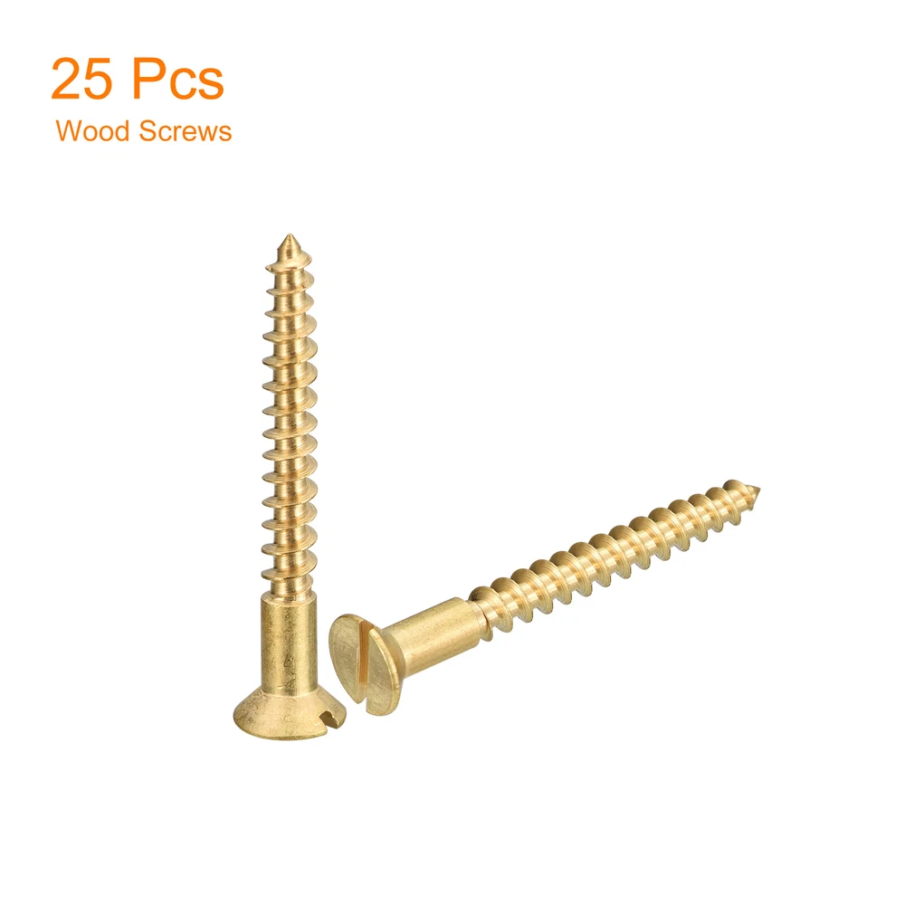 Document Description:Material - These wood screws are made of brass for high strength, wear resistance, corrosion resistance, long-lasting durability and dependability.Countersunk Head Design - Flat head screws can keep the surface flat after installation. Self-tapping screws can be installed without drilling, but pre-drilled holes can better maintain the integrity of the mounting surface.Features - Screws play a role in connecting two or more objects and are an essential necessity in daily life or industrial manufacturing. A flat-head screw is commonly used when the protrusion of the fastener above the mating surface is not acceptable. Clear thread, uniform tooth pitch, and good fastening effect.Wide Applications - Widely used in woodworking, furniture, home, industry, gardening, indoor decorations, or any other DIY crafts for installation, repair, and fixing. Such as thin metal parts, wood fences, cabinets, wardrobes, closets, boxes, wooden walls, and fixing hinges, latches, hasp, etc. into wooden surfaces. Especially suitable for indoor drying places.Notice - Please wear gloves to protect your hands when working and install the screws at a vertical angle of 90 degrees on the working surface to prevent tilt, which will affect the use effect.Specification:Material: BrassThread Dia: M4Total Length: 35mm/1.38-inchHead Dia: 7.2mm/0.28-inchHead Type: FlatScrew Drive Type: SlottedPackage Content:25 Pcs x Wood Screws 25Pcs M4 x 35mm Brass Slotted Drive Flat Head Wood Screws Self Tapping Screw Description: Material - These wood screws are made of brass for high strength, wear resistance, corrosion resistance, long-lasting durability and dependability. Countersunk Head Design - Flat head screws can keep the surface flat after installation. Self-tapping screws can be installed without drilling, but pre-drilled holes can better maintain the integrity of the mounting surface. Features - Screws play a role in connecting two or more objects and are an essential necessity in daily life or industrial manufacturing. A flat-head screw is commonly used when the protrusion of the fastener above the mating surface is not acceptable. Clear thread, uniform tooth pitch, and good fastening effect. Wide Applications - Widely used in woodworking, furniture, home, industry, gardening, indoor decorations, or any other DIY crafts for installation, repair, and fixing. Such as thin metal parts, wood fences, cabinets, wardrobes, closets, boxes, wooden walls, and fixing hinges, latches, hasp, etc. into wooden surfaces. Especially suitable for indoor drying places. Notice - Please wear gloves to protect your hands when working and install the screws at a vertical angle of 90 degrees on the working surface to prevent tilt, which will affect the use effect. Specification: Material: Brass Thread Dia: M4 Total Length: 35mm/1.38-inch Head Dia: 7.2mm/0.28-inch Head Type: Flat Screw Drive Type: Slotted Package Content: 25 Pcs x Wood Screws Hot Item Payment 1.We accept eBay payment . 2.Payment must be received within 7 business days of auction closing. Shipping 1.We ship to your eBay or Paypal address. Please make sure your eBay and Paypal address is correct before you pay. 2.Items will be shipped within 1-3 business day when we received payment. 3.Delivery time depends on destination and other factors. Description Policy 25Pcs M4 x 35mm Brass Slotted Drive Flat Head Wood Screws Self Tapping Screw Description: Material - These wood screws are made of brass for high strength, wear resistance, corrosion resistance, long-lasting durability and dependability. Countersunk Head Design - Flat head screws can keep the surface flat after installation. Self-tapping screws can be installed without drilling, but pre-drilled holes can better maintain the integrity of the mounting surface. Features - Screws play a role in connecting two or more objects and are an essential necessity in daily life or industrial manufacturing. A flat-head screw is commonly used when the protrusion of the fastener above the mating surface is not acceptable. Clear thread, uniform tooth pitch, and good fastening effect. Wide Applications - Widely used in woodworking, furniture, home, industry, gardening, indoor decorations, or any other DIY crafts for installation, repair, and fixing. Such as thin metal parts, wood fences, cabinets, wardrobes, closets, boxes, wooden walls, and fixing hinges, latches, hasp, etc. into wooden surfaces. Especially suitable for indoor drying places. Notice - Please wear gloves to protect your hands when working and install the screws at a vertical angle of 90 degrees on the working surface to prevent tilt, which will affect the use effect. Specification: Material: Brass Thread Dia: M4 Total Length: 35mm/1.38-inch Head Dia: 7.2mm/0.28-inch Head Type: Flat Screw Drive Type: Slotted Package Content: 25 Pcs x Wood Screws Hot Item Payment 1.We accept eBay payment . 2.Payment must be received within 7 business days of auction closing. Shipping 1.We ship to your eBay or Paypal address. Please make sure your eBay and Paypal address is correct before you pay. 2.Items will be shipped within 1-3 business day when we received payment. 3.Delivery time depends on destination and other factors.