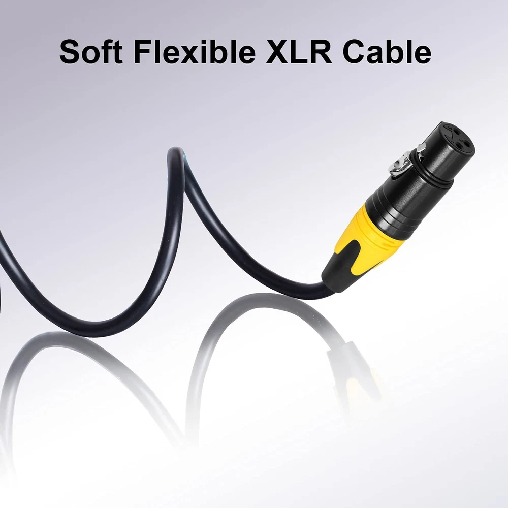 --- 22 AWG; Low capacitance balanced XLR cables with thicker conductive PE shield for strong insulation, designed specifically as xlr mic cords <4 Color Coded> --- These microphone cables with male and female connectors of 4 different color boots, easy for your team to distinguish and trace --- Lo-Z balanced XLR cable with dual shielded Hi-Fi transmission; No delay; Noiseless and lossless performance --- Soft flexible cable in black ideal microphone cables or XLR audio cables on stage --- Premium 3-pin silver plated XLR connectors of screw type for you easily unscrew to view solder points if needed, static free; Smooth plug in/out, solid lock
