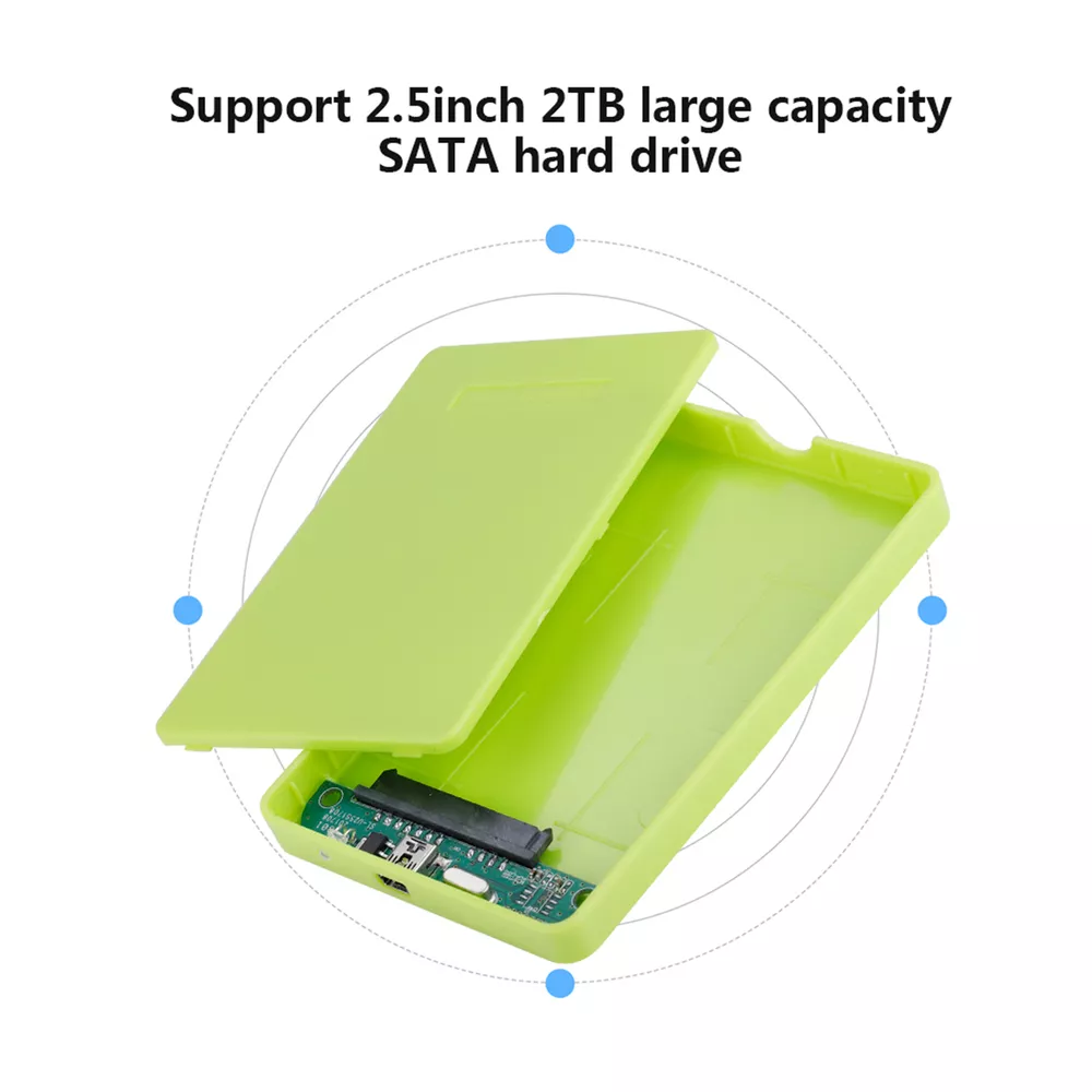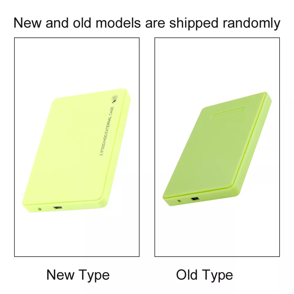 Feature: 1. High speed transmission: Standard USB 2.0 port creates a high speed data transmission up to 480Mbps. Also downwards compatible with usb1.1 2. Plug and play: Support hot swap, no need for driver or software. Very convenient and reliable 3. Support 2.5inch 7-9.5mm 2TB large capacity hard drive (Not included) 4. Compatible with multiple operating systems: for 98/SE/ME/2000/XP/Vista/7/8/10/, for Linux, for Mac OS 8.6 or higher 5. Screw-free design, easy to assemble and disassemble Specification: This external SSD enclosure can bear 2.5inch SSD without conflict to achieve super high data transmission speed up to 480Mbps. Hot plug function makes it support plug and play, which is very practical. Screw-free design, easy to assemble and disassemble. Features: 1. High speed transmission: Standard USB 2.0 port creates a high speed data transmission up to 480Mbps. Also downwards compatible with usb1.1. 3. Support 2.5inch 7-9.5mm 2TB large capacity hard drive (Not included). 4. Compatible with multiple operating systems: for 98/SE/ME/2000/XP/Vista/7/8/10/, for Linux, for Mac OS 8.6 or higher. 5. Screw-free design, easy to assemble and disassemble. 6. Simple and practical, matte effect, anti-fingerprint and anti-scratch. Specification: Product Name: 2.5" tool-free mobile hard disk box (without hard disk) Main material: ABS Applicable hard disk: 2.5" 7-9.5mm HDD/SSD Product interface: USB2.0 TO Transmission speed: 480Mbps Size: Approx. 12 * 7.5 * 1.2 cm / 4.7 * 3.0 * 0.4in Weight: Approx. 58g Package List: 1 * External SSD Enclosure 1 * USB Cable Note: Please note that the new type and old type of this product will be sent randomly, and make sure you will not mind before ordering.