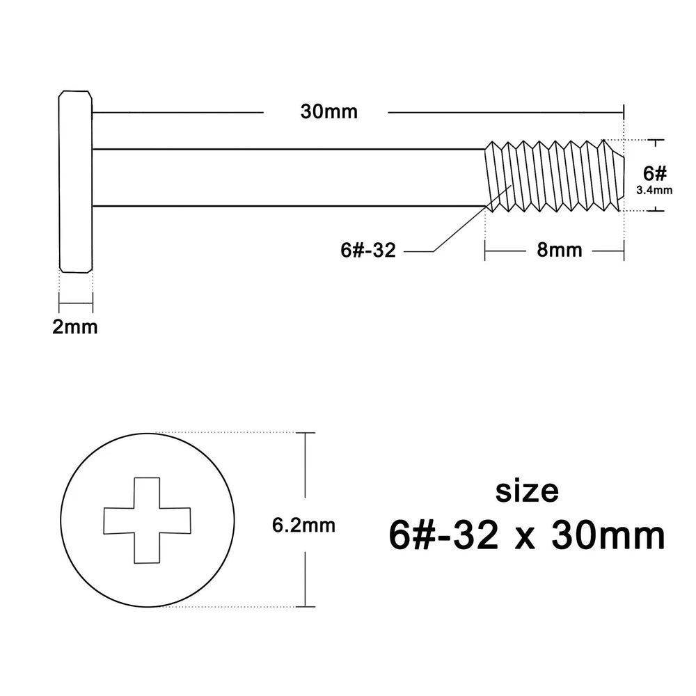 Material Carbon steel Size 6#-32*30mm thread diameter: 6#-32 (3.4mm) length(except head): 30mm thread length: 8mm On Dec 14, 2024 at 19:11:24 PST, seller added the following information: